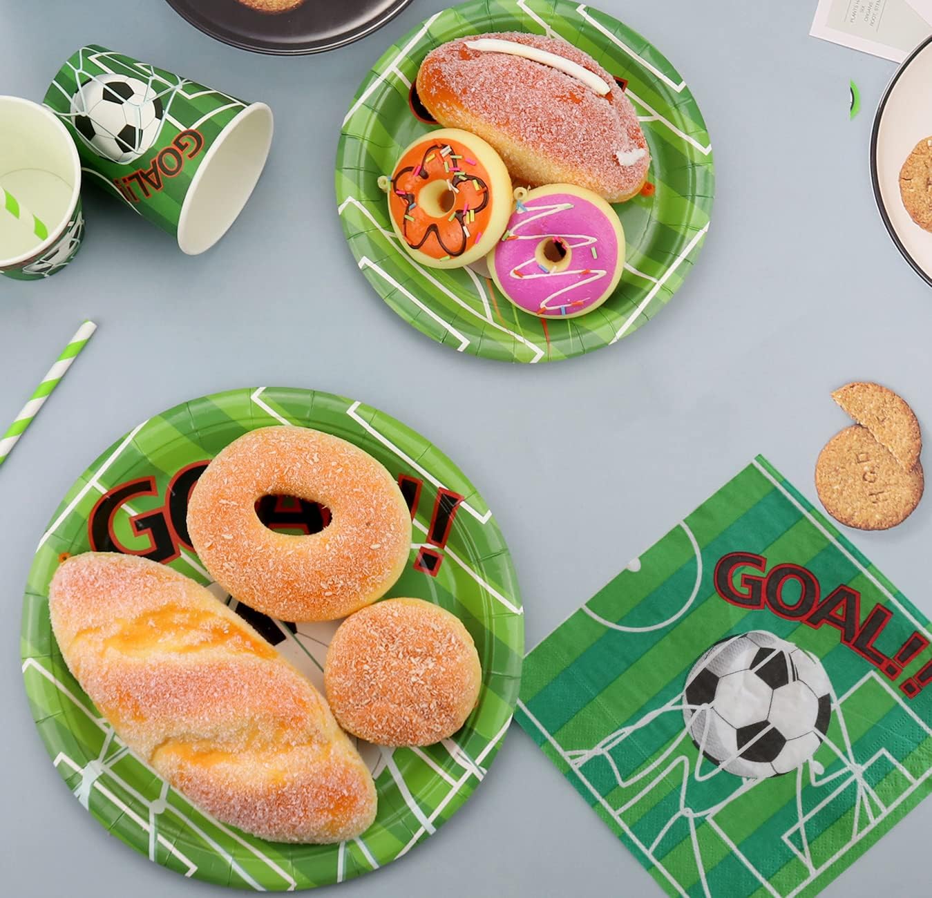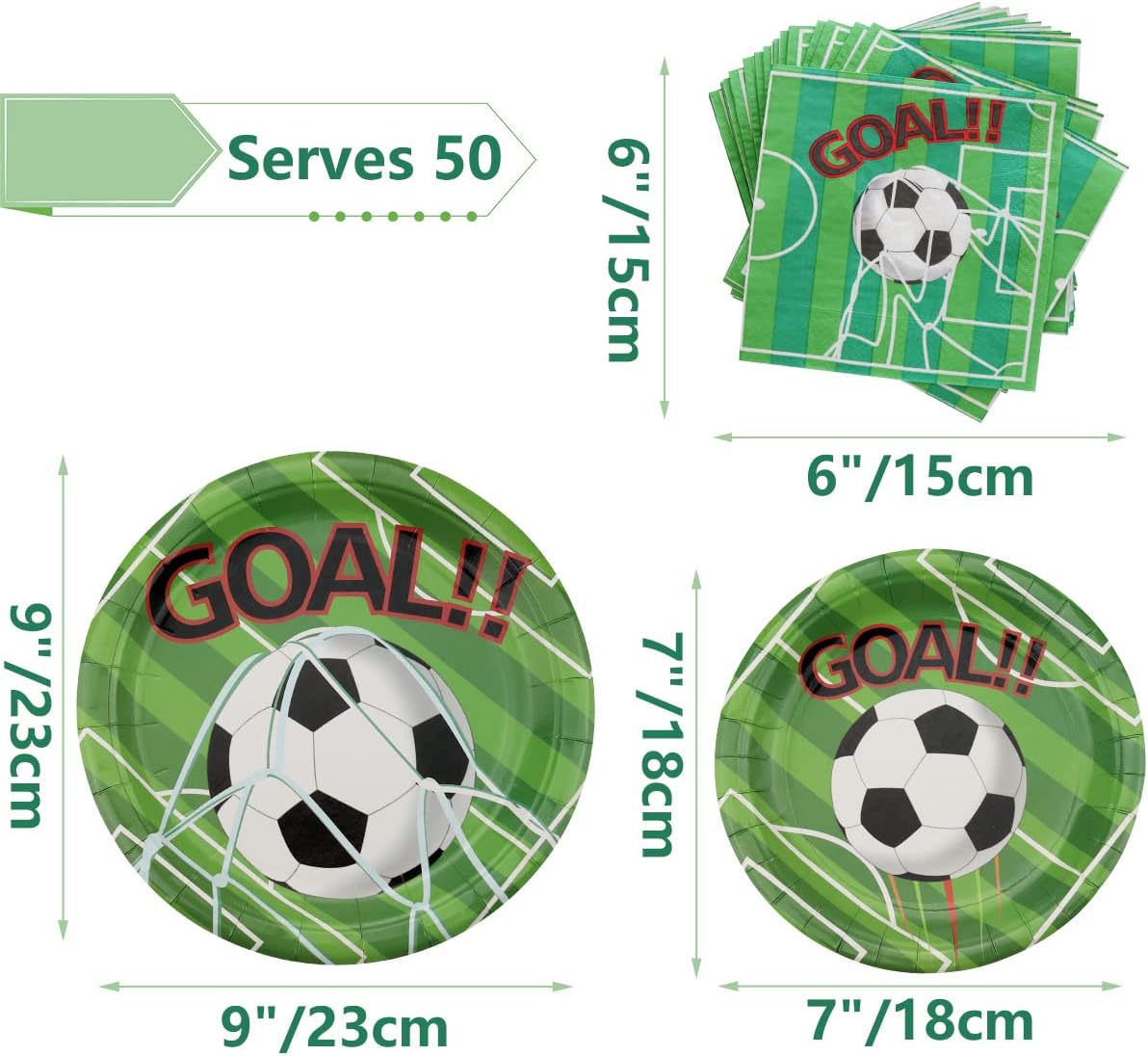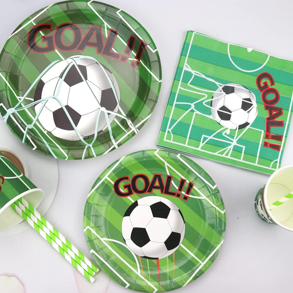 Set di stoviglie per feste calcio: riceverete 50 piatti da 9 pollici + 50 piatti da dessert da 7 pollici + 50 tovaglioli. Lavorazione di alta qualità: il set di stoviglie Bee Party è realizzato in cartone spesso ed è resistente a pieghe, strappi e rotture. (Nota: si prega di non mettere i piatti e le tazze nel forno a microonde.) Design unico: il design unico del calcio con motivi chiari e colori vivaci renderà la tua festa qualcosa di speciale e crea una grande atmosfera da festa. Facile da pulire, risparmio di tempo: con questo kit puoi facilmente organizzare un'impressionante festa di compleanno di calcio. Dopo l'evento, puoi gettare tutti gli oggetti direttamente nella spazzatura e avere più tempo per goderti la festa e prenderti cura della tua famiglia, degli amici e degli ospiti. Adatto per: le decorazioni a tema calcio sono adatte per feste di compleanno per bambini, feste di calcio, primi compleanni, feste in parco, cene aziendali, picnic e altre occasioni.