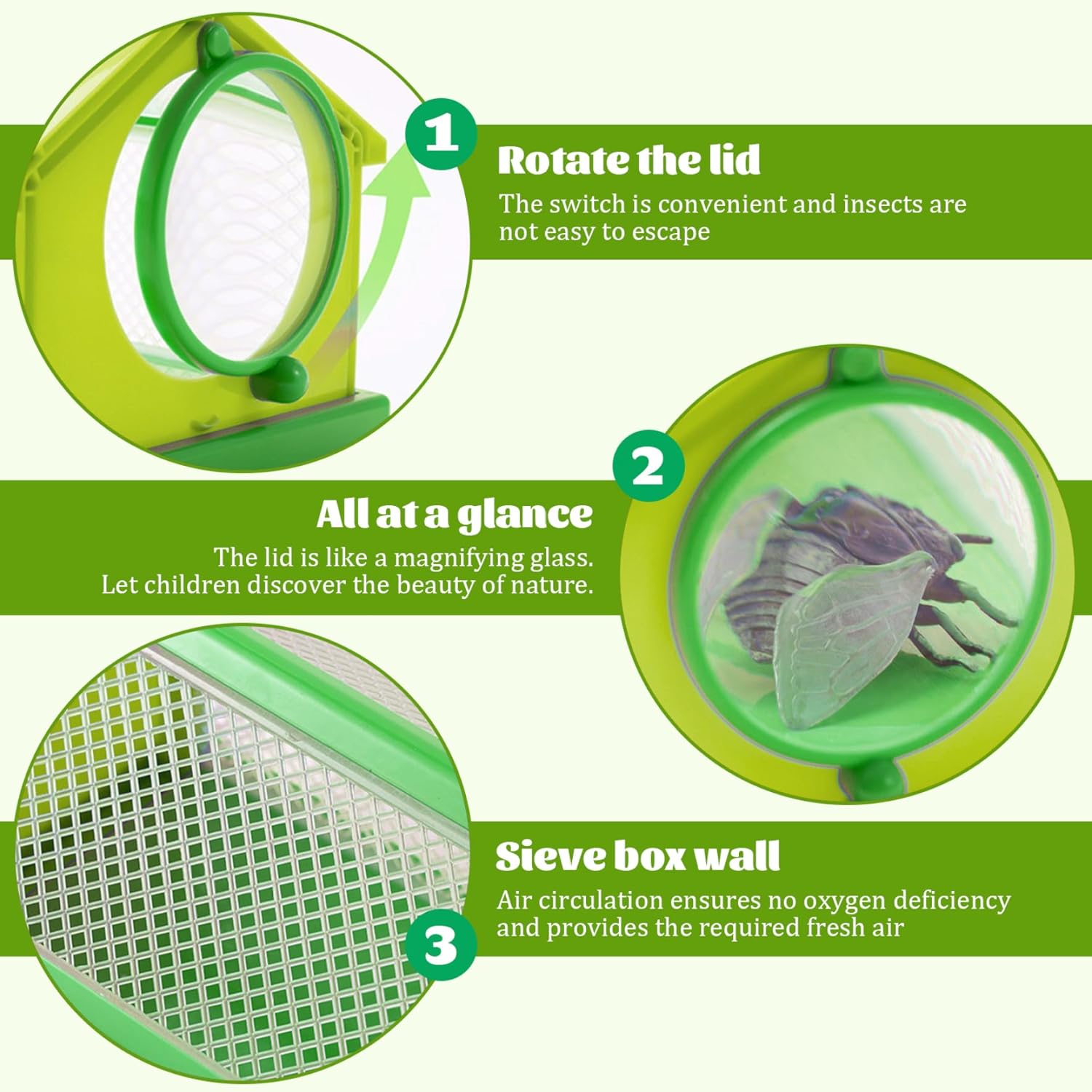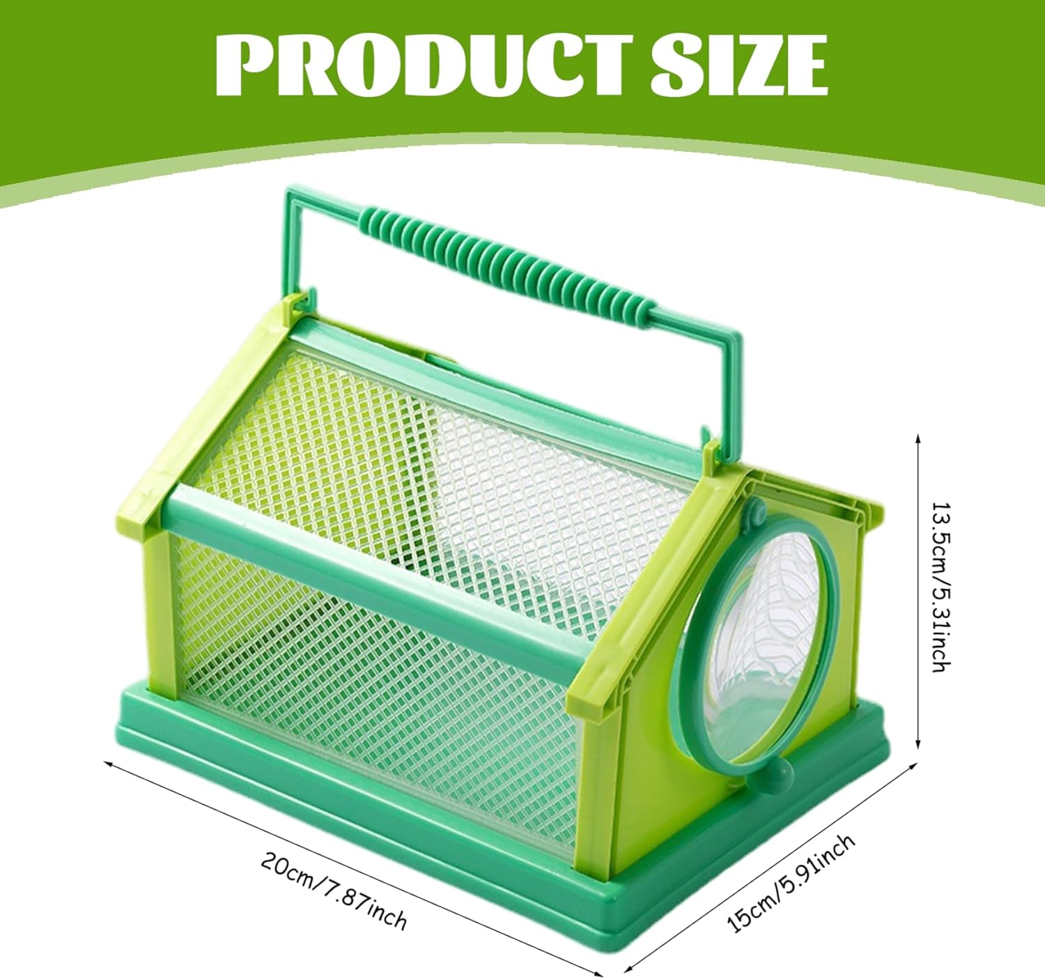 Design a rete traspirante: realizzata con rete traspirante di alta qualità, la gabbia garantisce un flusso d'aria adeguato, mantenendo gli insetti sani e sicuri durante l'osservazione, rendendola ideale per un uso esterno prolungato Materiali affidabili e sicuri: realizzata con materiali robusti e non tossici, questa scatola per insetti resiste ad energiche attività all'aperto e fornisce un ambiente sicuro per bambini e insetti, garantendo un uso a lungo termine e tranquillità Educativo e divertente: perfettamente progettato come strumento di apprendimento interattivo, questa gabbia per insetti incoraggia i bambini e i ragazzi a interagire con la, favorendo la curiosità e la consapevolezza sugli insetti e sui loro habitat Comodità del coperchio rotante: il coperchio rotante integrato consente un accesso rapido e sicuro per catturare o rilasciare insetti senza disturbarli, favorendo una manipolazione sicura e riducendo il rischio di fughe Portatile e leggero: misura 8x6x5 pollici, questo cattura insetti è facile da portare con sé per le avventure all'aria aperta dei bambini, consentendo ai giovani esploratori di raccogliere e osservare gli insetti comodamente ovunque vadano