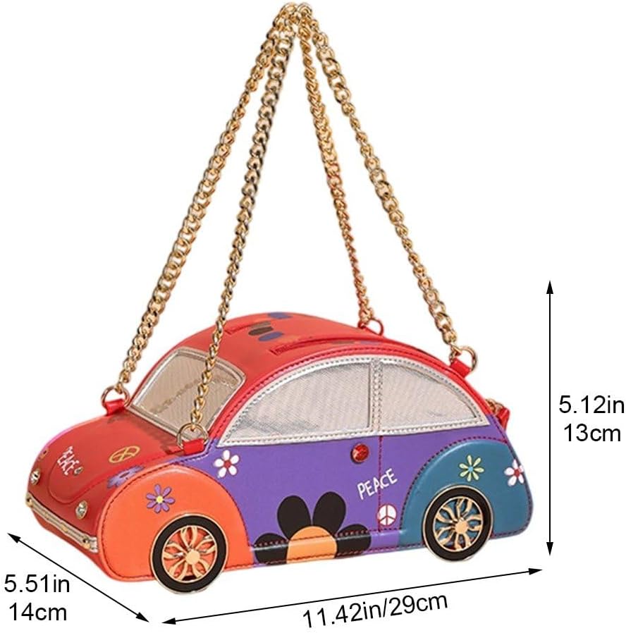 L'attenzione ai dettagli realizzata in pelle PU presenta una catena per una maggiore comodità. Perfetto per varie occasioni informali come shopping, appuntamenti, riunioni o anche viaggi e vacanze, aggiungendo un tocco di eleganza a qualsiasi outfit. Borsa a forma di auto in pelle PU, un tocco creativo sulle borse tradizionali. Come borsa chic, la borsa offre una certa versatilità durante il trasporto. Una borsa creativa perfetta per trasportare le necessità quotidiane come chiavi, carte, rossetto, trucco, cellulare, ecc.