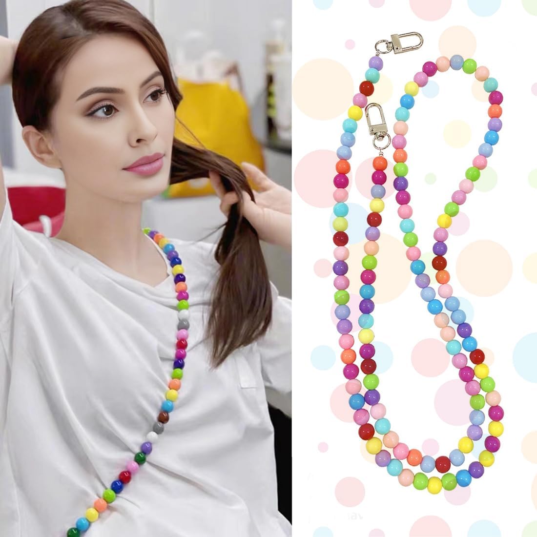 DESIGN UNICO: La catena per cellulare non è solo la scelta migliore, ma anche un regalo ideale per i vostri amici e familiari - sia per un compleanno, Natale o come un piccolo regalo. ALTA SICUREZZA: la catenina per cellulare è dotata di 2 ganci, che possono essere attaccati a una custodia per cellulare con fori o a un cellulare con supporto in plastica. FACILE DA USARE: il ciondolo per cellulare con perline può essere attaccato allo smartphone in pochi secondi. Perfetto per l'uso quotidiano, i festival, i viaggi o le feste. COMODO DA INDOSSARE: la catena per cellulare è leggera e facile da indossare. Le perline colorate sono bellissime e proteggono bene il vostro smartphone! MATERIALE DI ALTA QUALITÀ: Il materiale è di alta qualità, le perline colorate sono realizzate in acrilico, resistente alla pioggia e impermeabile, non c'è bisogno di preoccuparsi del deterioramento oh.