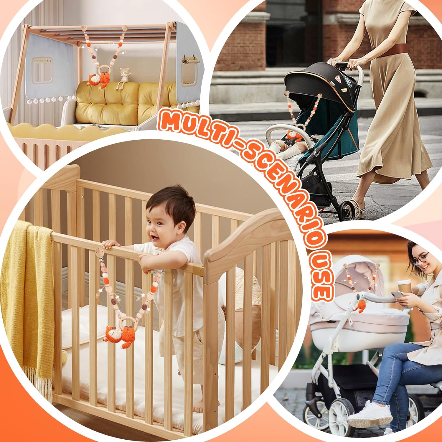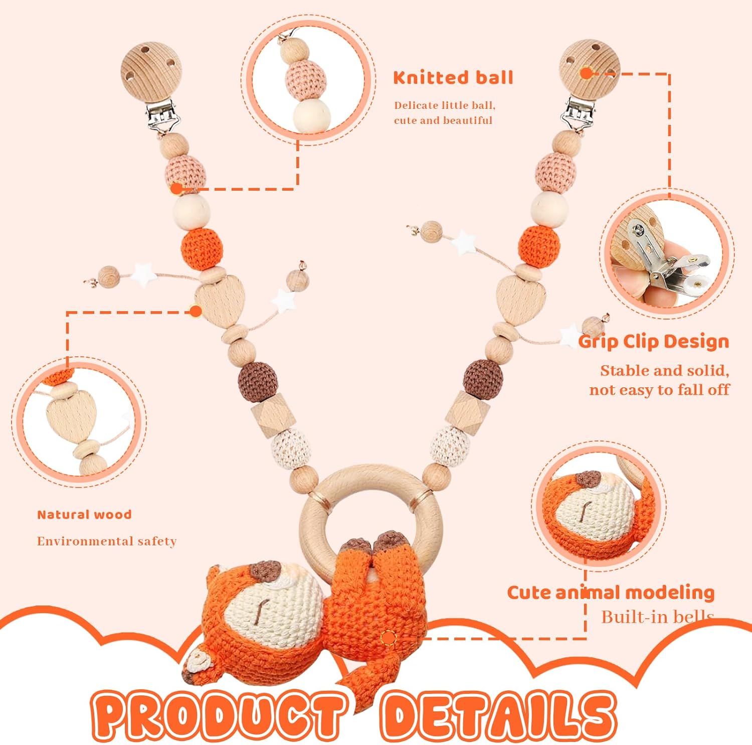Materiali di alta qualità: catena per passeggino per bambini realizzata in legno di qualità selezionato, sicuro, sano, atossico, ecologico, senza BPA, realizzato a mano, robusto, design con angoli arrotondati, senza parti taglienti, durevole e di alta qualità. Materiale di alta qualità e tutti gli accessori sicuri e amichevoli per la pelle o la salute del bambino. Giocattolo educativo: il giocattolo dell'ovetto può sviluppare le capacità motorie del bambino e promuovere lo sviluppo del cervello. I colori seducenti per bambini possono sviluppare le capacità visive del bambino, stimolare il suo sviluppo visivo e promuovere la percezione del colore del bambino. Il ciondolo per ovetto può essere lavato con sapone per tenere il bambino lontano dai batteri. Regalo perfetto: passeggino giocattolo per bambini, ideale come regalo per amici, familiari, colleghi, ecc., che si aspettano un nuovo bambino, perfetto per ogni cameretta dei bambini, regali per neonati o regali unici fatti a mano per ogni altra occasione. I giocattoli per passeggino sono certificati secondo la norma EU EN71 e CE, in modo da poterli acquistare con fiducia. Design unico: catena per passeggino in legno leggera e facile da posizionare in diversi luoghi. La catena da gioco per passeggino è liscia e lucidata senza sbavature, per proteggere la pelle sensibile del bambino, puoi essere certo che il tuo bambino sia sicuro. Giocattolo in legno per bambini può essere utilizzato anche come compagno quotidiano per i giochi per bambini per calmare le emozioni del vostro bambino e può essere adattato al mercato Most modelli di passeggini. Ampia applicazione: il giocattolo per seggiolino auto per bambini supporta diversi scenari di utilizzo, come auto, passeggini, culle o culle, seggiolini per bambini, ecc. È un pezzo unico e un grande colpo d'occhio su ogni passeggino e decorazione della stanza. Giocattolo per passeggino Appeso al telaio della palestra del bambino, non solo giocattoli per il fitness, ma anche una bella decorazione per la cameretta dei bambini.