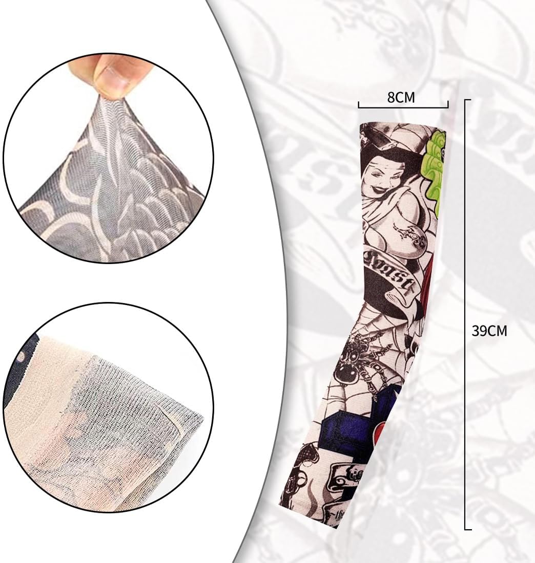 CATOR 10 Pezzi Maniche Tatuaggio, Manica a Tatuaggio, Nylon Elastiche Realistico Tatuaggio Temporaneo Finti Tattoo Sleeve, Manicotti da braccio per Uomo Donna, Sportiva Protezione, Ventilazione