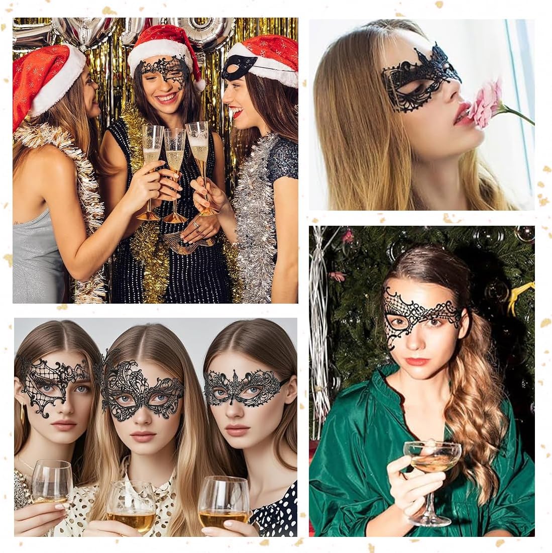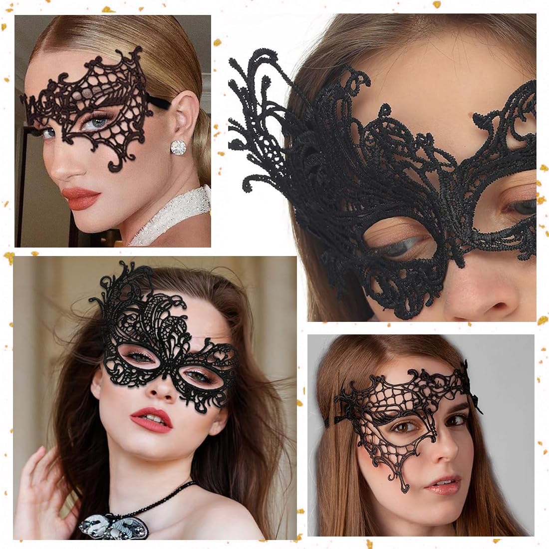 Vari stili: 8 forme uniche come corona, volpe, occhio solo, ecc., per soddisfare le esigenze di diverse feste a tema e giochi di ruolo, che si tratti di un ballo misterioso o di una festa a tema fantasy, puoi trovare uno stile adatto. Artigianato squisito: adozione di una raffinata lavorazione del pizzo, motivi delicati e complessi, trattamento delicato dei bordi, che mostra una consistenza elegante e nobile, dimostrando un gusto unico. Comodo da indossare: con fascia morbida e moderatamente elastica, elasticità regolabile, può essere indossato saldamente sulla testa, l'uso prolungato non causerà troppa pressione sulla testa. Materiali di alta qualità: pizzo e materiali ausiliari sicuri e durevoli, non facili da deformare, danneggiare, delicati sulla pelle e non irritanti per proteggere l'esperienza d'uso. Crea atmosfera: come accessorio luminoso per feste e festival, può migliorare immediatamente il senso dell'atmosfera, aiutare chi lo indossa a integrarsi facilmente nella situazione e aggiungere un'atmosfera misteriosa e romantica.