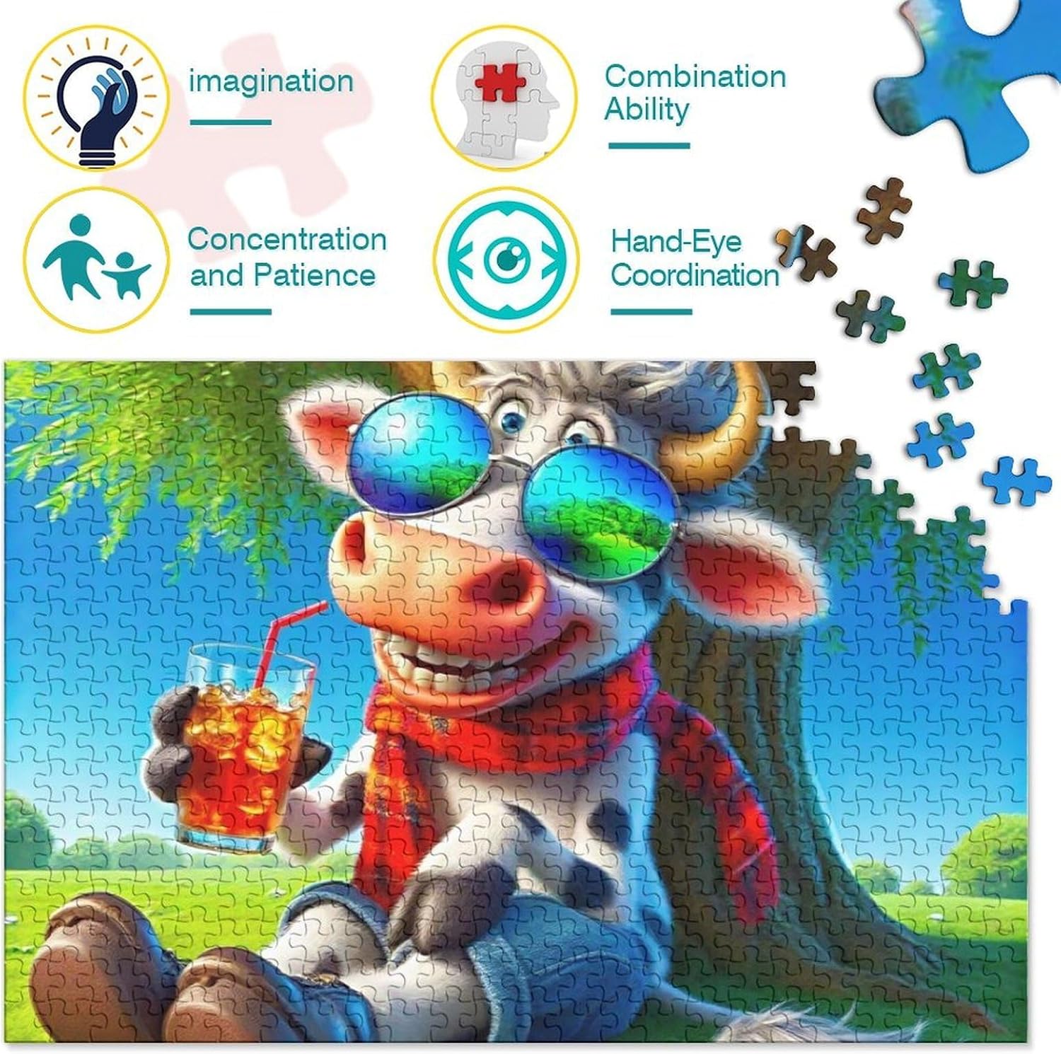 🌸GIOCHI PER ADULTI: una sfida emozionante da regalare a tutti li appassionati di puzzle e amanti dell'arte, ideale per uomo, donna o ragazzi; i puzzle aiutano a esercitare la memoria, migliorano la concentrazione e stimolano l'intuizione 🌸QUALITÀ PREMIUM: il massimo del divertimento con prodotti di altissima qualità in termini di materiali, motivi e design; realizzati in legno tagliati con fustelle fatte a mano, per un risultato impeccabile 🌸Buon regalo: il animal puzzle finito misura 70x50cm/1000pcs una volta completato. I migliori regali per ragazzi e ragazze dai 14 anni in su per compleanni o festività (Natale, Halloween, Ringraziamento, ecc.) 🌸Concediti una piacevole pausa relax! La nostra linea di puzzle da Cattle 1000 pezzi è il regalo perfetto per chi ama ritagliarsi un momento di svago e di relax mettendo alla prova le proprie abilità logiche e di concentrazione 🌸I nostri Puzzle ti offrono un'ampia scelta d'immagini capace di soddisfare i gusti di tutti: grazie alla qualità dei materiali riciclati, la robustezza e resistenza dei singoli pezzi insieme alla brillantezza dei colori, ti garantiamo un risultato impeccabile e privo di riflessi