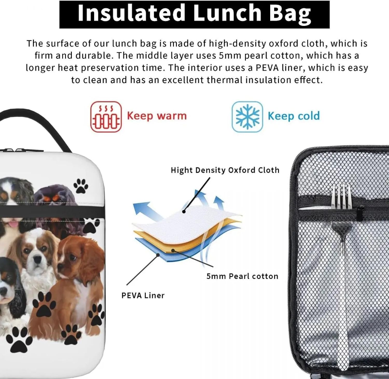 Cavalier King Charles Spaniel Portapranzo Portatile A Tenuta Stagna Gruppo Famiglia Amante dei Cani Dispositivo di Raffreddamento Termico Cibo Isolato Pranzo Sacchetto per Bambini