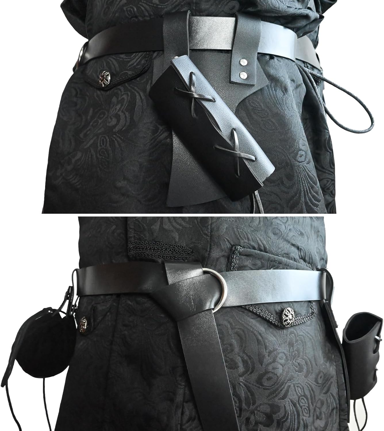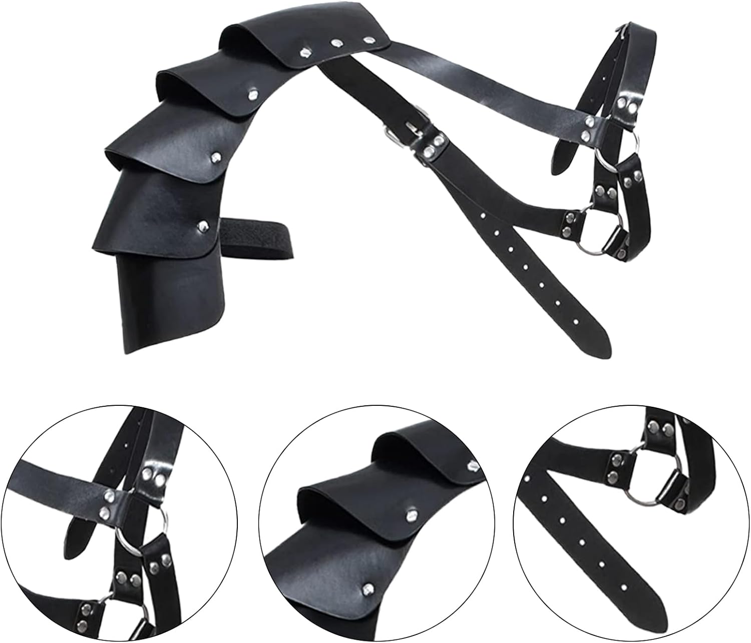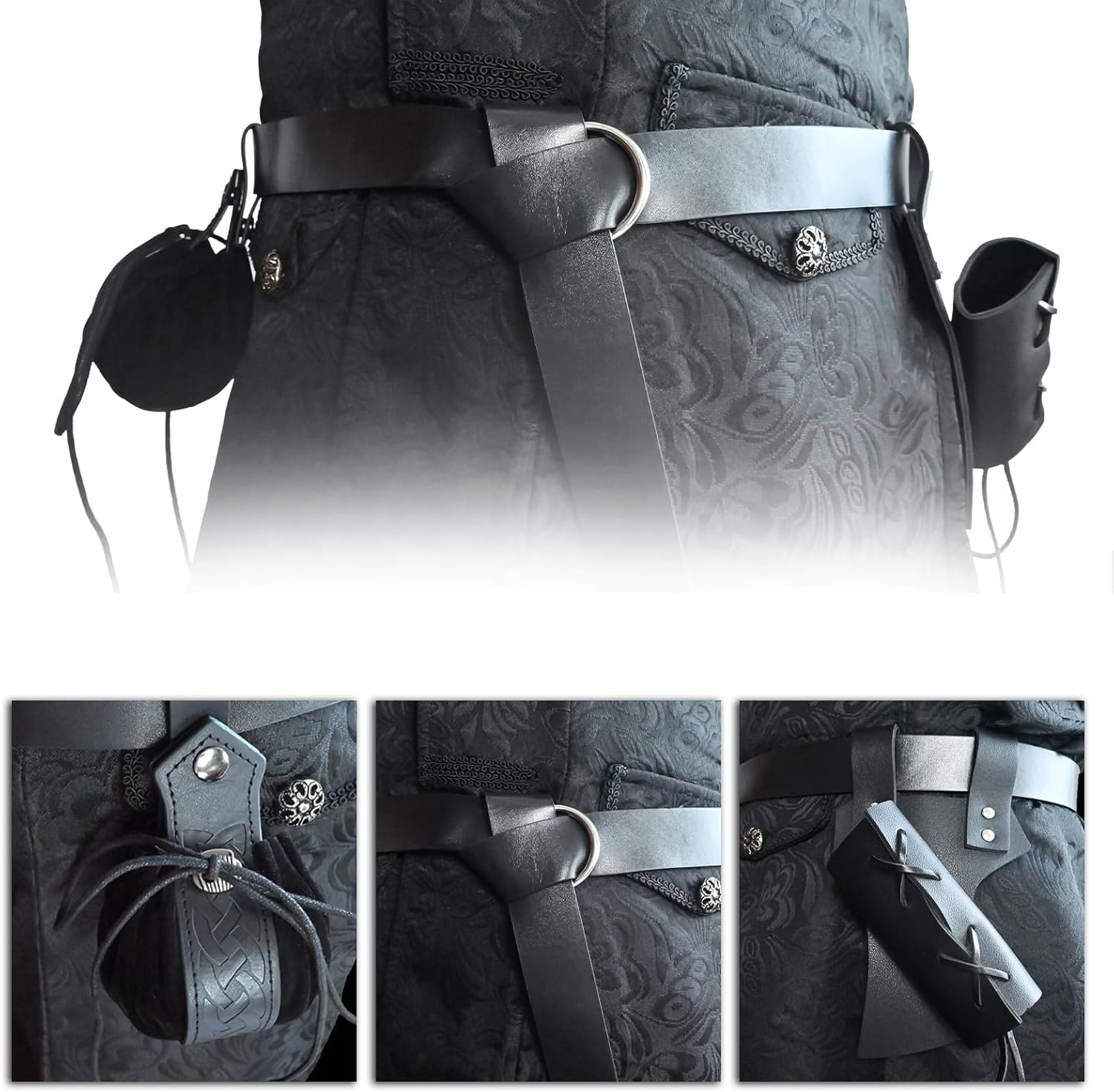 Specifiche tecniche: Colore: nero. Materiale: pelle PU Dimensioni del prodotto: come da immagine. Contenuto della confezione: 1 × scialle retrò. 1 × cintura in pelle, 2 × fibbia bracer, 1 × armatura spalla, 1 marsupio vintage. 1 × pelle spada rana, 3 perni curvi. Nota: A causa della misurazione manuale, le dimensioni e il peso possono avere un certo errore. A causa della differenza tra i diversi monitor, potrebbe esserci una leggera differenza di colore.