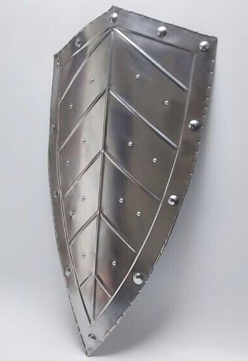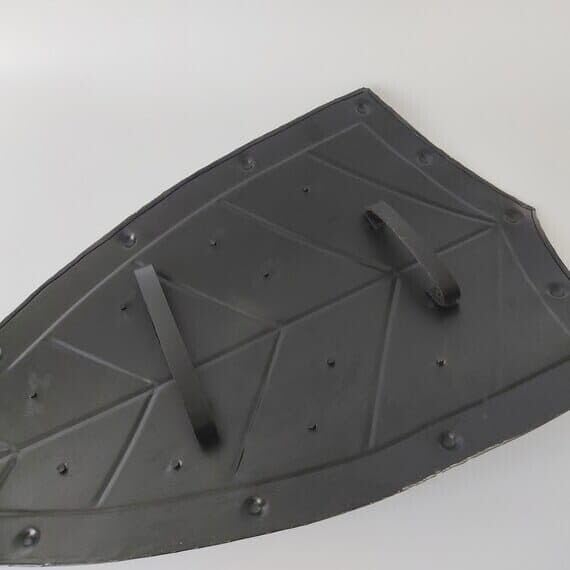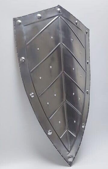 Lo scudo è realizzato in acciaio calibro 18 di alta qualità Altezza: 71 cm Larghezza: 40,6 cm Impugnatura liscia dal retro Design come mostrato Lo scudo è utile per la rievocazione Larp Fighting Costume Lo scudo è splendidamente progettato e ha un bell'aspetto