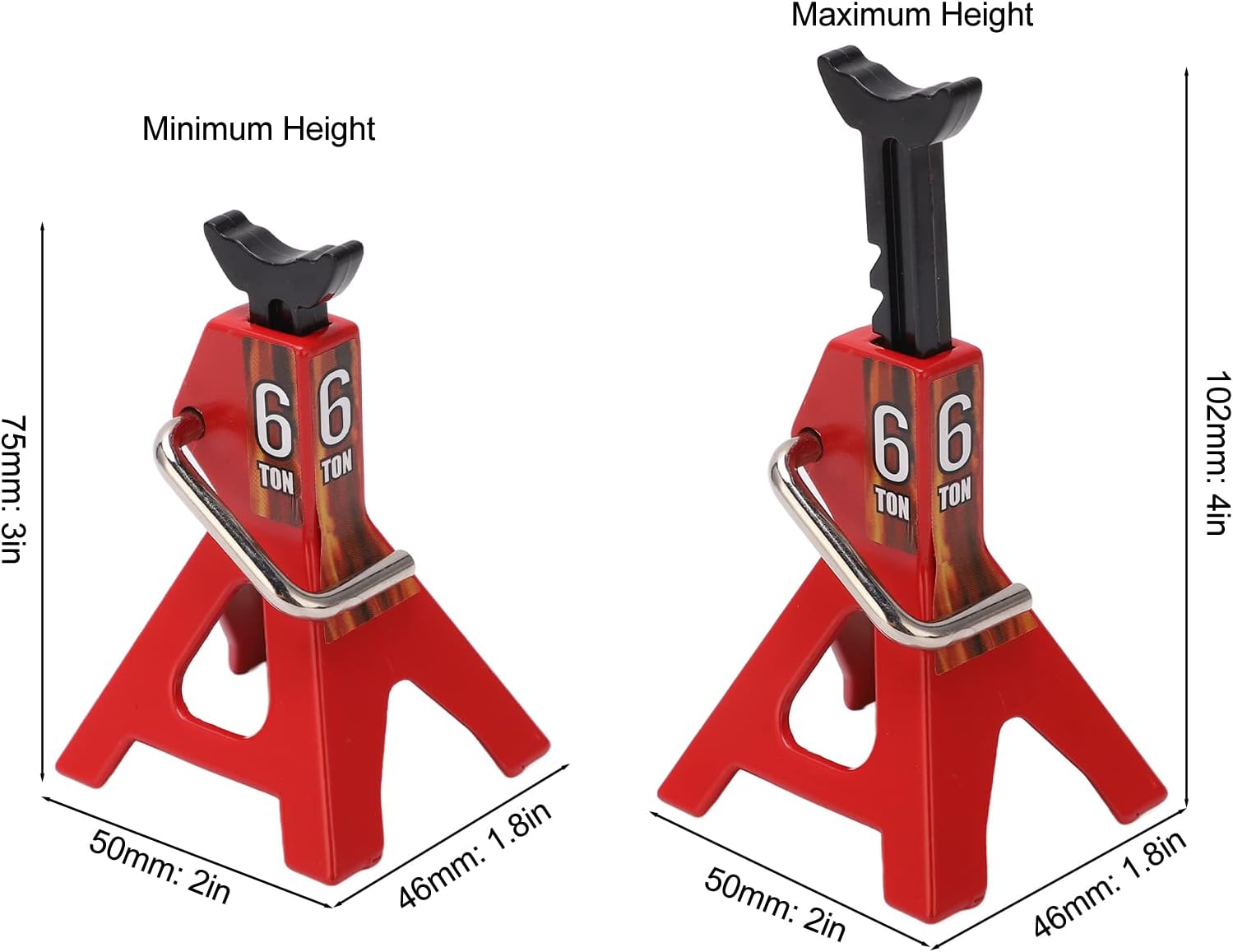 Materiale metallico: questo supporto per cric per auto RC è realizzato in materiale di acciaio di alta qualità, solido ed ecologico. Compatto e leggero, facile da trasportare e da utilizzare. Piccolo e leggero: supporto per cric per auto Mini RC, dimensioni ridotte, leggero, facile da trasportare e utilizzare. Utilizzato per simulare la decorazione della scena. Altezza regolabile: l'altezza del supporto del martinetto è regolabile e l'altezza del martinetto di sollevamento RC è regolabile da 75 mm a 102 mm, rendendolo un accessorio pratico. Squisito e realistico: mini jack di simulazione di squisita fattura, prestazioni stabili, adatto alla maggior parte dei modelli di auto RC, che è un bell'accessorio per il tuo modello di auto RC. Compatibile universale: questo è un accessorio decorativo per jack stand, design universale, adatto per SCX10 D90 1/10 e altre auto RC. Questo jack stand RC 1/10 è un giocattolo di simulazione, solo per la simulazione di macchinine, non può essere utilizzato per riparare veicoli reali, si prega di confermare le proprie esigenze di acquisto prima dell'acquisto.