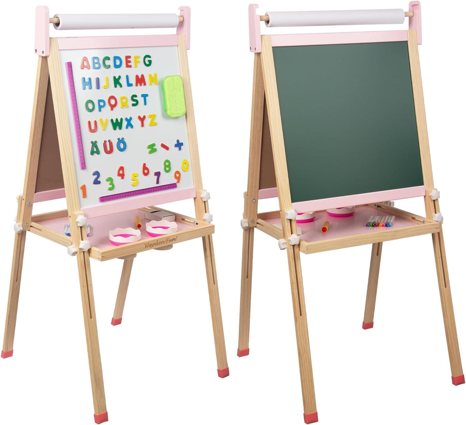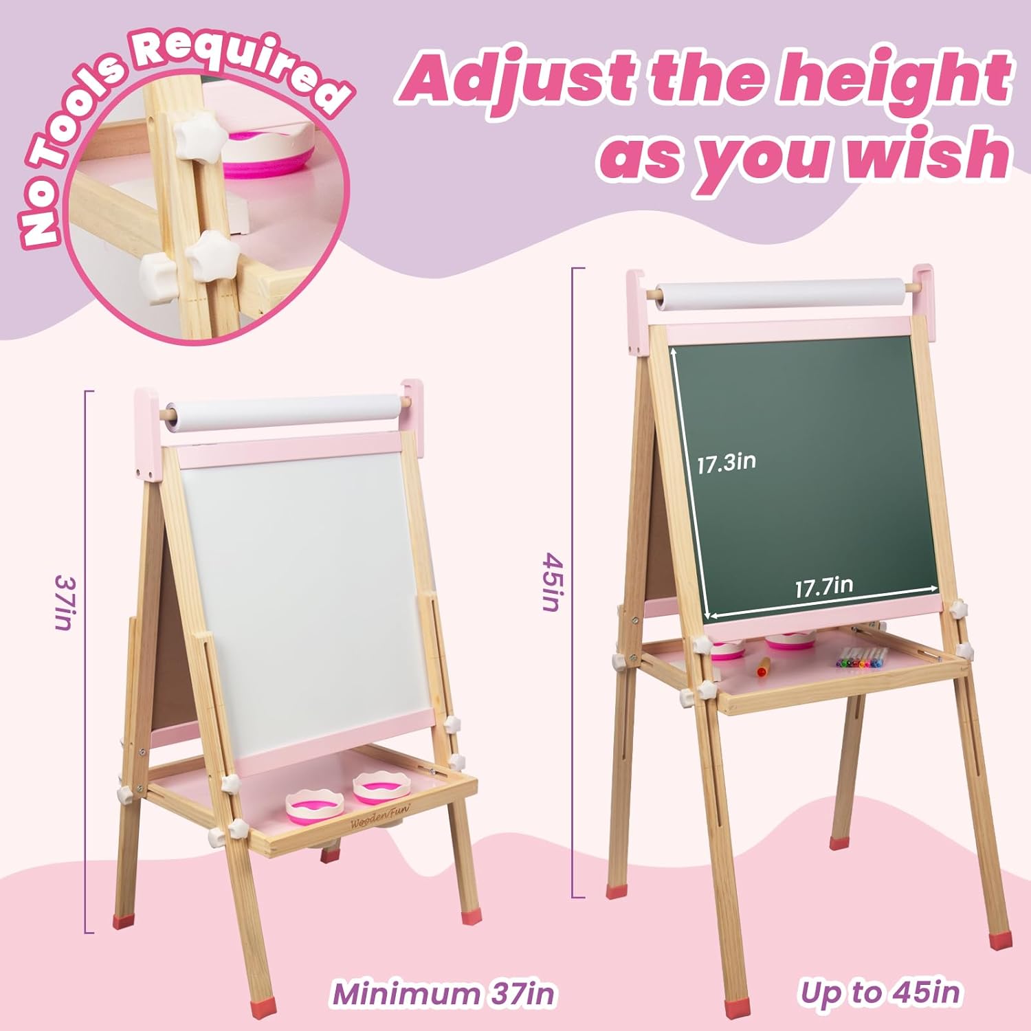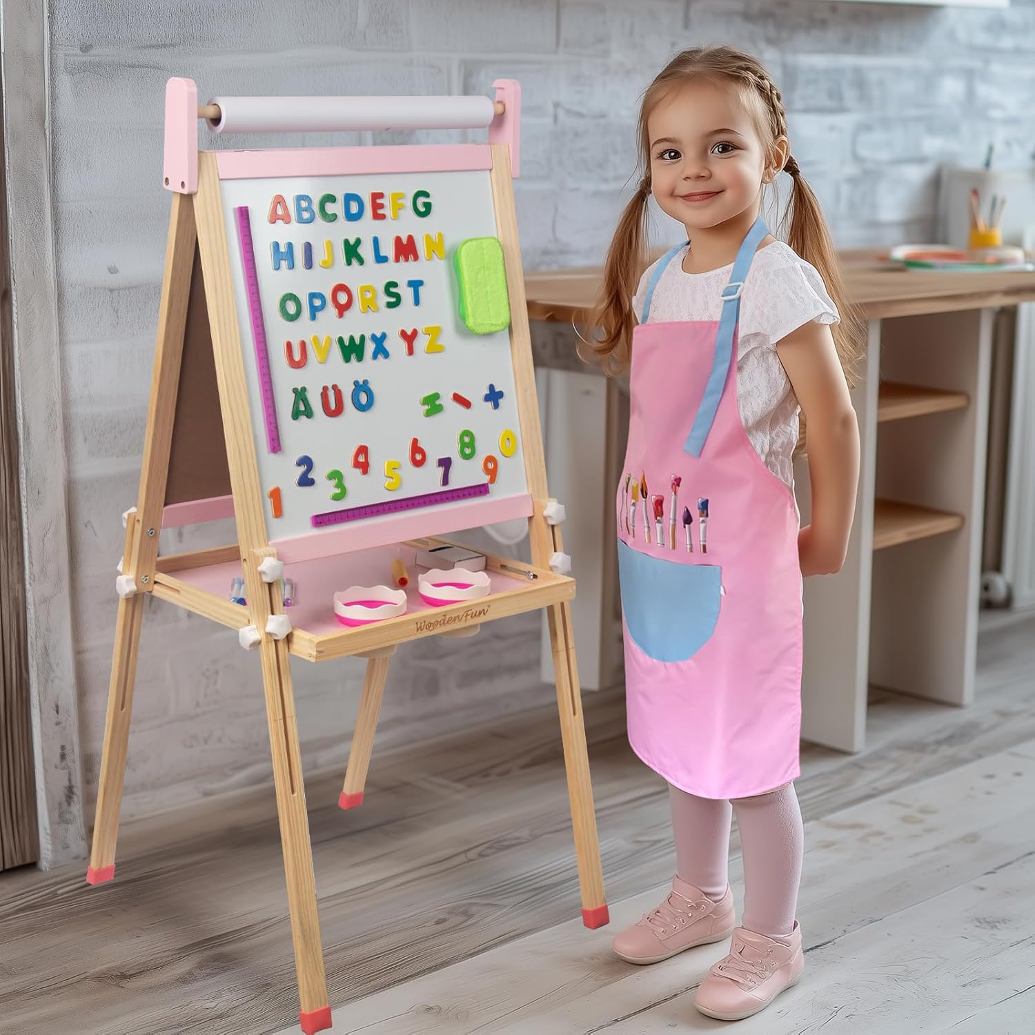 Art Drawing Board: un centro creativo multifunzionale appositamente progettato per i bambini dai 3 ai 12 anni, con una lavagna magnetica su un lato e una lavagna magnetica sull'altro, perfetto per disegnare, fare schizzi e divertimento senza fine. Dimensioni: l'altezza di questa selezione per bambini può essere regolata con un'altezza massima di 114,5 cm e un'altezza minima di 93 cm. Questa spina artificiale accompagnerà la crescita dei nostri bambini e sarà adatta a bambini di età diverse. Ricchi accessori artistici: il nostro cavalletto per bambini viene fornito con un lussuoso set da 10 pezzi, tra cui gomma 1, 2 bottiglie d'acqua, una scatola di gesso senza polvere a 6 colori, una scatola di penne stilografiche a 8 colori, carta rotolo da 10 metri, lettere colorate e numeri magnetici, 2 righelli e un grembiule. Sicuro e stabile: il tavolo da disegno realizzato con materiali resistenti, adatti ai bambini per garantire sicurezza durante il gioco. I bordi sono lisci e la base è stabile, in modo che il bambino possa sviluppare la creatività mentre si sente a proprio agio. Miglior regalo: questo è un regalo ideale per i bambini. Compleanno, Natale, Halloween, Ringraziamento e l'inizio della stagione scolastica. Soddisfa le esigenze dei bambini per dipingere e imparare.