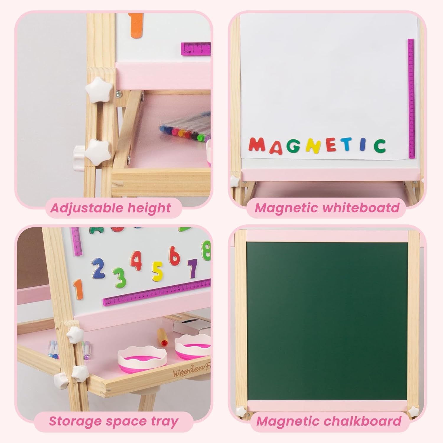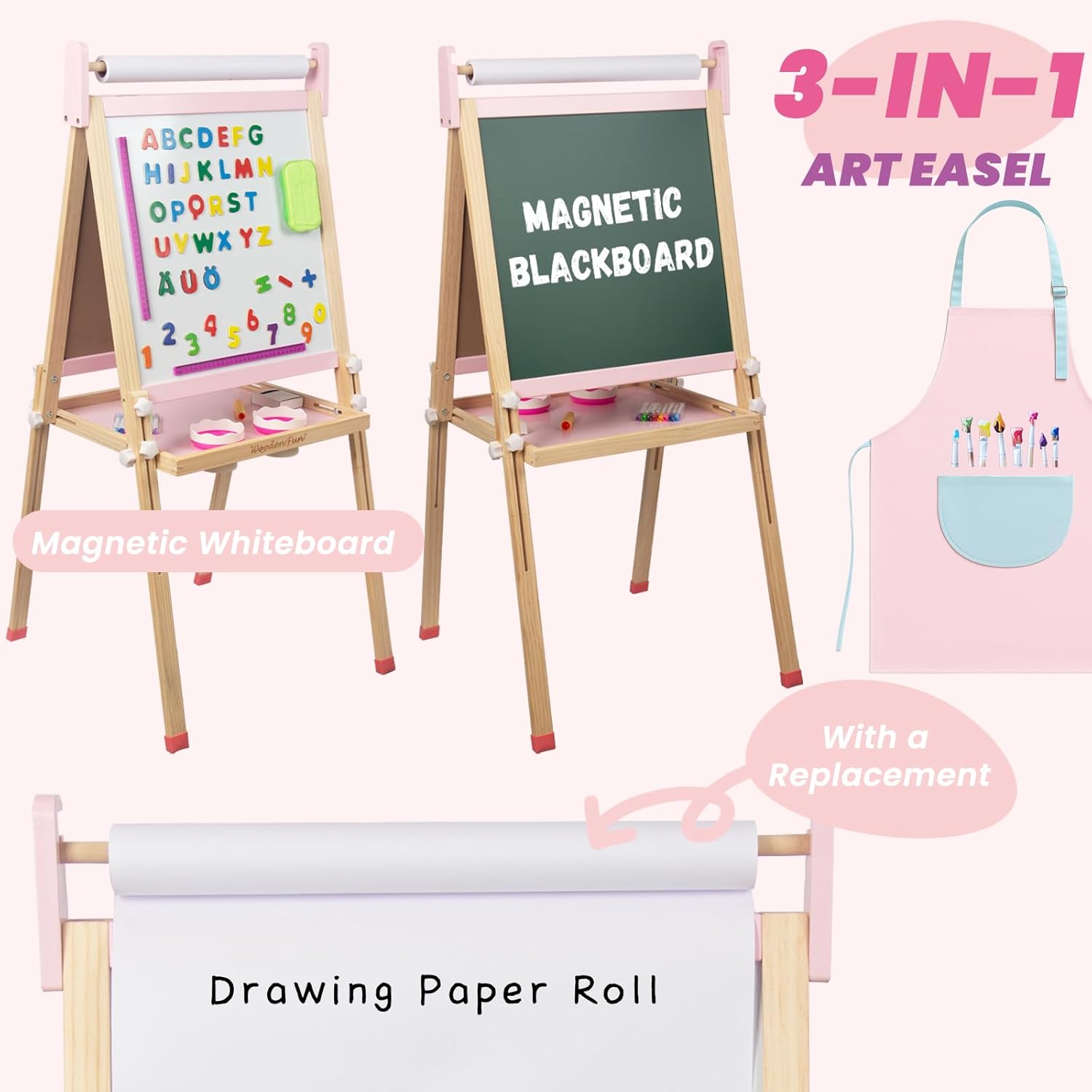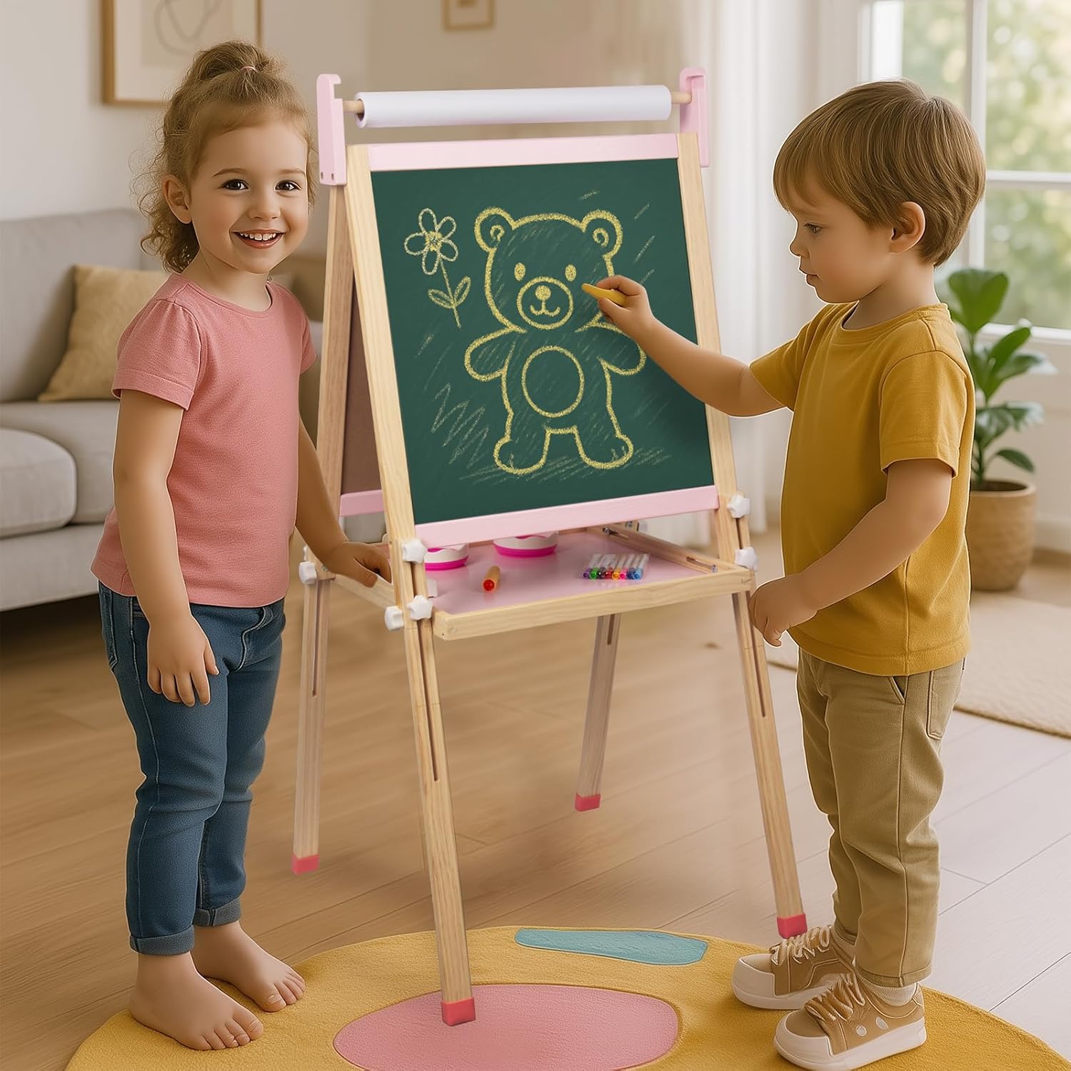 Art Drawing Board: un centro creativo multifunzionale appositamente progettato per i bambini dai 3 ai 12 anni, con una lavagna magnetica su un lato e una lavagna magnetica sull'altro, perfetto per disegnare, fare schizzi e divertimento senza fine. Dimensioni: l'altezza di questa selezione per bambini può essere regolata con un'altezza massima di 114,5 cm e un'altezza minima di 93 cm. Questa spina artificiale accompagnerà la crescita dei nostri bambini e sarà adatta a bambini di età diverse. Ricchi accessori artistici: il nostro cavalletto per bambini viene fornito con un lussuoso set da 10 pezzi, tra cui gomma 1, 2 bottiglie d'acqua, una scatola di gesso senza polvere a 6 colori, una scatola di penne stilografiche a 8 colori, carta rotolo da 10 metri, lettere colorate e numeri magnetici, 2 righelli e un grembiule. Sicuro e stabile: il tavolo da disegno realizzato con materiali resistenti, adatti ai bambini per garantire sicurezza durante il gioco. I bordi sono lisci e la base è stabile, in modo che il bambino possa sviluppare la creatività mentre si sente a proprio agio. Miglior regalo: questo è un regalo ideale per i bambini. Compleanno, Natale, Halloween, Ringraziamento e l'inizio della stagione scolastica. Soddisfa le esigenze dei bambini per dipingere e imparare.