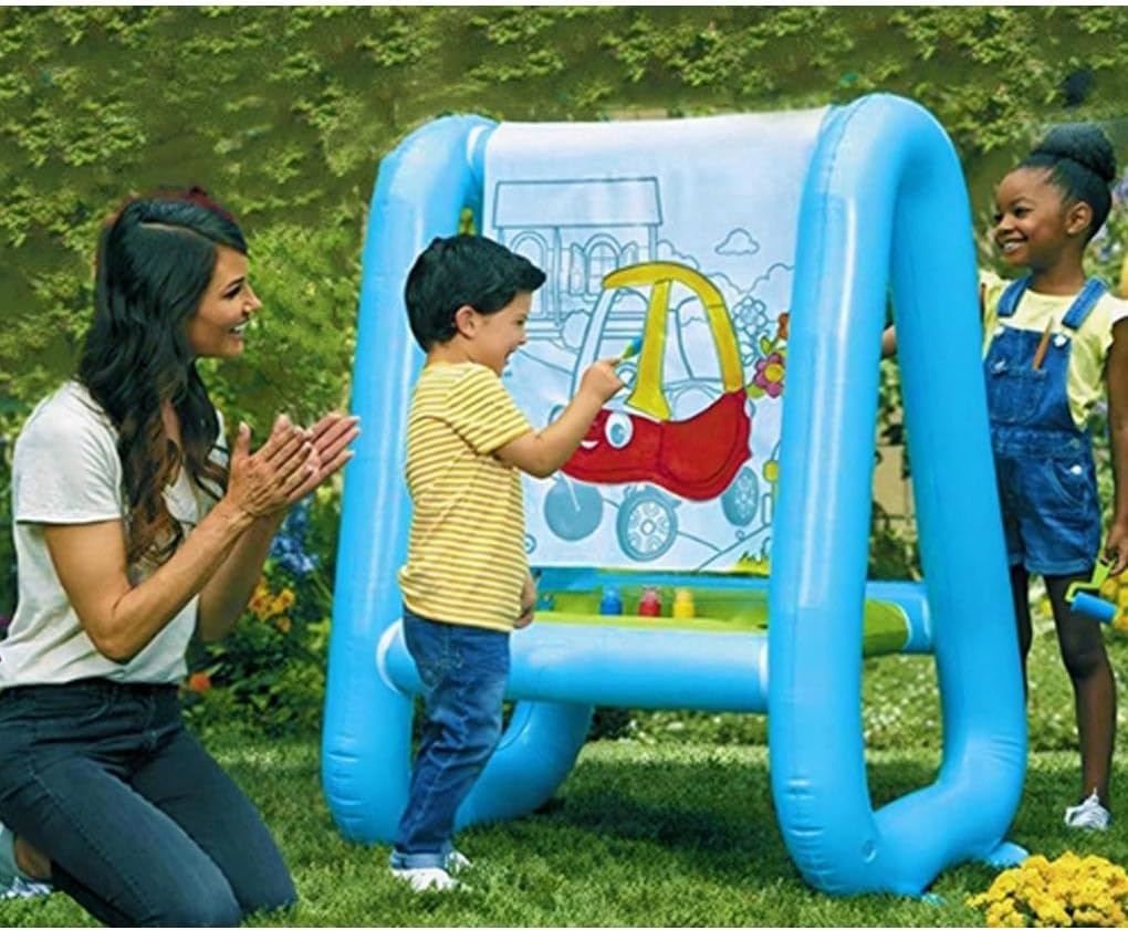 Vassoio pratico: il nostro cavalletto per bambini è dotato di un vassoio integrato che può contenere tutto l'essenziale per il tuo piccolo artista, mantenendo i suoi strumenti organizzati e a portata di mano Cavalletto verticale: il nostro cavalletto per bambini è un cavalletto verticale adatto a bambini di tutte le età, che offre spazio comodo e pratico per l'espressione creativa Riutilizzabile e facile da trasportare: per giocare in movimento, questo cavalletto da esterno è facile da gonfiare e sgonfiare, rendendolo comodo per le attività all'aperto Realizzato in PVC: questo cavalletto da esterno è realizzato in PVC, che lo rende lavabile e resistente per un prolungato Per bambini artistici: questo cavalletto da esterno è pensato per i bambini che amano dipingere e disegnare, offrendo loro sfogo divertente e creativo per l'autoespressione