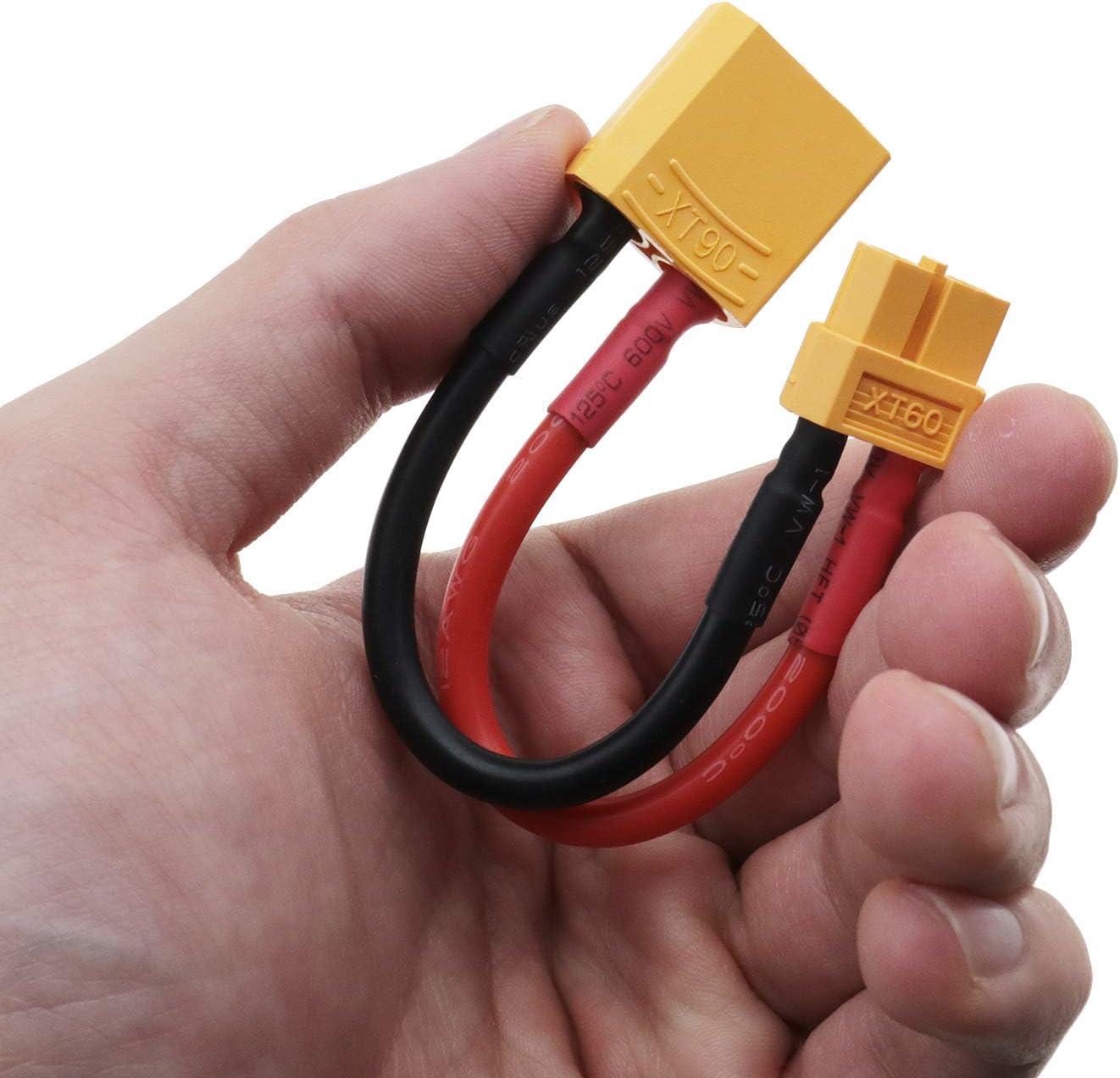 Tipo di connettore: adattatore da XT-90 maschio a XT-60 femmina. Tipo di cavo: cavo in silicone morbido resistente al calore da 10 cm. Utilizzato per: convertire la batteria con XT-90 in XT-60 sul controllo elettronico della velocità. Applicazione: come collegamento tra power bank e attrezzatura, ampiamente utilizzato per il controllo della velocità con spazzole senza spazzole o per il caricabatterie della batteria RC Lipo NiMH NiCd. Alte prestazioni: il connettore con copertura protettiva in plastica è molto resistente, sicuro, leggero e compatto quando collegato e ha prestazioni eccellenti.