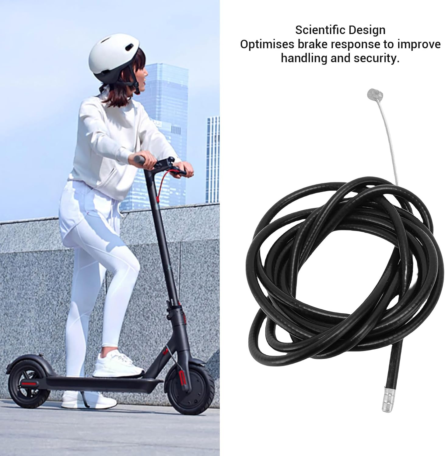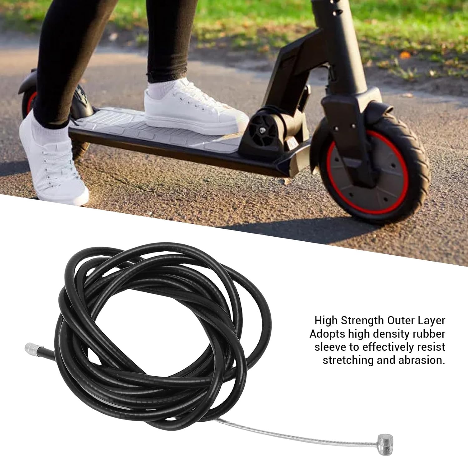 Struttura interna: la struttura interna del cavo è scientificamente progettata per ridurre al minimo l'attrito, garantendo un processo di scorrimento fluido. Ciò aumenta la sensibilità delle funzioni frenanti e garantisce che ogni controllo sia preciso e affidabile, garantendo un'esperienza di guida più sicura. Compatibilità: questo cavo del freno è appositamente progettato per sostituire gli scooter elettrici M365 Pro4 e ha dimensioni precise per adattarsi al sistema frenante originale. Può essere installato facilmente senza modifiche. Processo: il filo del freno viene sottoposto a un processo antiossidante in modo che non si arrugginisca facilmente e possa resistere alla pioggia e alla nebbia salina. Questa caratteristica lo rende ideale per l'uso a lungo termine in vari climi esigenti. Materiale: il cavo è circondato da un manicotto in gomma ad alta densità, con fili interni in acciaio rinforzati che forniscono una buona resistenza alla trazione. Questo design garantisce che il cavo sia resistente alla rottura e alla deformazione anche durante un uso prolungato, garantendo un controllo stabile e affidabile. Lunghezza: con una lunghezza unica di 1,95 metri, questa linea del freno è adatta a varie esigenze di regolazione e cablaggio. Ciò offre agli utenti la flessibilità di apportare modifiche in base alle proprie abitudini di guida o preferenze estetiche.
