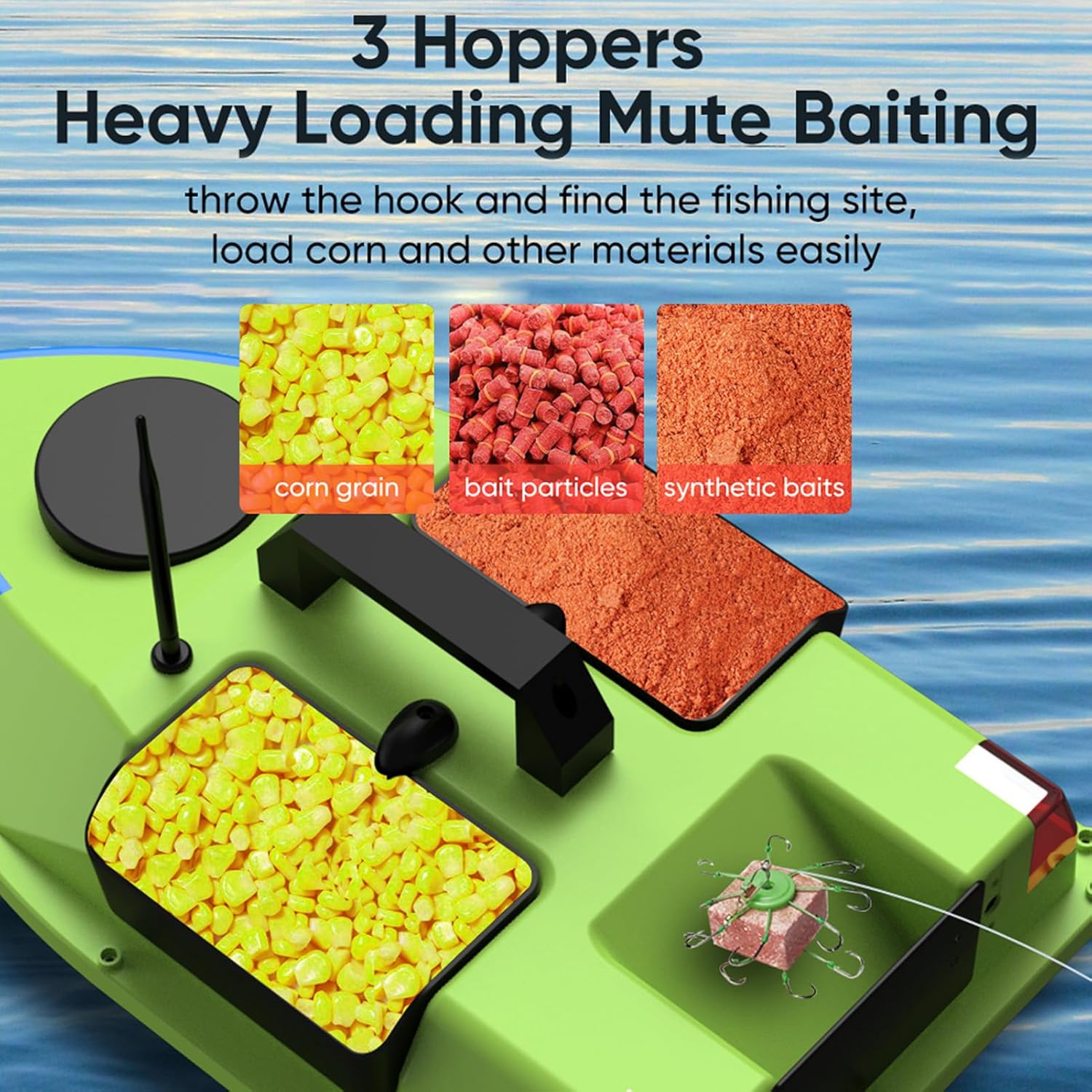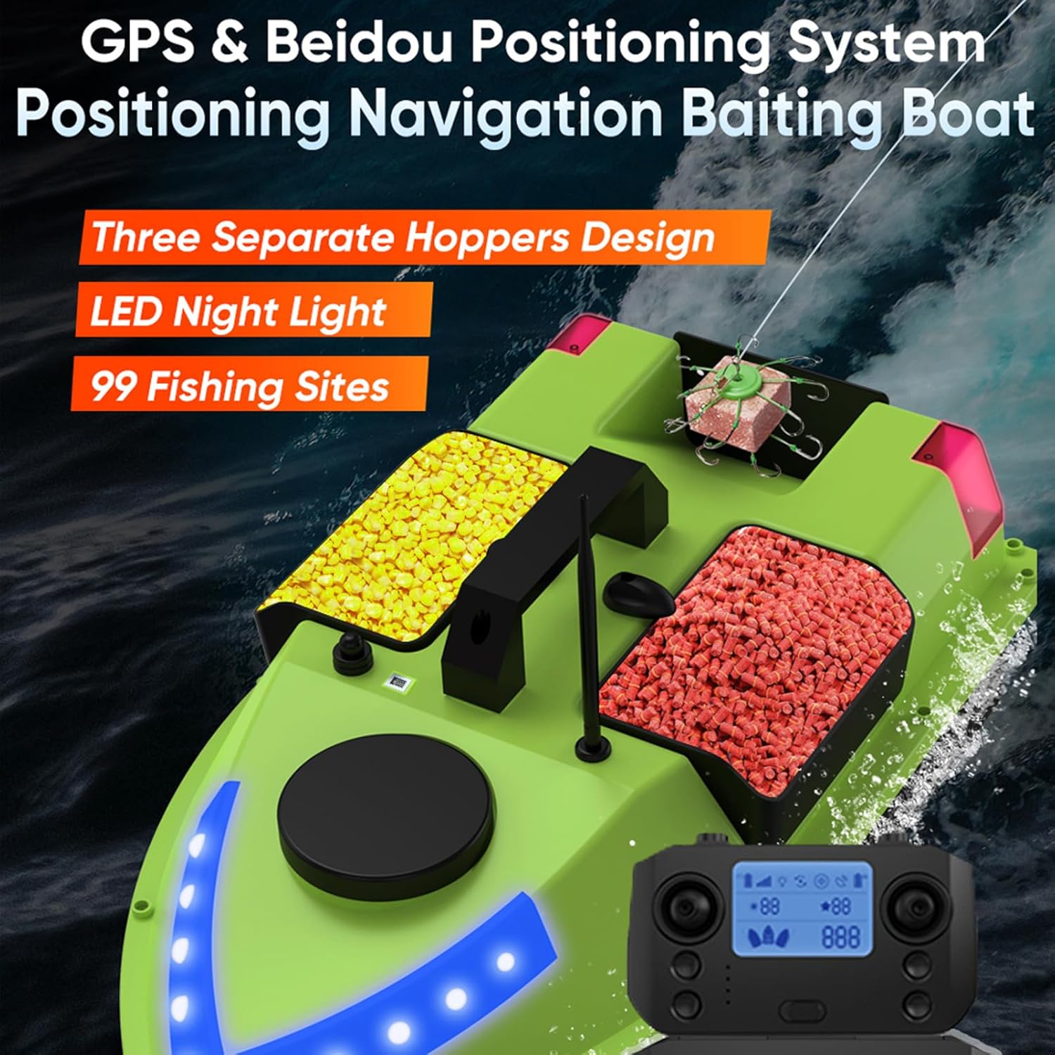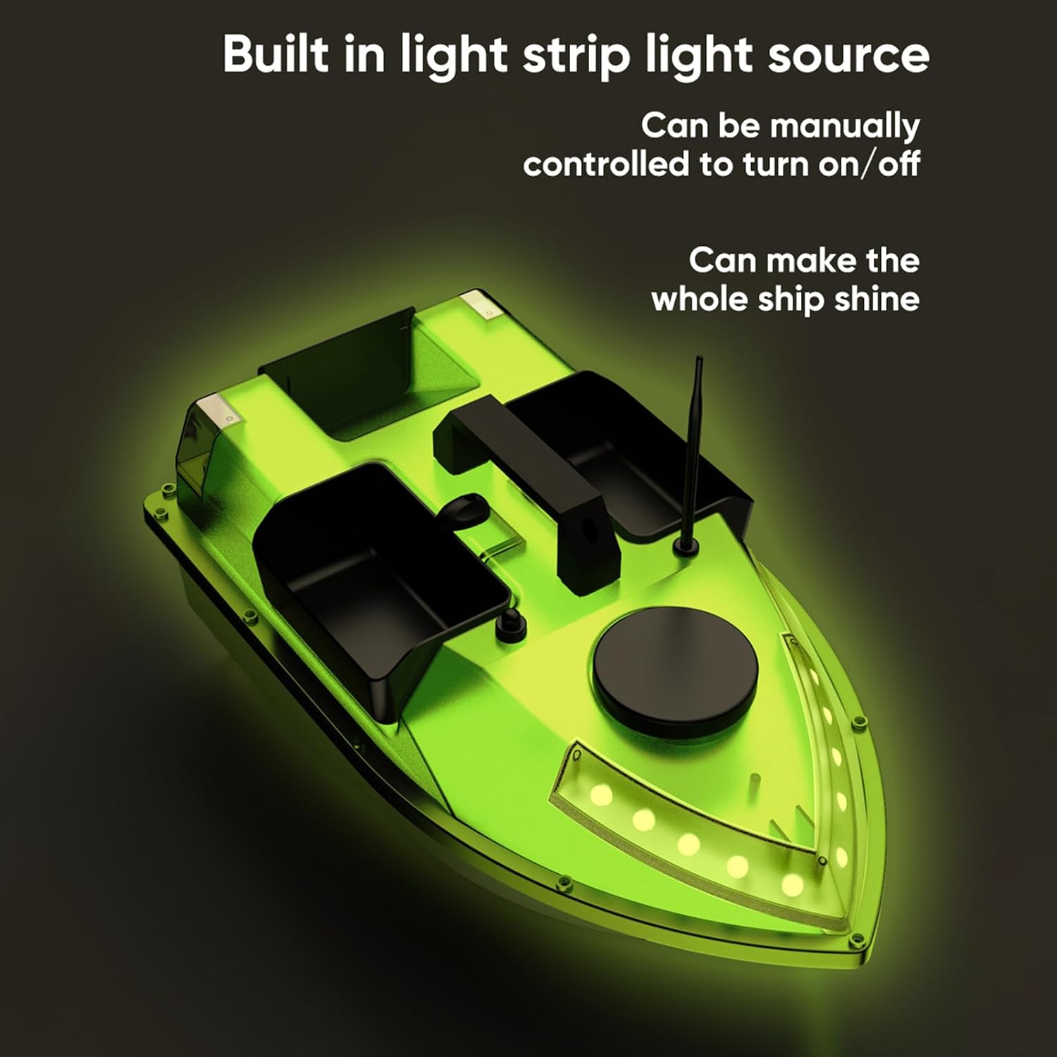 Navigazione automatica: mantiene una rotta dritta anche in acque difficili con rotte corrette automatiche. Remoto controllato: gestire la barca fino a 500 metri di distanza senza lasciare la riva, ottimo per la pesca. Design resistente alle intemperie: il design completamente sigillato garantisce la durabilità in condizioni meteorologiche rigide e acque turbolente. Barca da pesca illuminata: le luci a LED a 7 colori offrono una maggiore visibilità di notte, facendo brillare l'intero corpo. Navigazione GPS: impostare fino a 99 punti esche con la funzione GPS, permettendoti di tornare facilmente ai tuoi punti preferiti.