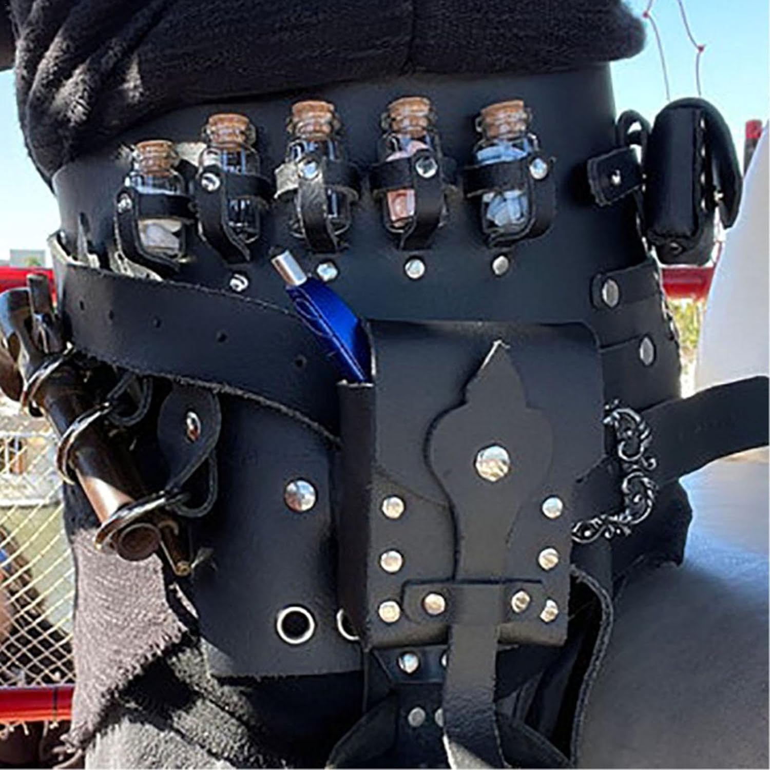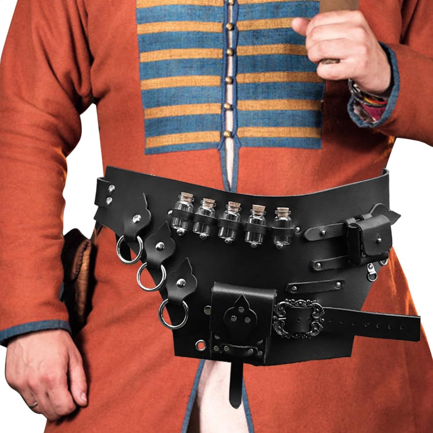 Booster d'authenticité : rehaussée par son style vikings , cette pochette de ceinture de chevalier vous ramène dans le temps. L' vintage et la boucle en métal offrent une dose supplémentaire d'authenticité. Un incontournable pour les dilettanti de cosplay, de fantasy et d'histoire. Conception réglable : notre pochette de ceinture chevalier est soigneusement conçue avec une ceinture réglable, assurants un ajustement confort pour toutes les formes et tailles. Rangez facilement vos affaires lors de vos déplacements et rehaussez n'importe quelle tenue avec cet accessoire polyvalent. Matériau résistant à l'usure : grâce à sa conception solide et robuste fabriquée avec un matériau en cuir PU affidabile et souple, notre pochette de ceinture chevalier sera votre compagnon de longue date. Il ne se décolore pas et ne se casse pas facilement, offrant une surfac lisse qui ajoute une touche d'élégance à votre tenue. Cintres pour bouteilles de potion : devenez l'aventurier ultime avec notre pochette de ceinture Knight ! Son design multi-poches vous permet de rangerr de petits objets et d'accrocher des bouteilles de potion pour un habillage pratique et créatif. Utilisation étendue : les femmes, les hommes ou les chevaliers qui participent à des jeux de rôle, au cosplay ou à des événements médiévaux adoreront cette pochette de ceinture de chevalier. Sa polyvalence le rend parfait pour rangerr des pièces de monnaie, des clés, des cartes ou d'autres petits objets lors de toute activité.
