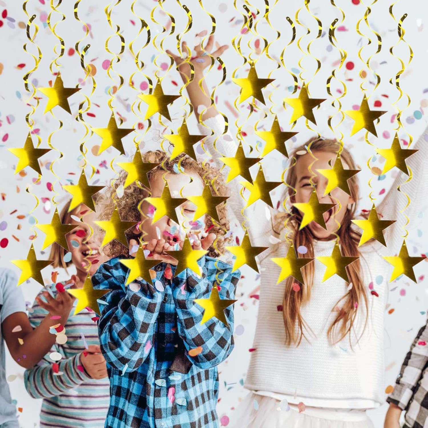 L'ornamento facile da sospendere diffonde facilmente, permettendoti trasformare qualsiasi spazio in celebrazione degna del momento più memorabile Adatto a decoratori, interni e pianificatori feste che apprezzano tocchi decorativi unici e attenzione ai dettagli Solleva la tua celebrazione con le spirali della stella d'oro appesa all'ornamento, un ciondolo scintillante stelle d'oro che promette portare un tocco fascino a qualsiasi evento Realizzato in PVC e carta qualità, questo arazzo presenta i design a spirale resistenti pratici e arrugginiti, garantendo scintille per molteplici occasioni Questa decorazione sospesa da stella è adatta a graduazioni, matrimoni, docce per bambini, compleanni e feste Natale, creando un ambiente festival