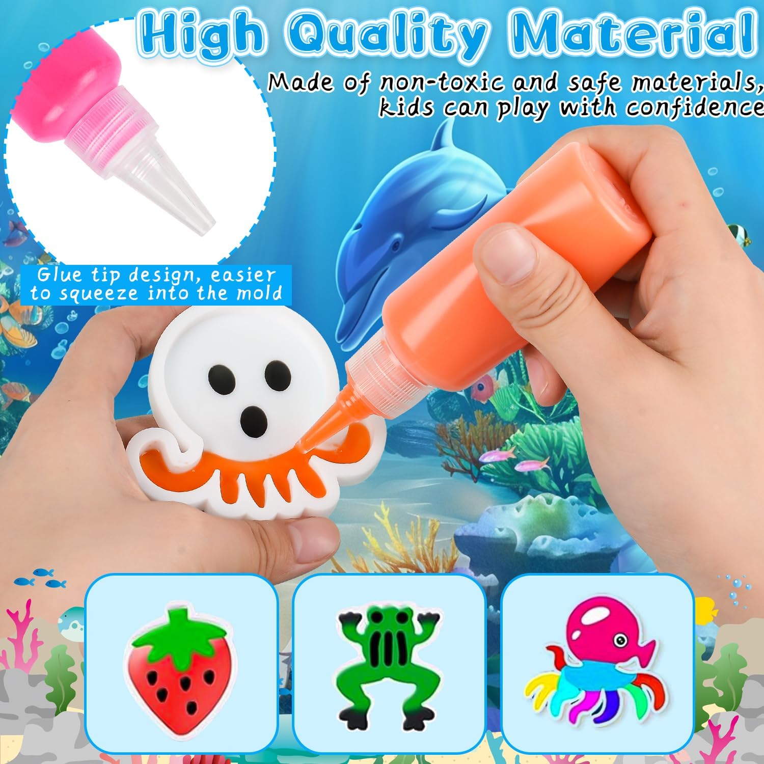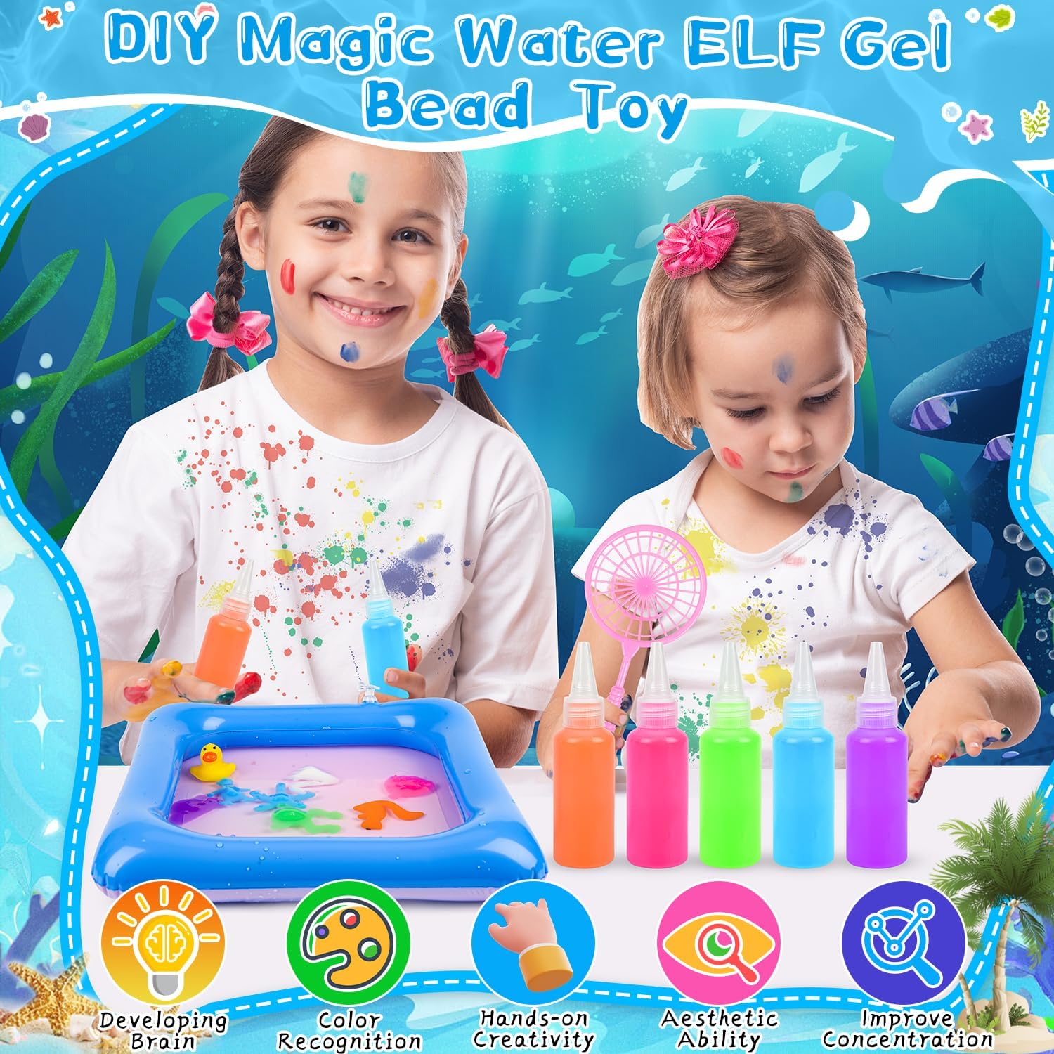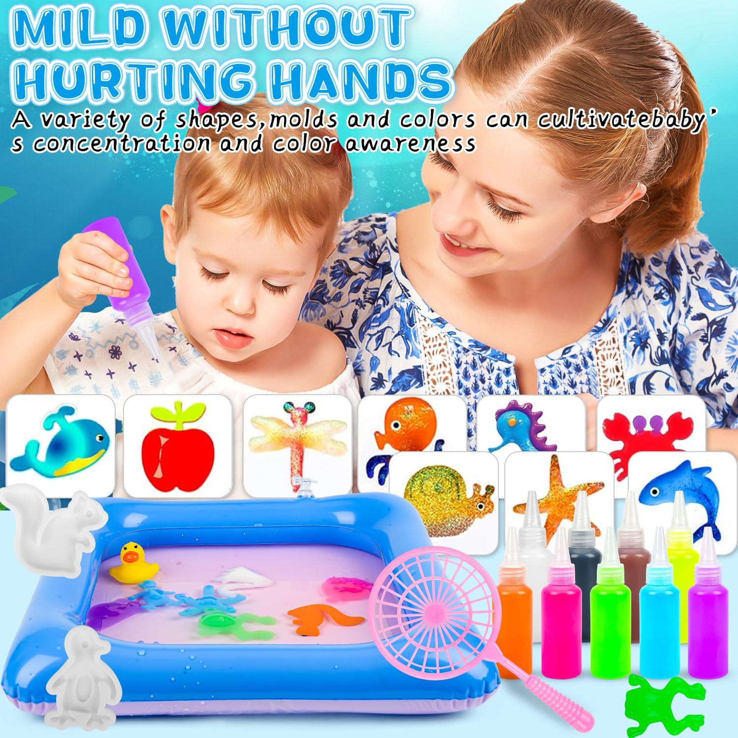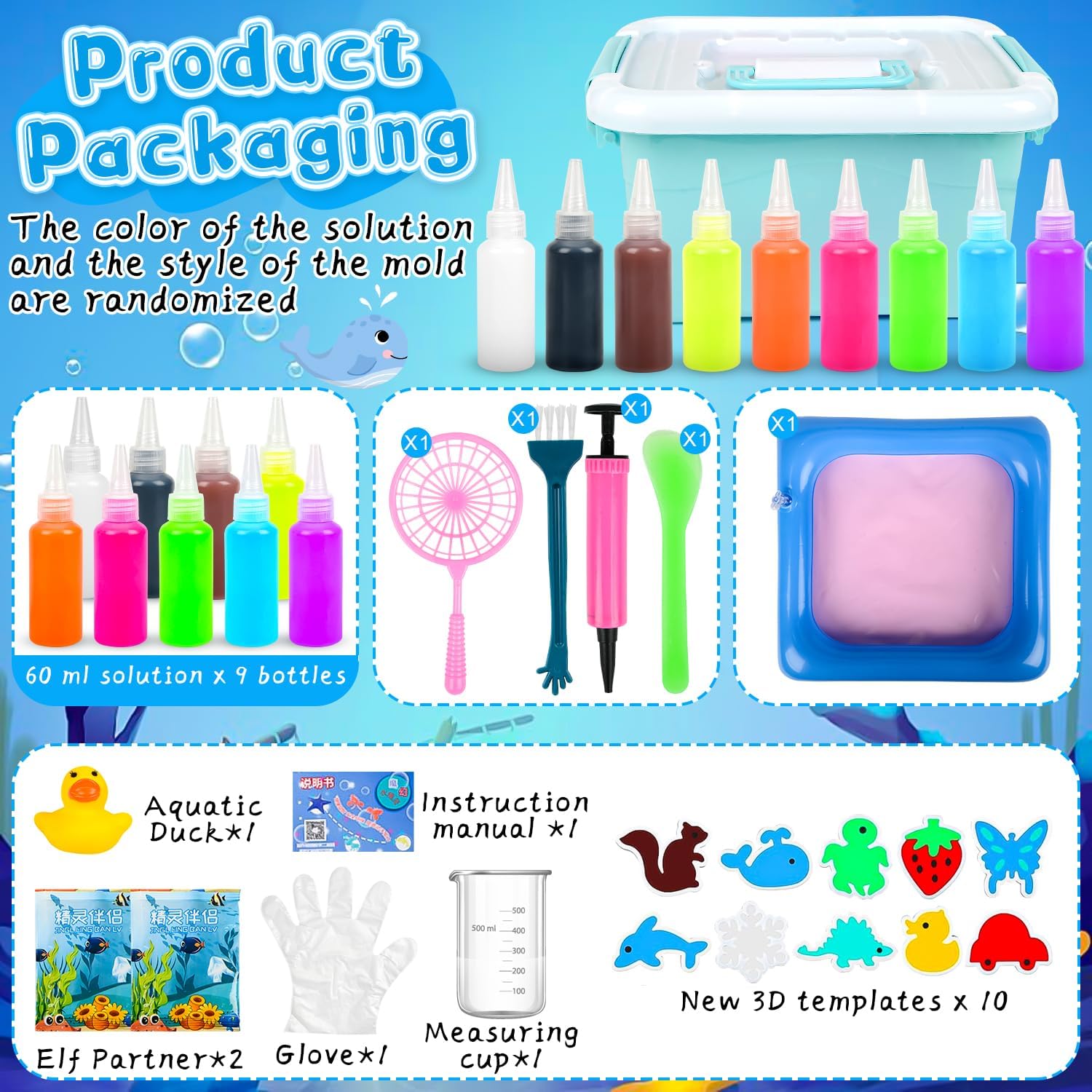 【Kit gel d'acqua Aqua Fairy】Questo kit di perline di gel d'acqua sensoriale consente ai bambini di creare giocattoli colorati e morbidi semplicemente aggiungendo acqua al gel d'acqua. Il processo semplice e divertente promuove la creatività e il senso di realizzazione nei bambini. 【Set di animali ELFI d'acqua magici fai da te】Il kit include 10 stampi unici, 60 ml di 9 colori vivaci di gel d'acqua, polvere di lattato di calcio, bottiglie per acquari, guanti monouso e uno scolapasta, offrendo infinite possibilità creative per un gioco fantasioso. 【Promuove la creatività e lo sviluppo delle abilità】I bambini miglioreranno la loro immaginazione, il pensiero critico e le capacità motorie fini mentre progettano e creano i loro giocattoli elfi d'acqua magici, trasformando il tempo di gioco in un'esperienza di apprendimento. 【Perfetto per il gioco sociale】Ideale per il legame genitore-figlio o il gioco di gruppo, questo set è perfetto per feste di compleanno, vacanze e incontri sociali, aiutando i bambini a collaborare e condividere il divertimento. 【Materiali sicuri ed ecologici】Realizzato in resina atossica ed ecologica e alginato di sodio naturale, questo kit di gel d'acqua garantisce un'esperienza di gioco sicura e divertente, nel rispetto dell'ambiente.