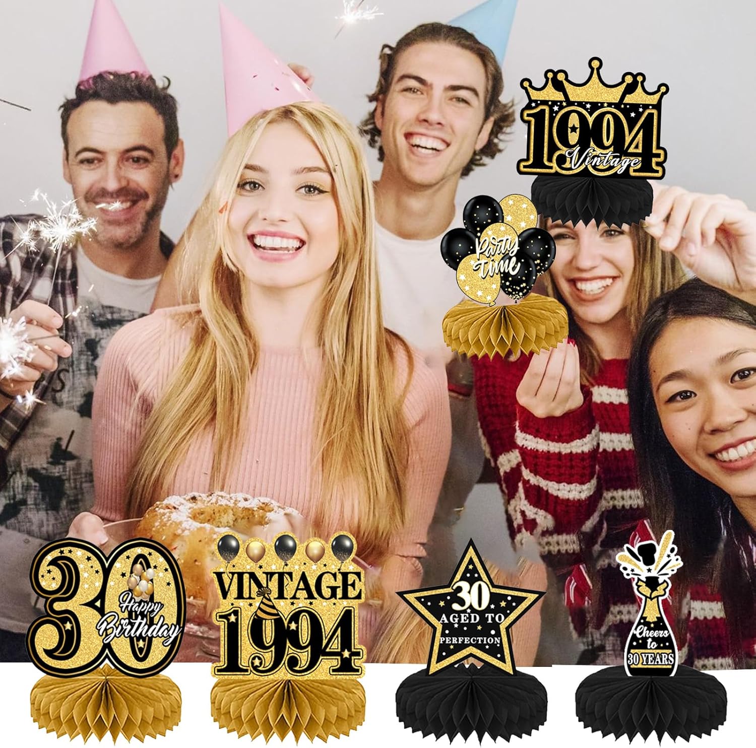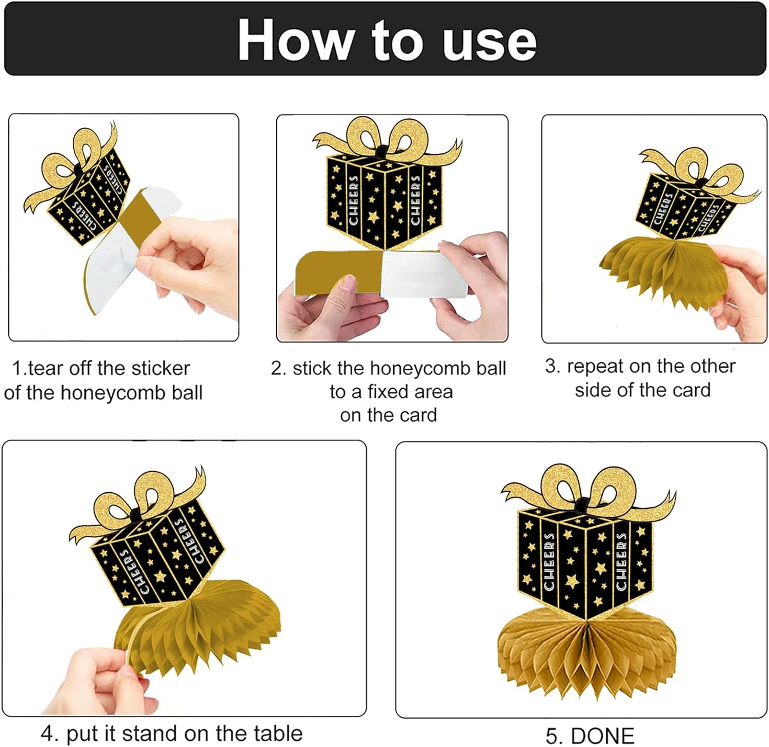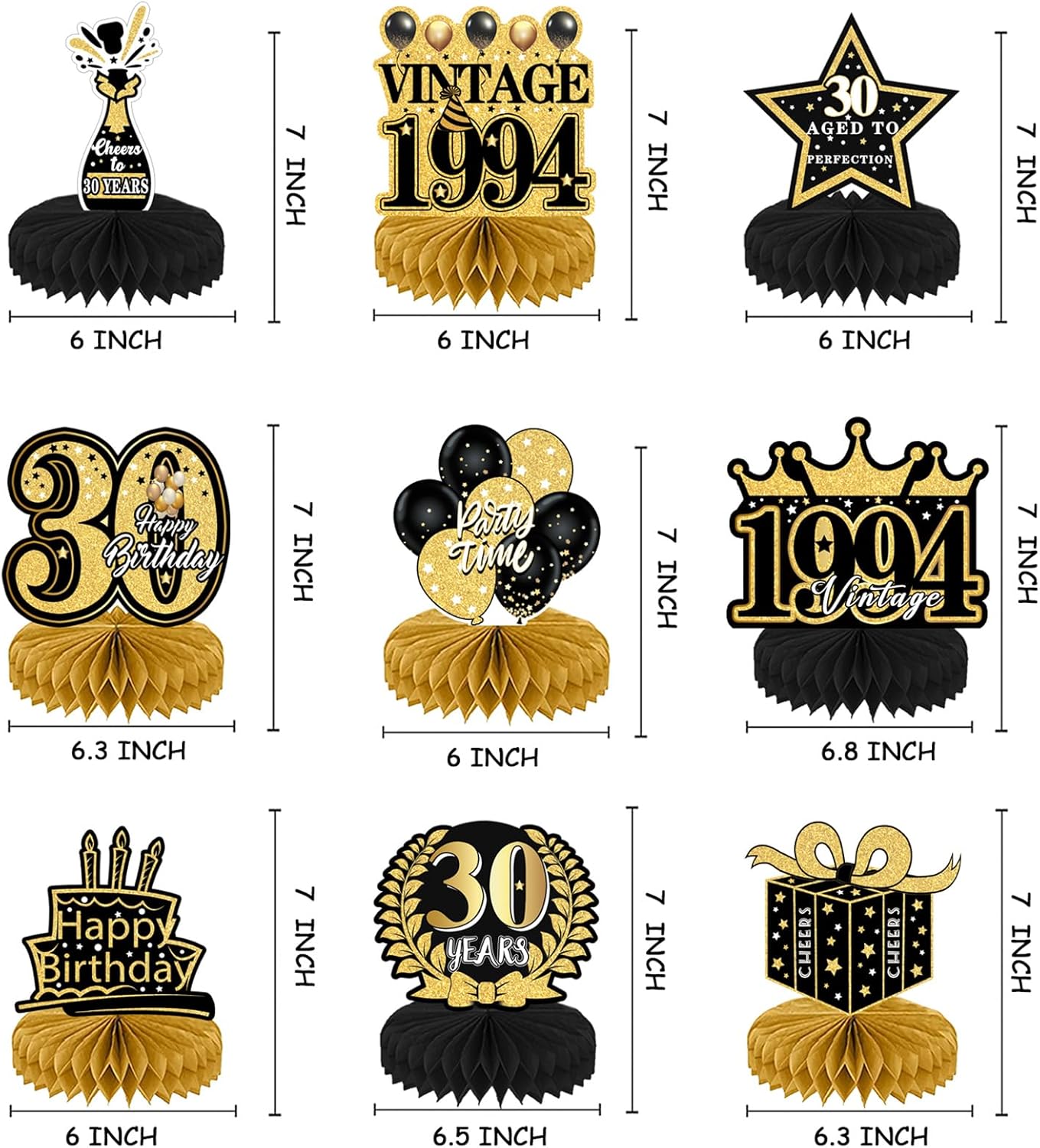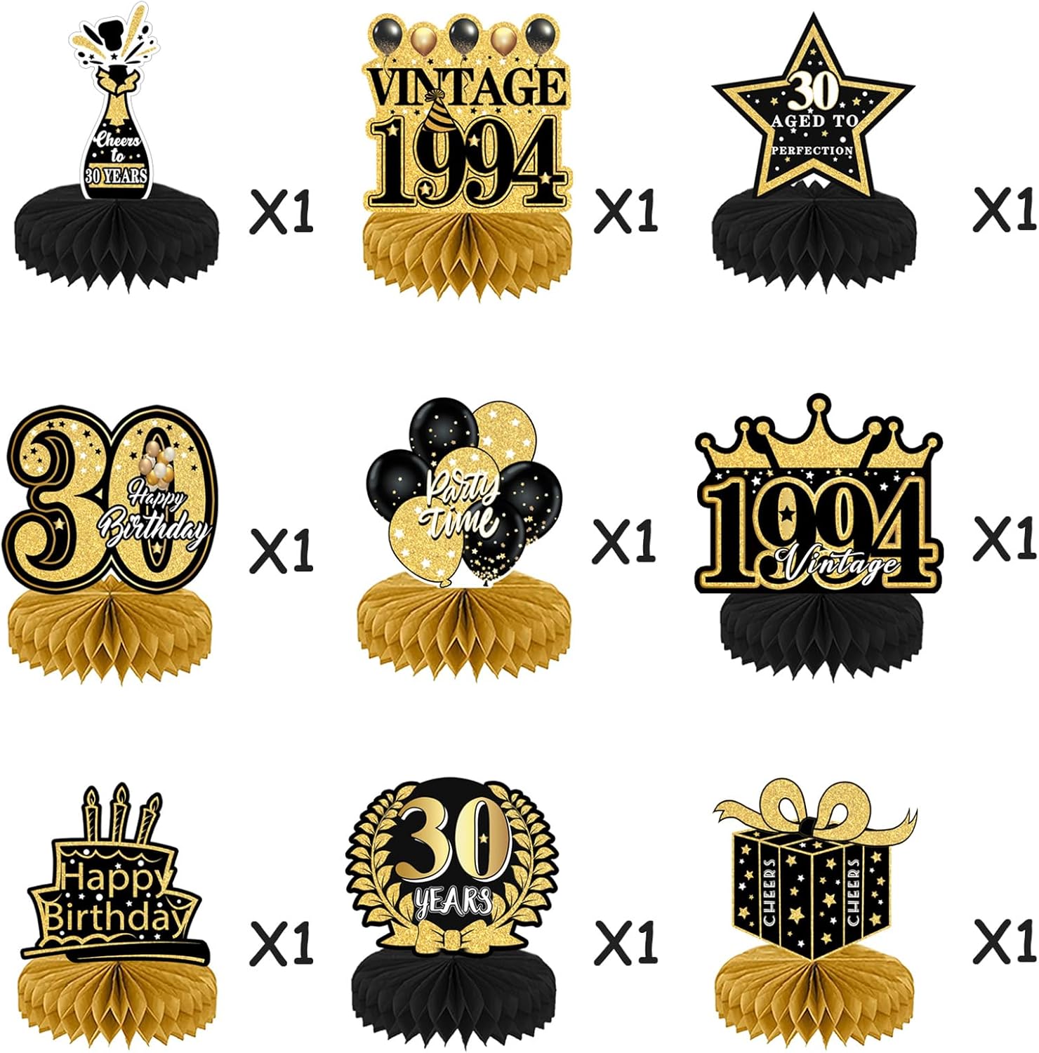 🎂Decorazioni per il 30° compleanno in oro nero: il pacchetto include 9 set di centrotavola a nido d'ape per compleanno e coriandoli di buon compleanno da 15 g. Puoi decorare la tua casa e la tua festa con queste decorazioni per feste di compleanno e divertirti. 🎉Alta qualità: i centrotavola compleanno sono realizzati in robusto cartone con superficie laminata e delicata tecnologia di stampa. Non sbiadisce facilmente e può essere utilizzato ripetutamente. Leggero, sicuro e non tossico. 🎈Facilità di montaggio: staccare l'adesivo dalla sfera a nido d'ape. Apri il nido d'ape e attaccalo alla superficie della carta. Ripeti il passaggio successivo sull'altro lato della carta e infine posizionala sul tavolo. Ogni centrotavola ha una zona per assemblare il nido d'ape, montaggio facile e veloce. ✨Design 3D: design tridimensionale, fresche decorazioni nere e dorate danno un forte impatto visivo e lasciano un'impressione profonda. Stampato fronte-retro, posizionarlo sul tavolo sarebbe senza dubbio la migliore decorazione da tavola per una festa di compleanno. 🎁Grandi centrotavola per il 30° compleanno: centrotavola per il 30° compleanno dal design raffinato e interessanti elementi di compleanno sono molto adatti come decorazioni per la tua festa di compleanno. Puoi metterlo sul tavolo come decorazione o appenderlo con una clip. Questa è un'ottima scelta per le decorazioni della tavola di compleanno per uomini e donne, tutti adoreranno questi design chic.