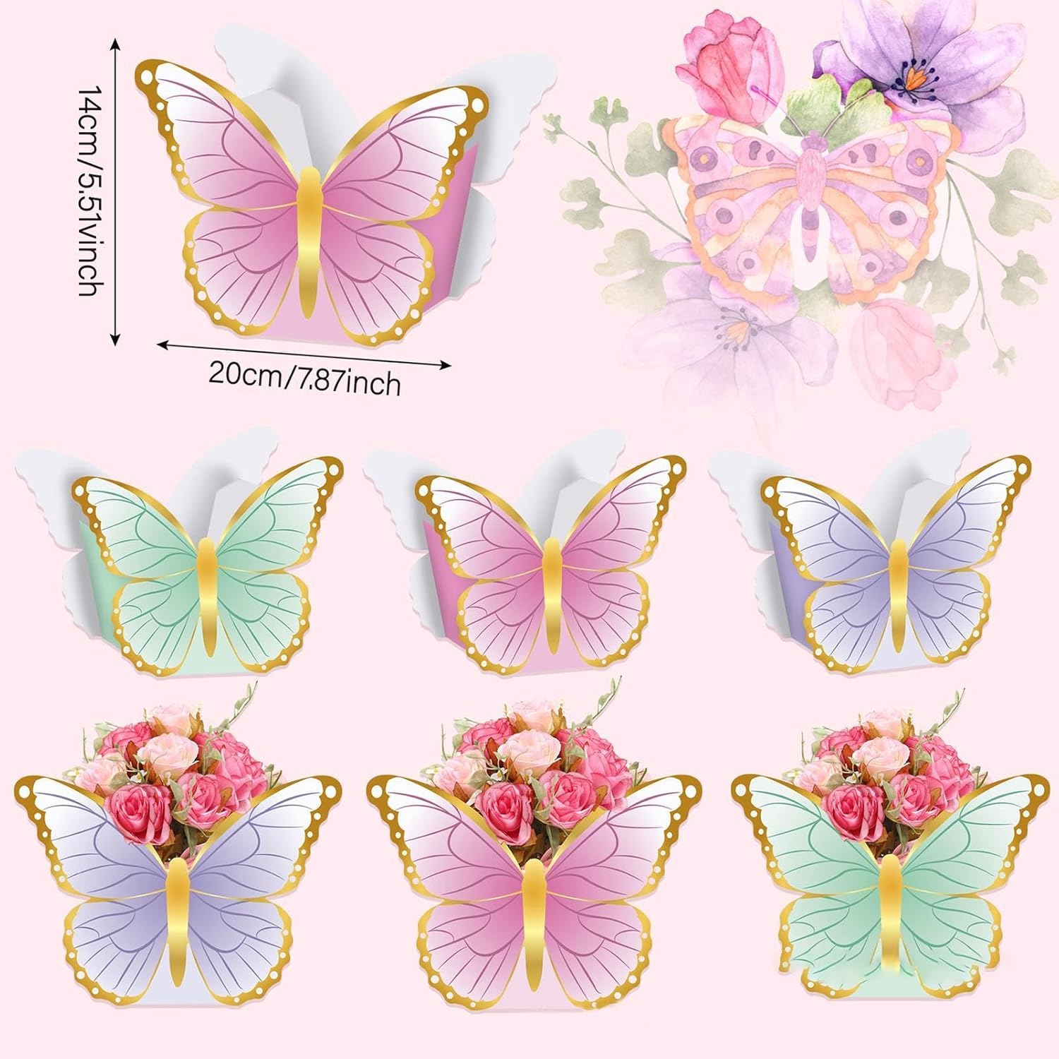Bellissime decorazioni da tavola con farfalle: queste decorazioni da tavola presentano un design unico in colori vivaci e vivaci che affascineranno i tuoi ospiti. Realizzata meticolosamente con dettagli squisiti, la scatola regalo con farfalle aggiunge un tocco di eleganza in più all'arredamento della tua festa ed è un bellissimo ricordo da portare a casa per gli ospiti Dimensioni perfette: riceverai 12 pezzi di farfalle centrotavola per fioriere, scatole regalo per tea party in 3 colori diversi, con 4 pezzi per ogni colore, che possono soddisfare le tue esigenze di decorazione Installazione semplice: crea bellissimi centrotavola con farfalle in pochi minuti con le nostre semplici decorazioni. Segui le pieghe, usa il nastro biadesivo per incollare insieme la parte bianca e incolla i due lati delle farfalle per un montaggio istantaneo: nessuna piega lasciata indietro Stile elegante: con elementi e motivi eleganti accuratamente selezionati, le nostre decorazioni da tavolo con farfalle presentano un design complessivo straordinariamente bello. I colori armoniosi, luminosi e tenui come le farfalle rosa, viola e verde si fondono perfettamente, deliziando gli occhi di chiunque le veda Multifunzionale: trasforma il tuo evento in un bizzarro paese delle meraviglie con le nostre decorazioni da tavola con farfalle. Servi spuntini durante i tea party pomeridiani usali come vasi per esporre fiori durante matrimoni, baby shower, compleanni e riunioni di famiglia