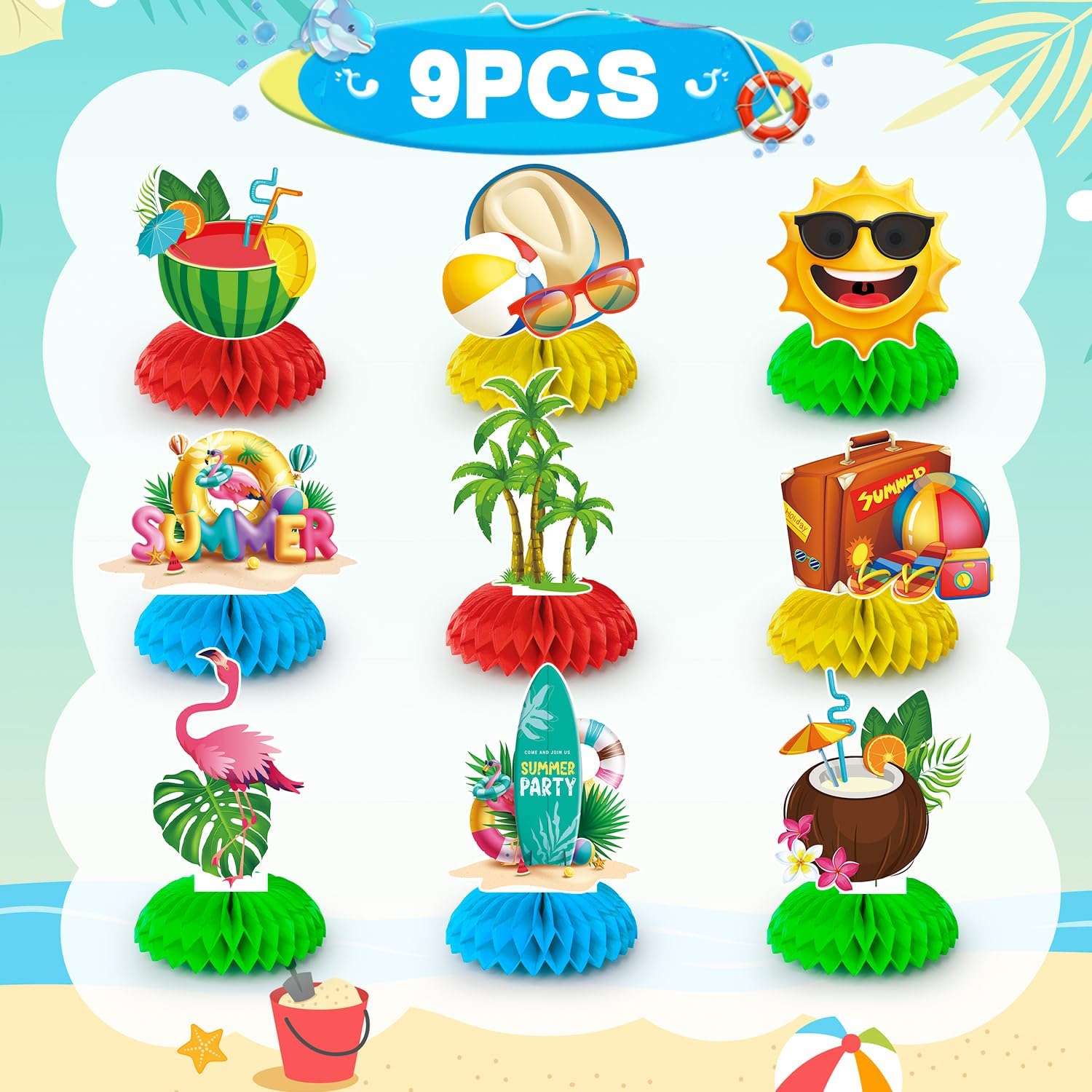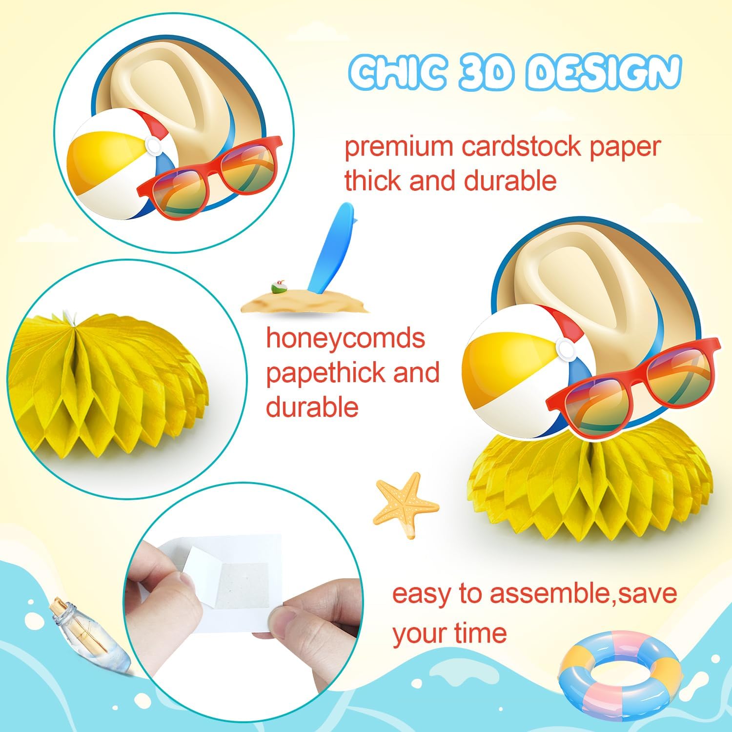 Set centrotavola a nido d'ape da spiaggia: il set centrotavola per feste estive viene fornito con 9 pezzi di decorazioni 3D per feste in spiaggia, ognuna con uno stile diverso, che è l'invisibile accattivante festa in spiaggia articolo festa Design unico: il centrotavola estivo a nido d'ape da spiaggia è progettato con classici elementi estivi e stampe trasparenti su entrambi i lati, tra cui 9 diversi modelli di spiaggia estiva, come sole, spiaggia, albero di cocco e molto altro ancora, delicato design a base a nido d'ape, unico e generoso, rende la decorazione della tua festa estiva più unica e bella Materiale di alta qualità: questi centrotavola estivi a nido d'ape sono realizzati in robusto cartoncino con laminazione superficiale e stampa delicata e il design 3D rende questi centrotavola a nido d'ape per feste in spiaggia saldamente sul tavolo e saranno la decorazione perfetta per la tua festa estiva in spiaggia Facile da decorare la tua festa estiva: devi solo aprire questi adorabili centrotavola a nido d'ape per feste estive in spiaggia e staccare l'adesivo sul retro del centrotavola per feste estive, aprire la palla a nido d'ape, incollare il motivo del biglietto e può stare in piedi dopo il montaggio Molteplici occasioni: il centrotavola con decorazioni estive sarà un'aggiunta divertente a qualsiasi festa estiva, festa in spiaggia, ecc., e il centrotavola a nido d'ape può essere abbinato bene a qualsiasi altra decorazione per feste estive per rendere la tua festa estiva eccitante