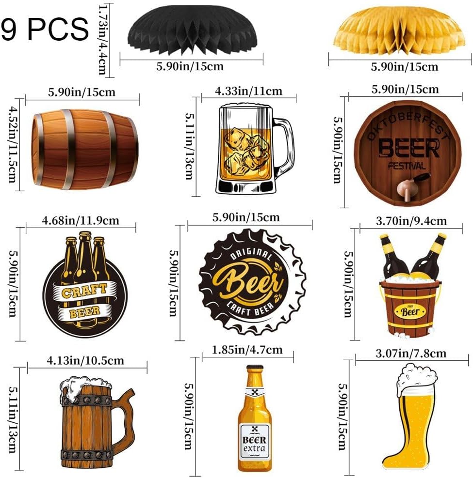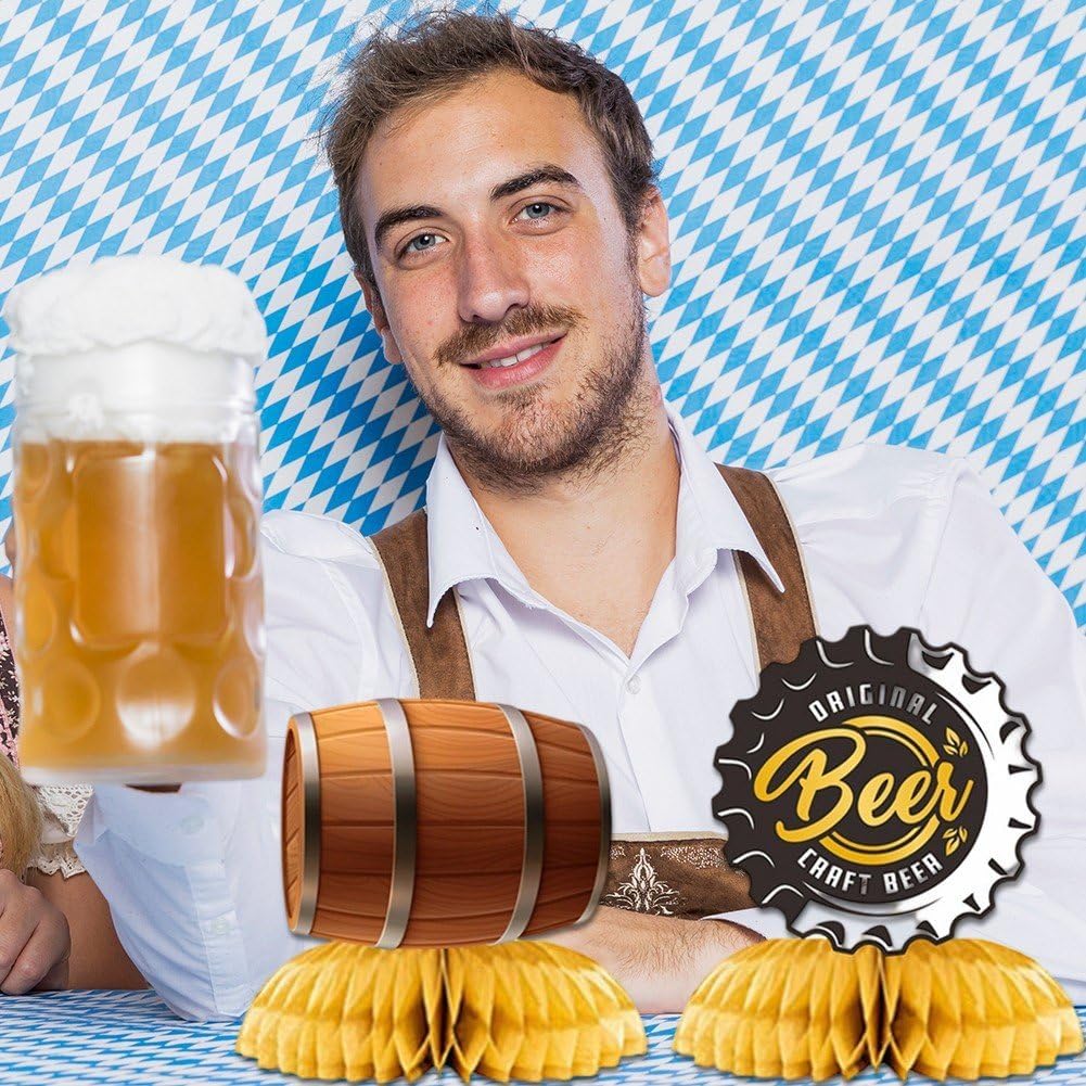 Decorazioni per tavoli a tema Oktoberfest: queste decorazioni per tavoli a tema Oktoberfest, appositamente realizzate, trasformano vostra sala pranzo in un ambiente festival della birra tedesca, offrendovi un'autentica atmosfera Oktoberfest. Facile usare e versatile: il nostro kit di decorazioni per feste 'Oktoberfest è facile usare. Essendo versatile, si adatta a diversi temi di festa, che si tratti di una festa 'Oktoberfest, di un festival della birra tedesca o di un semplice ritrovo con un tocco tedesco. Completo set di decorazioni Oktoberfest: il nostro kit di decorazioni 9 pezzi è tutto ciò che ti serve per dare vita all'Oktoberfest nel spazio. Ogni set include diversi elementi a tema Oktoberfest, rendendolo un pacchetto completo per qualsiasi celebrazione. Festival della birra tedesca: ispirato alla vivacità dei festival della birra tedeschi, il nostro kit di decorazioni per l'Oktoberfest è stato ideato per conferire alla tua festa tipica atmosfera rustica vivace tipica della birra tedesca. Raffinato motivo a nido d' 'Oktoberfest: ogni decorazione presenta il classico motivo a nido d' 'Oktoberfest. Questo tocco unico non contribuisce all'atmosfera festosa, è anche un sicuro spunto di conversazione tra i vostri ospiti.