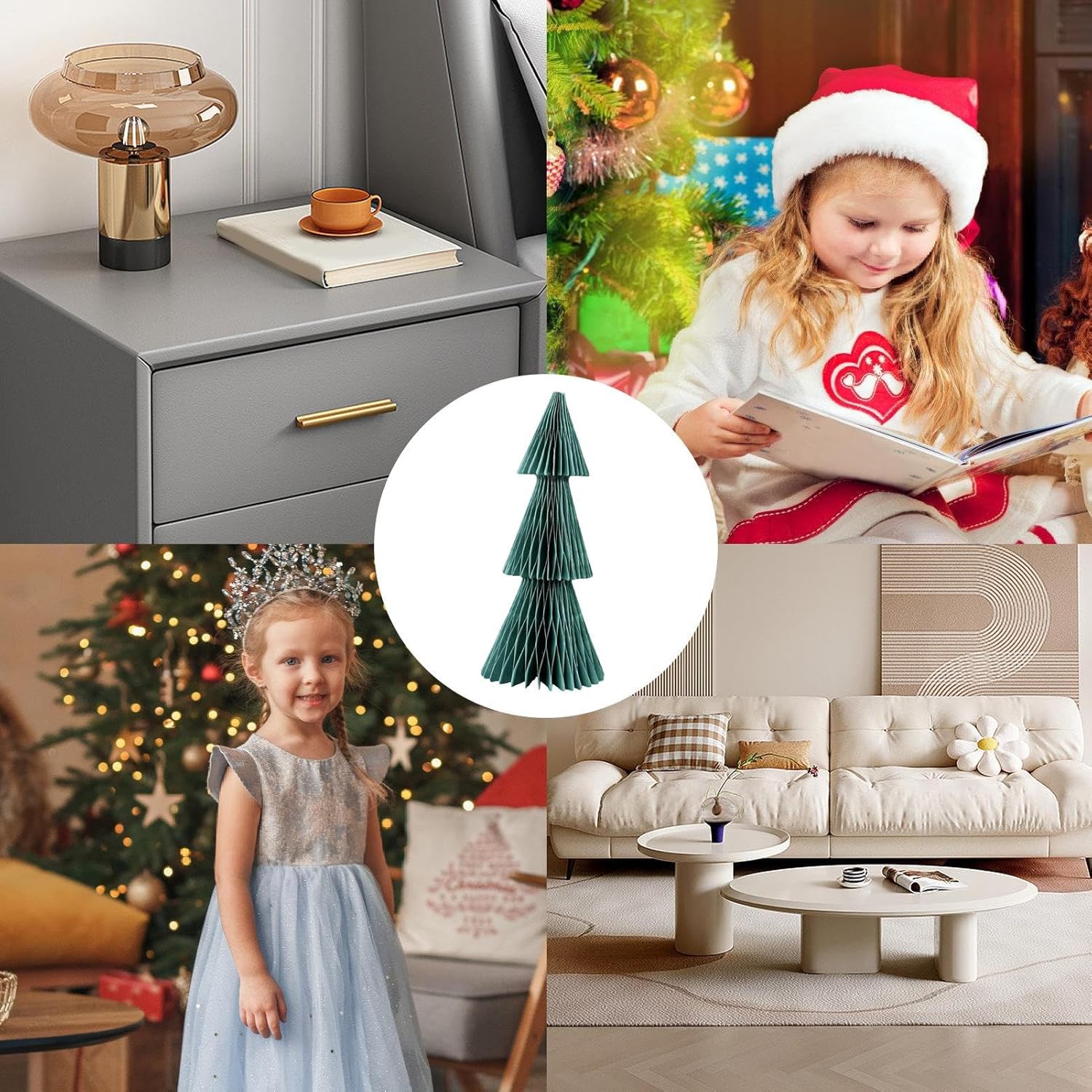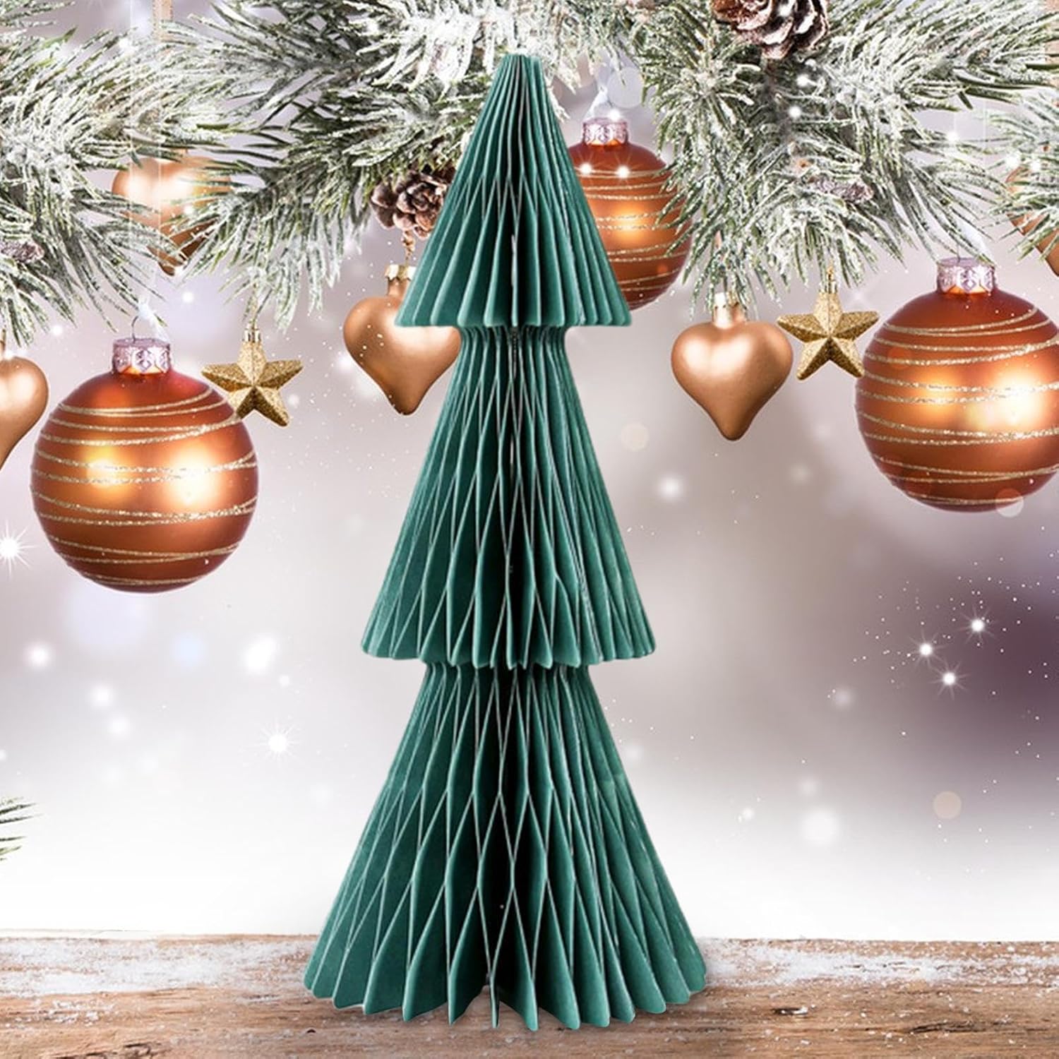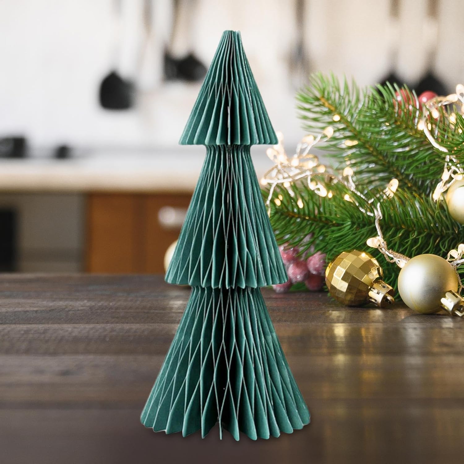 Design accattivante: i colori vivaci attirano facilmente l'attenzione e infondono l'ambiente circostante con un'energia deliziosa, esaltando lo spirito stagionale attraverso un fascino decorativo giocoso ma elegante. Ornamento festivo durevole: realizzato con carta di alta qualità, morbida al tatto ma resistente alla rottura, garantendo anni di divertimento come parte delle vostre decorazioni natalizie. Installazione rapida: questo albero di Natale a nido d'ape in carta richiede solo pochi secondi per essere completato, con una semplice rotazione e inserimento per un funzionamento facile per tutti gli utenti. Posizionamento festivo ideale: adatto per il posizionamento al centro della sala da pranzo o su superfici rialzate, le dimensioni convenienti di questa decorazione garantiscono un facile utilizzo. integrazione in qualsiasi casa, rendendo lo stile festivo semplice e visivamente accattivante Design adatto alla casa: dal soggiorno alla camera da letto, dal tavolo da pranzo al bancone o alla libreria, questo albero di Natale a nido d'ape offre un ampio utilizzo, adorna senza sforzo la tua casa con un tocco di allegria e versatilità natalizia