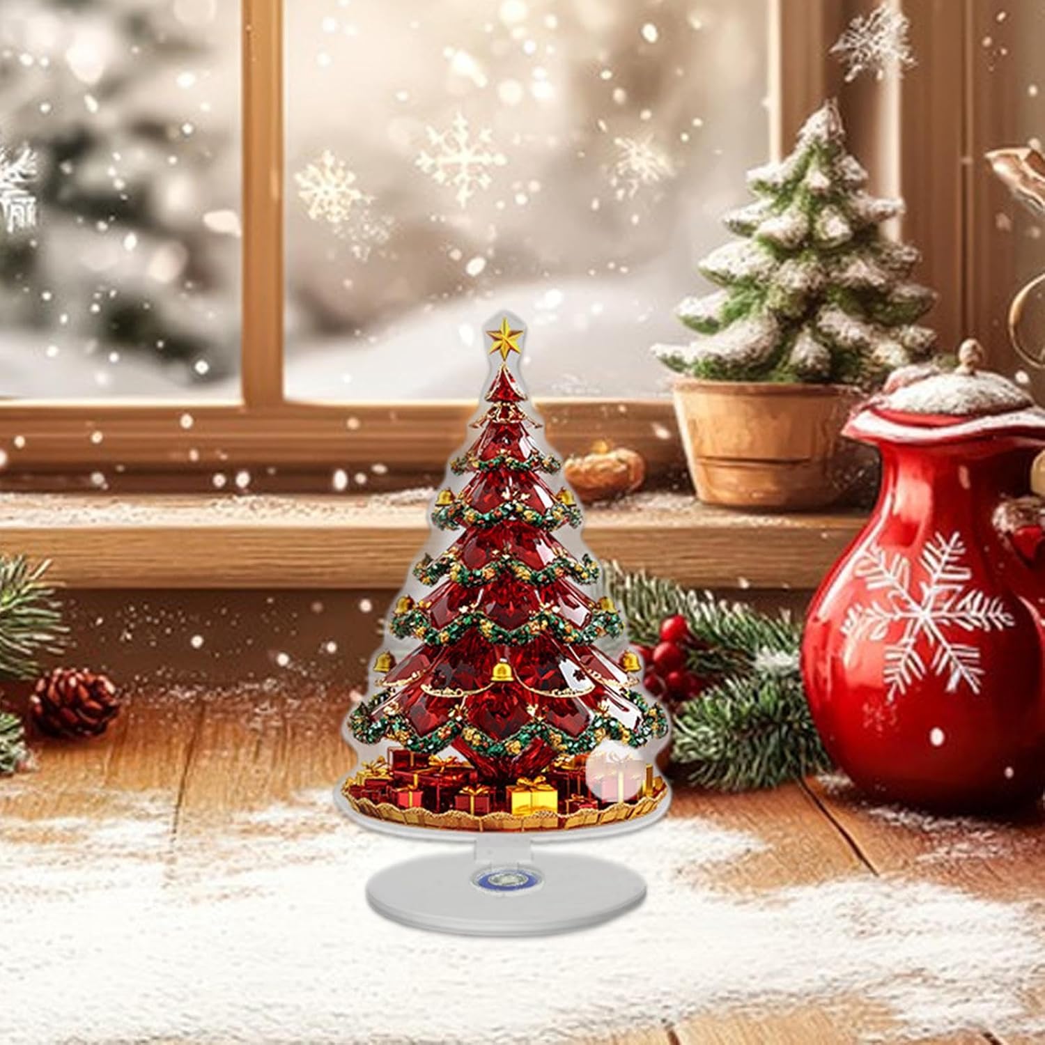 Atmosfera natalizia migliorata: con il suo centrotavola natalizio in acrilico, questo centrotavola natalizio in acrilico 2D dona un'atmosfera migliorata alle tue celebrazioni, fornendo funzionalità e fascino in quanto aggiunge un tocco festoso alle cene o alle calde serate in famiglia durante la stagione. Funzione rotante: la decorazione natalizia da scrivania in acrilico 2D incorpora una cerniera rotante incorporata, che consente una rotazione fluida con un tocco del dito per evidenziare i dettagli decorativi da più angolazioni, migliorando l'attrattiva visiva su scrivanie o scaffali durante le festività natalizie e fornendo stabilità con la sua base robusta per divertimento ininterrotto Durabilità assicurata: questa decorazione per la tavola di Natale in acrilico 2D presenta una composizione di alta qualità che previene lo sbiadimento del colore, consentendole di mantenere il suo fascino visivo attraverso un uso a lungo termine aggiungendo eleganza alle riunioni festive e alle decorazioni stagionali Ampiamente usato: questo centrotavola natalizio in acrilico 2D funge da pezzo decorativo funzionale che completa stanze studio, caminetti, soggiorni, uffici, mobili TV e scaffali, fornendo una soluzione flessibile per aumentare lo spirito natalizio in diverse aree della tua casa o studio Regalo ideale: progettato per impressionare, questo 2D Il centrotavola natalizio in acrilico è perfetto da presentare ai tuoi cari, offrendo sia fascino estetico che funzionalità che migliorano l'atmosfera natalizia, rendendolo una preziosa aggiunta alle tradizioni natalizie