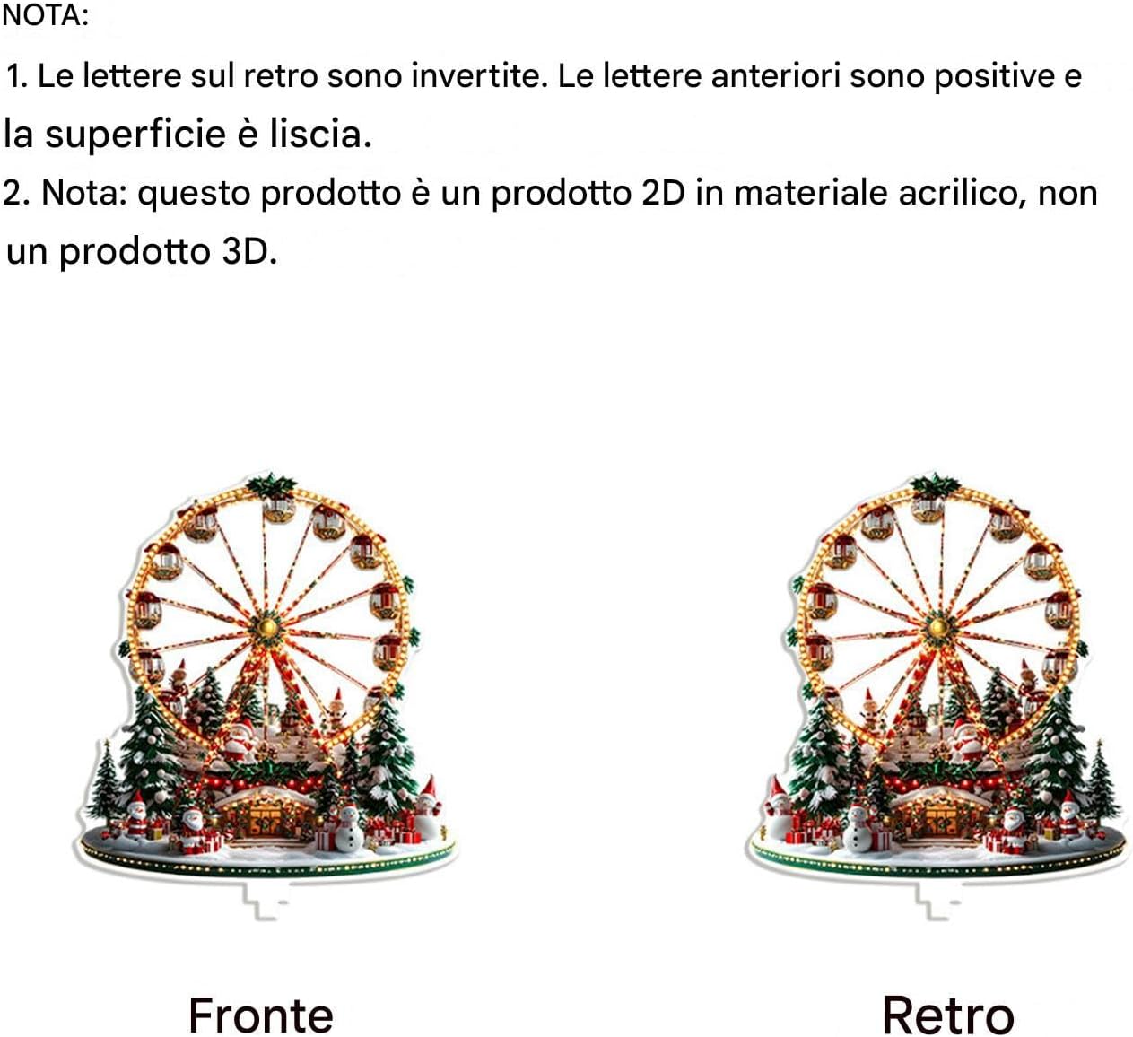 Aggiunta di Fascino Stagionale: Caratterizzata da una decorazione a ruota panoramica ispirata al Natale, questa decorazione esalta l'atmosfera delle feste senza sforzo, portando allegria e appeal visivo alla tua decorazione domestica durante le feste di Natale e le festività invernali. Questo addobbo natalizio unico arricchisce l'ambiente con dettagli festosi e si combina perfettamente con altri decorativi, creando un'atmosfera e invitante per ogni occasione speciale in c Uso Efficiente dello Spazio: Progettato per massimizzare l'efficienza, questo decor natalizio per tavolo combina un posizionamento versatile con benefici funzionali, elevando la decor per tavolo domestico. Si adatta a spazi più piccoli durante le vacanze o riunioni informali, ottimizzando l'ambiente e offrendo una soluzione pratica per abbellire la casa senza occupare area eccessiva. Materiale Trasparente Resistente: I centrotavola natalizi progettati con acrilico robusto e trasparenza uniscono charme e resilienza, perfetti per abbellire i tavoli in riunioni festive o eventi le impressioni sono essenziali, offrendo prestazioni affidabili e un design elegante per ogni celebrazione. Scelta Regalo : Le decorazioni per la tavola di Natale forniscono un'opzione di regalo festosa che completa le consuetudini tradizionali delle feste, creando un'atmosfera accogliente durante i banchetti cerimoniali e i pasti familiari mentre ispirano momenti condivisi di felicità e gratitudine throughout la stagione, ideale per vivere la magia natalizia. Base Rotante : Il centrotavola natalizio include una base rotante che garantisce una rotazione eccezionalmente e senza intoppi, creando un display dinamico e continuo per arricchire le decorazioni festive durante le riunioni e le celebrazioni delle vacanze. Questo movimento costante cattura l'attenzione degli ospiti e aggiunge un elemento di vivacità all'ambiente natalizio, migliorando l'atmosfera generale e rendendo ogni occasione speciale e memorabile per familiari e amici. La rot