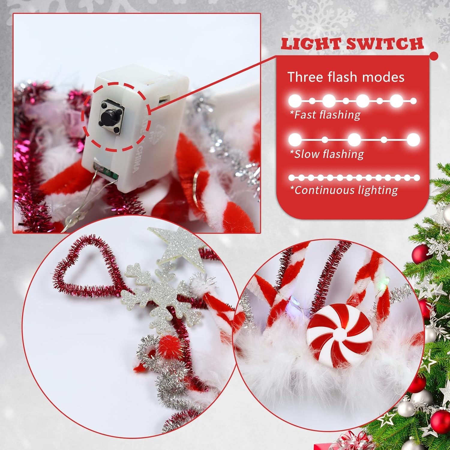 Fascia natalizia: le nostre fasce natalizie hanno un design straordinario. Le decorazioni con piume sono carine, attraenti e decorative. Perfetto per feste di Natale e feste (Alimentazione: batteria a bottone) Alta qualità: i nostri copricapi natalizi a LED sono realizzati con materiali di alta qualità, che li rendono robusti, durevoli, leggeri, morbidi e riutilizzabili. Gli accessori per capelli natalizi sono di dimensioni standard ed elastici, adatti a tutte le età. Design unico: la fascia è dotata di una bellissima piuma bianca unica e di un piccolo ornamento argentato e rosso. (Nota: la decorazione sull'archetto potrebbe spostarsi leggermente durante il trasporto e può essere riportata manualmente allo stato ideale). Regali ideali: bellissimi copricapi natalizi possono essere adatti alla tua famiglia o ai tuoi amici come regalo o ricompensa. Con un aspetto carino e raffinato, la tua famiglia e i tuoi amici si sentiranno felici di riceverli. Adatto a tutte le occasioni: bomboniere di Natale, feste di vacanza, feste di amici di famiglia, oggetti di scena per foto, compleanni, oggetti di scena di Natale, feste di Capodanno, feste in ufficio. Regalo di Natale per i tuoi amici e familiari.