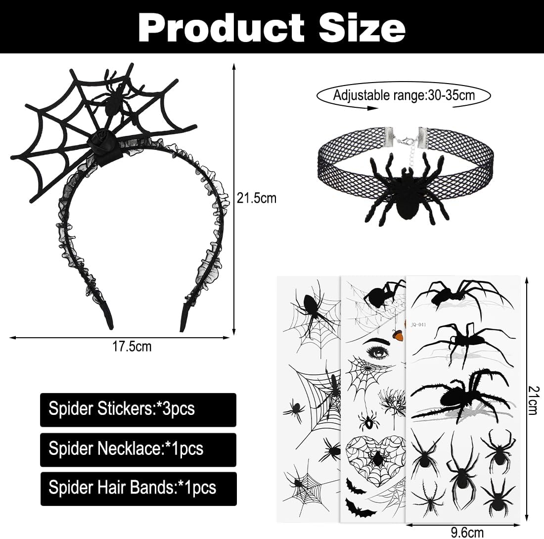 🎃【Set de serre-tête araignée d'Halloween】Livraison : 1* serre-tête toile d'araignée d'Halloween, 1* collier toile d'araignée d'Halloween, 4* tatouages araignée noirs temporaires. 🎃【Convient aux enfants et aux adultes】Le serre-tête a une taille unique, Convient aux adultes et aux enfants, facile à mettre et à enlever,ce serre-tête convient à toutes les occasions et à toutes les tenues. 🎃【Accrocheur de regard garanti】Notre serre-tête araignée d'Halloween et notre collier toile d'araignée avec des éléments adorables d'araignée d'Halloween, avec des dessins en dentelle, Transformez-vous en une adorable araignée avec ce serre-tête et donnez à votre look ce petit plus. 🎃【Polyvalent】Ces bijoux de tête d'Halloween tatouages d'Halloween sont parfaits pour toute partie du corps comme le visage, les bras, le cou, etc. L'ensemble de serre-tête araignée est l'accessoire parfait pour les costumes d'Halloween, les fêtes d'enfants et le carnaval. 🎃【A propos du service】Si vous avez des questions sur le produit avant ou après l'achat, n'hésitez pas à nous contacter. Nous vous répondrons aussi rapidement que possible dans les 24 heures.