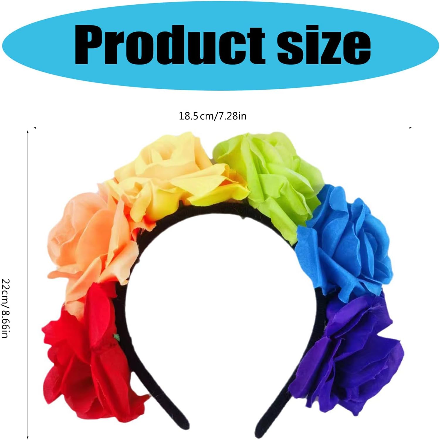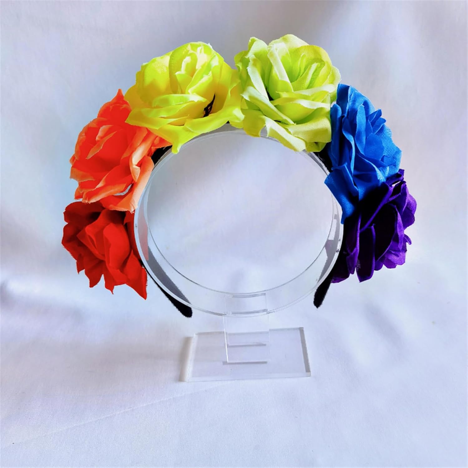 Cerchietto per capelli alla moda arcobaleno con rose, per Halloween, giochi di ruolo, balli, feste, spettacoli dal vivo, fascia arcobaleno per ragazze