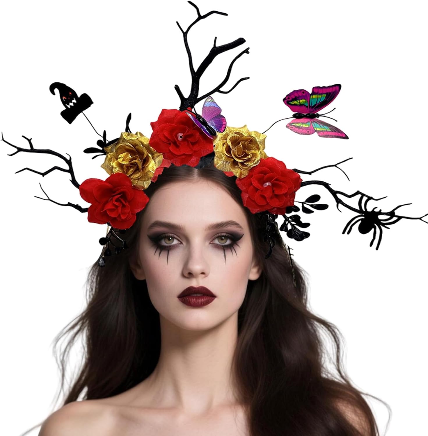 Cerchietto per capelli con corna di cervo e pipistrello, farfalla e ramo floreale nero, ornamento per capelli per feste in costume Caratteristiche: Migliora il tuo costume di Halloween con questa fascia a ramo punk scuro, accattivanti disegni di fiori simulati adatti per aggiungere un tocco misterioso a Halloween e feste a tema. Realizzato in resina e comodo da indossare, si abbina a qualsiasi acconciatura e outfit. Ideale per adulti che cercano moda distintiva, appassionati e chiunque partecipi a eventi a tema. Adatto per feste di Halloween, balli, riunioni a tema o qualsiasi occasione che richiede un accessorio per costume eccezionale. Con i suoi dettagli eleganti e la sua struttura pratica, questa fascia è un'aggiunta alla tua collezione di accessori di Halloween e attrezzatura per feste. Specifiche tecniche: Componente: e resina, fiore simulato Colore opzionale: come da immagine. Dimensioni: ca. come da immagine. 37 x 28 cm. Quantità: 1 pezzo. La confezione include: 1 fascia per capelli per Halloween. Nota: Si prega di considerare un margine di errore di 1-3 cm dovuto alla misurazione Si prega di assicurarsi che non sia un problema prima di effettuare l'ordine. A causa della differenza tra i diversi monitor, l'immagine potrebbe non riflettere il colore reale dell'articolo.