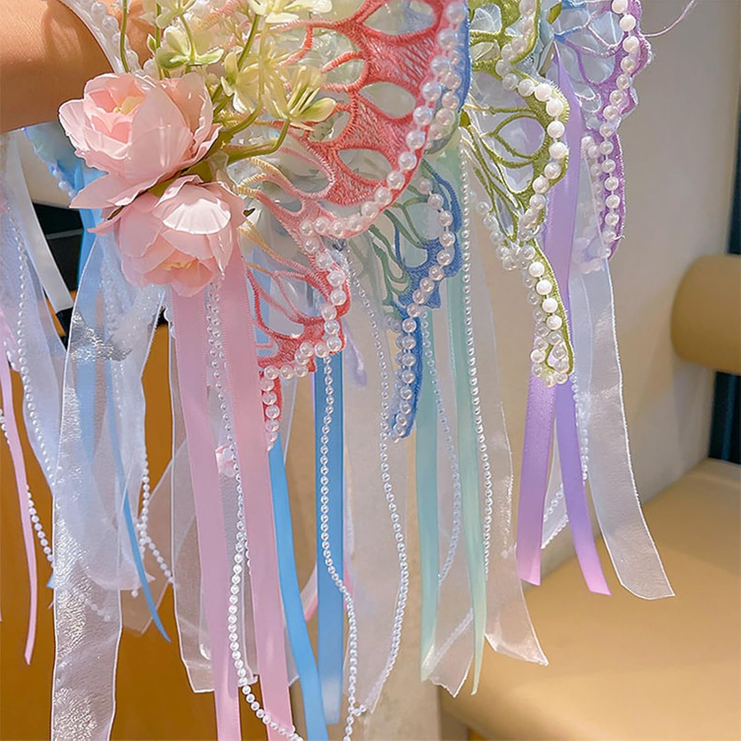 Facile da indossare, si fissa sui capelli e non si sente troppo stretto o troppo sciolto Delicata forma a farfalla, attira l'attenzione, incrostato di perle, nastro unico ti fa sembrare elegante e portare un aspetto delicato Fantastica te stessa, amica o la tua amante Decorato con perle scintillanti, fiori e farfalle, sarai una stella scintillante tra la folla e ti darà più ispirazione Adatto per varie occasioni, spettacoli, concorsi, balli, oggetti di scena fotografici e altri travestimenti all'aperto