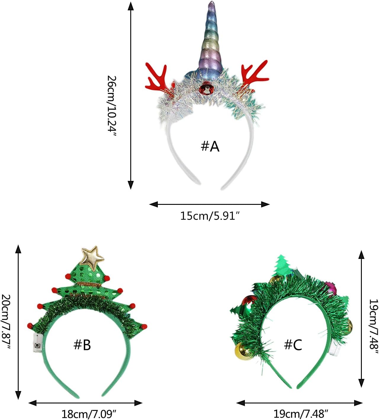 Cerchietto per capelli di Natale, per feste di Natale, cosplay, feste di Natale, feste di Capodanno, accessori per capelli per tutte le età Caratteristiche: Cerchietto natalizio: la fascia per capelli indossabile con albero di Natale, ideale per feste di Natale, feste cosplay, 3 opzionali per diverse esigenze, il cerchietto natalizio non si deforma facilmente e adatto per vestirti durante le feste cosplay di Natale e ti consente di goderti la celebrazione con il tuo Design unico: il cerchietto per capelli di diverse dimensioni e da trasportare con luce lampeggiante, facile da abbinare ad altri oggetti di scena, ti rende popolare in varie feste, decora e vestirti per feste cosplay, diventa un punto culminante per le feste Accessori per capelli Blingbling: il copricapo si combina con fascia per capelli e accessori scintillanti, luminosi ed eleganti per vestirsi e capelli, squisitedesign e amichevole per la pelle della testa e facile da indossare, elastico e adatto a diverse dimensioni per la circonferenza della testa. Tessuto in poliestere qualificato, resistente all'usura con buone prestazioni e migliora l'usura. Costume per bambini e adulti: la fascia per capelli natalizia adatta per bambini o adulti come regalo di compleanno, costume cosplay per feste di Natale, ottimo set di bomboniere per bambini e adulti. Specifiche tecniche: Dimensioni del prodotto: circa A- 26 x 18 cm, B 20 x 18 cm, C 19 x 19 cm. Opzione: A-(Corno)/B (albero)/C (palline) La confezione include: 1 cerchietto natalizio luminoso. Nota: Considerare un margine di errore di 1-2 cm dovuto alla misurazione manuale. A causa della differenza tra i diversi monitor, l'immagine potrebbe non riflettere esattamente il colore dell'articolo.