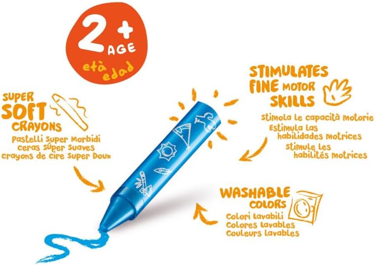 Prodotto: Scatola di pastelli con corpo extralarge che facilita l’impugnatura, 8 pastelli per una scrittura super morbida Pastelli: Morbidissimi pastelli dai colori brillanti, acquarellabili se mescolati con acqua e pennello Lavabili: Inchiostro lavabile Utilizzo: Ideali per realizzare disegni e sfogare la tua creatività. Regalo perfetto per adulti e bambini a partire da 2 anni