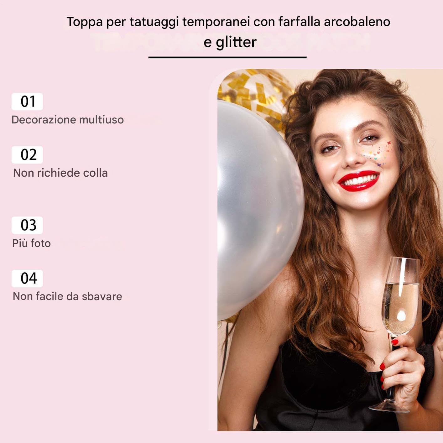 Applicazione Facile: Formula in pasta per cerotti trucco che semplifica l'uso senza necessità di colla, processo intuitivo che fa risparmiare e fatica preziosi Impiego multiuso: Che sia un festival musicale, una sfilata, una celebrazione o una festa a tema, questi adesivi decorativi offrono una soluzione multiuso per esprimere individualità ad ogni evento sociale Tocco Makeup Ricercato: Ottieni risultati accattivanti con cerotti che aumentano il fascino e semplificano l'applicazione del trucco a strati, perfetti per ritocchi o feste last minute Tenuta Anti-Sudore: Tecnologia fissante unica blocca lo sbiadimento e protegge dalla penetrazione di sudore/pioggia. La texture sfumata mantiene colore intenso e risultati perfetti tutto il giorno in ogni condizione climatica Sicurezza Garantita: Progettati per pelli sensibili con strato adesivo ipoallergenico, offrono comfort leggero e tocco delicato eliminando completamente rischi di irritazioni