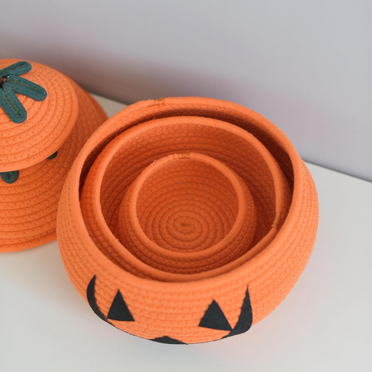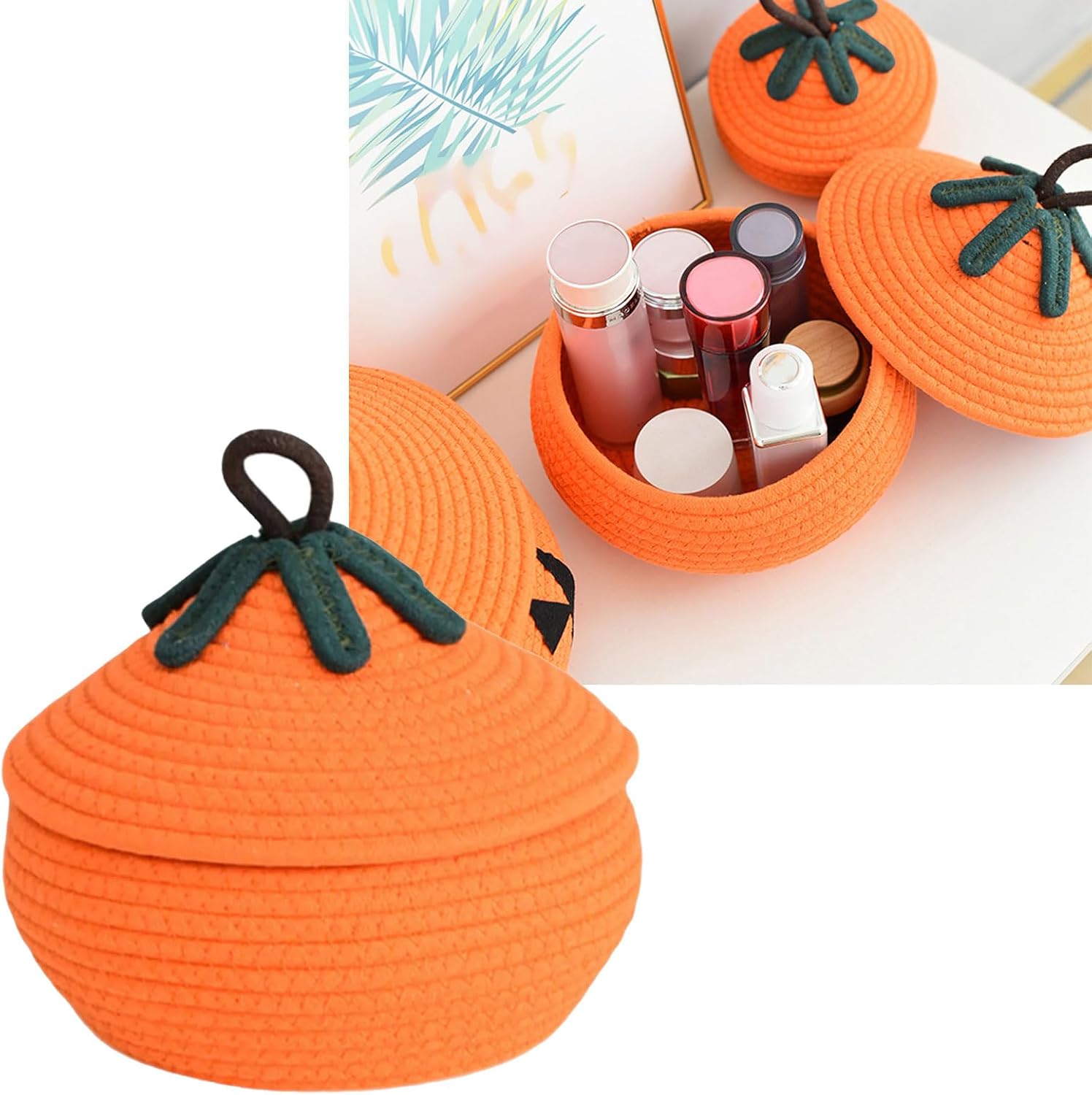 Visualizzalo su console d'ingresso come centrotavola stagionale, usalo nei vivai per la gestione dei giocattoli o riutilizzalo come scatola regalo durante le feste di Halloween e le riunioni autunnali Cesto portaoggetti a forma di zucca festivo con coperchio, perfetto per la decorazione di Halloween, questo cesto in corda di cotone combina un design stravagante con pratico contenitore per organizzare giocattoli, bigiotteria e oggetti essenziali stagionali Ideale per famiglie amanti delle vacanze, organizzatori domestici e appassionati di artigianato che cercano una decorazione funzionale che sia passata senza soluzione di continuità da inquietanti display stagionali a soluzione di archiviazione tutto l'anno Realizzato con corde di cotone intrecciate, la sua trama ruvida aggiunge fascino rustico mentre il coperchio protegge il contenuto dalla polvere in spazi abitativi o camere da letto Questo versatile cestino portaoggetti funge anche da accento decorativo in stile fattoria, mescolando l'estetica naturale con la funzionalità per le famiglie dando priorità agli accessori per la casa sostenibili