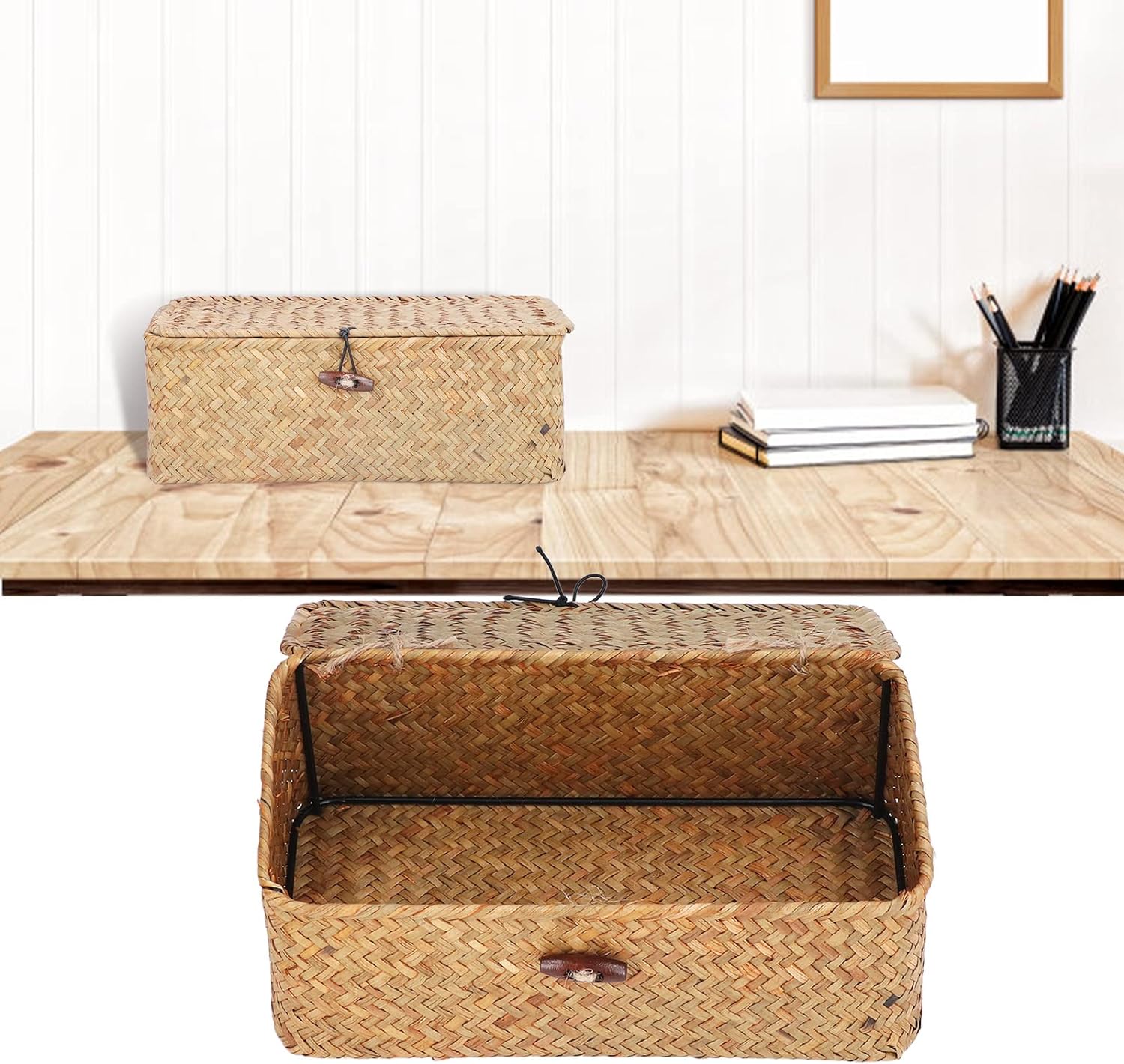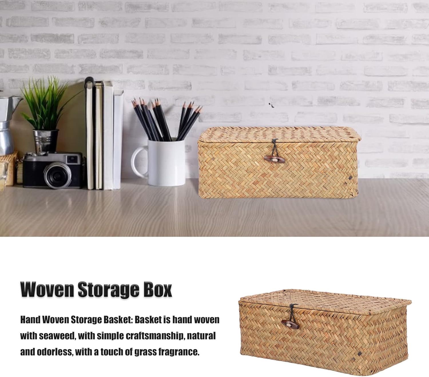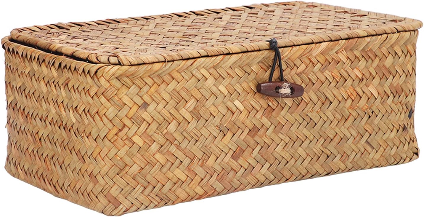 [CRAFTSMANSHIP TONTO A MANO] Questo cesto di stoccaggio e di fanerogame marine è meticolosamente tessuto a mano con alghe di alta qualità garantendo durata e un fascino rustico. L'artigianato semplice ma elegante offre un design e e inodore con una sottile fragranza di rinfrescante che migliora qualsiasi spazio. per coloro che apprezzano soluzioni eco-friendly e artigianali per l'organizzazione domestica. [MATERIALE MORBIDO E SICURO] Progettato con il tuo comfort in mente, il morbido materiale a trama marina garantisce un tocco delicato che protegge le mani da irritazioni o lesioni. La tecnica di tessitura squisita non solo fornisce una struttura robusta, ma garantisce anche una lunga durata che lo rende una scelta affidabile per l'uso quotidiano in varie impostazioni. [Dustproof e Piet Proof Design] con una fibbia e una chiusura a banda elastica Questo cestino di stoccaggio con coperchio impedisce efficacemente l'accumulo di polvere e mantiene al sicuro le tue cose da curiosi animali domestici. Il design premuroso garantisce che i tuoi piccoli articoli come accessori per gioielli o articoli da toeletta rimangono puliti e organizzati in ogni momento. [SPAZIOSO E VERSATILE] Con la sua grande capacità questo cestino rettangolare di fanerogame è ideale per conservare una varietà di piccoli oggetti tra cui accessori per capelli collane bracciali anelli orecchini e lenti a . Il suo design versatile lo rende adatto per l'uso come organizzatore desktop nel soggiorno o nella camera da letto del bagno della cucina dell'ufficio. [Multipurpo e salvamento dello spazio] Questo cestino di stoccaggio è progettato per adattarsi perfettamente a qualsiasi stanza senza occupare spazio eccessivo. Sia che tu debba organizzare le forniture per uffici essenziali per il bagno o gli accessori per la camera da letto, questo cesto elegante e funzionale si fonde senza sforzo con il tuo arredamento mantenendo i tuoi oggetti ordinatamente organizzati e facilmente accessibili.