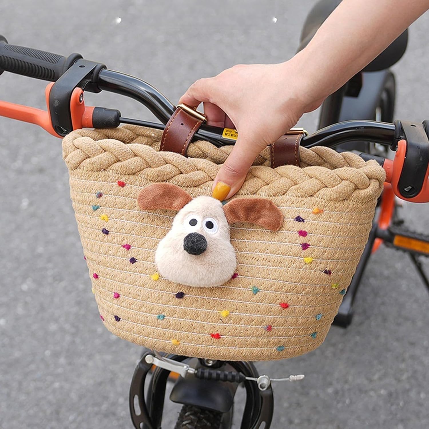 Cestino per bicicletta semplice per bambini, leggero, per manubrio anteriore, per gite in famiglia, corda di cotone