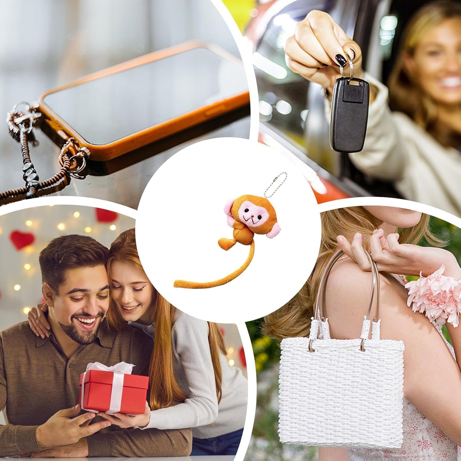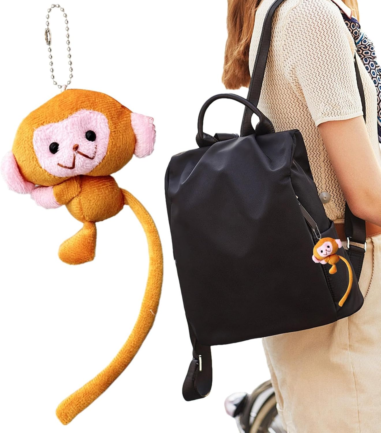 Design intrigante: con grandi occhi rotondi e angoli della bocca leggermente rovesciati, questo lussuoso portachiavi di scimmia si diletta con il suo adorabile design; Una coda lunga garantisce movimenti dinamici e vividi Accessori di moda: migliora il tuo stile senza sforzo con la deliziosa peluche per il portachiavi di scimmia, aggiungendo un tocco di fascino al tuo ensemble per gli studenti e lavoratori di tutte le età Plush morbido: realizzato in peluche ecologico, garantendo un tocco morbido, inodore e sicuro per la pelle sensibile. Senti la differenza con ogni carezza. Ottimo per studenti, lavoratori e appassionati di moda Uso ampio: sospendilo sullo zaino e aggiungi un tocco di divertimento alla tua routine quotidiana. Adatta per illuminare la giornata ovunque tu vada. Immagine di scimmia carina adatta a tutte le età e stili Scortecamente scolpita: un'aggiunta giocosa alla tua collezione di accessori, il peluche per il portachiavi di scimmia presenta una coda divertente e piegabile, offerta in una vasta gamma di colori vibranti e stili speciali per adattarsi ai singoli gusti