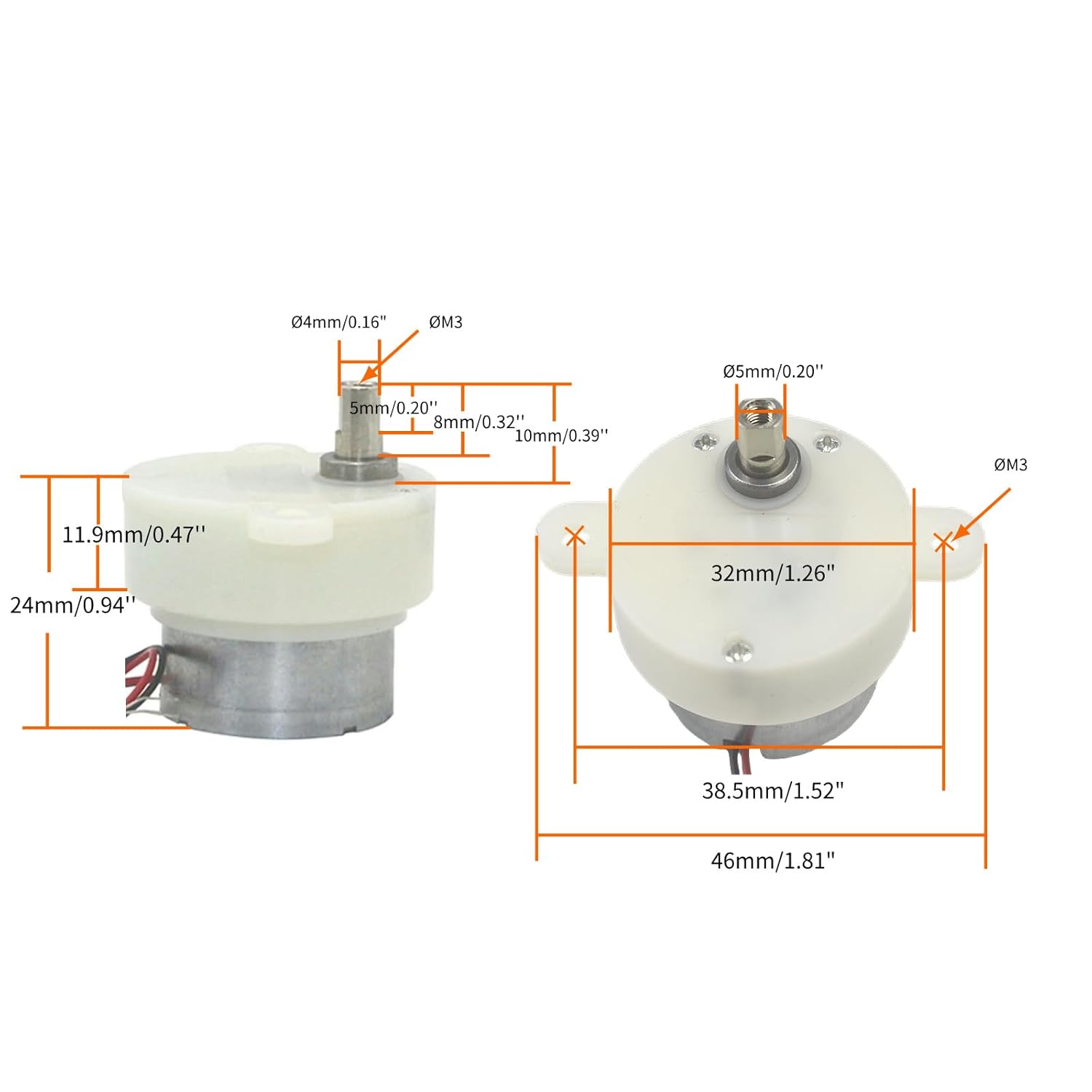 Il motoriduttore CC in plastica JS-30 adotta materiale di ingranaggio in plastica, micro motore, basso rumore di lavoro, piccolo volume e con produzione di filo di rame, durevole per l'uso. Specifica: Marca: CHANCS; Modello: JS-30 motore DC; Tipo albero: doppio albero piatto; Spessore albero: 4mm (0.16"); Lunghezza albero: 8mm (0.31"); Diametro albero: 5mm (0.20"); Tensione di funzionamento: DC 6V; Velocità: 100RPM; Rotazione: CW / CCW; Applicazione: Il motoriduttore JS-30DC è adatto a tutti i tipi di espositori, artigianato, apparecchi di illuminazione rotanti, giocattoli elettrici, meccanismi rotanti, ecc., con una vasta gamma di applicazioni. Contenuto della confezione: 1 motore Attenzione: 1. Maggiore è la velocità, maggiore è il rumore relativo, questo motore può cambiare l'alimentazione CC positiva e negativa per cambiare la direzione di rotazione del motore, il mercato è ampiamente utilizzato doppio albero maschiatura piatto, albero speciale può essere personalizzato. 2. Vi è una leggera differenza nelle misure, si prega di verificare prima di ordinare. !