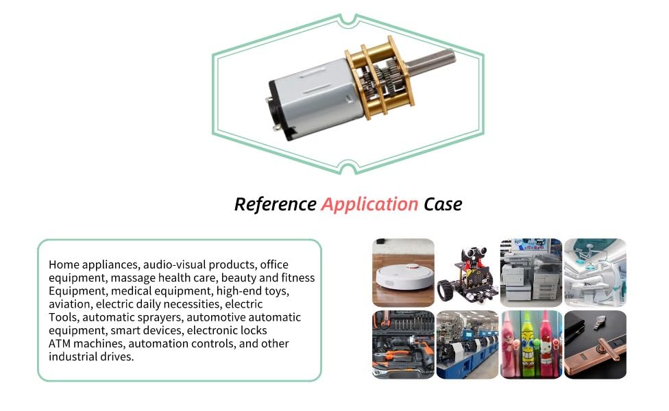 Il piccolo motoriduttore DC N20 funziona con DC 6V, volume ridotto, basso rumore, lunga durata, marcia alta, lavoro eccellente, motore in rame puro, ingranaggio in metallo, basso consumo energetico, durevole e resistente. Specifica: Tipo di modello: Motore N2O; Materiale: metallo; Voltaggio: CC 6 V; Velocità: 300 giri/min; Lunghezza dell'albero: 10 mm (0,39"); Diametro albero: 3 mm (0,117"); Tipo albero: Albero D; Applicazione: Utilizzato principalmente in auto RC, giocattoli fai da te, strumentazione, automazione d'ufficio, elettrodomestici. Come serrature elettroniche, videocamere, fotocamere, proiettori, monitor, robotica, distributori automatici, macchine da gioco, registratori di cassa, massaggi ecc. Contenuto della confezione: 2×Garanzia motore: Contattaci se hai problemi con il prodotto. Forniamo suggerimenti o anche servizi di rimborso per prodotti con problemi di qualità. Benvenuto in "Contatta il venditore". Inviaci un'e-mail e lo personalizzeremo per te.