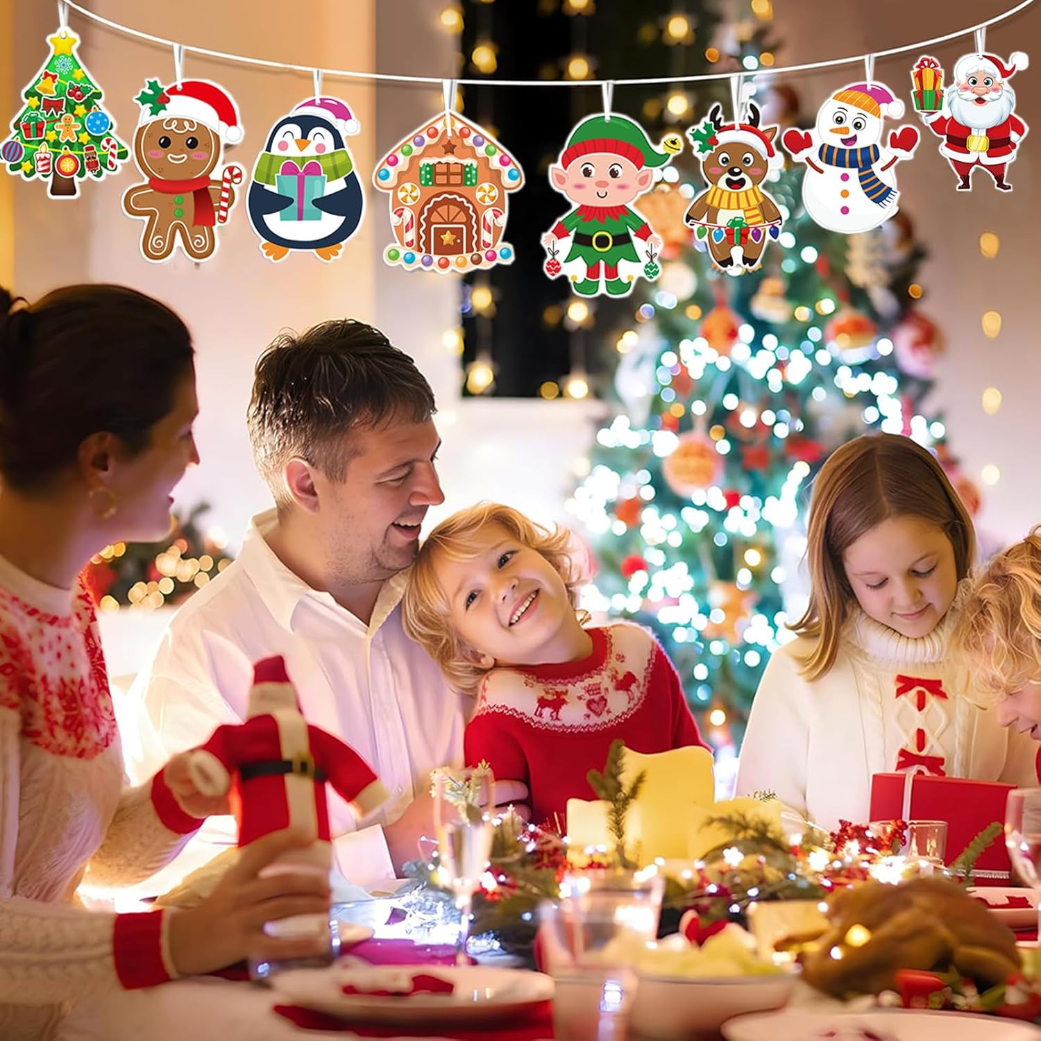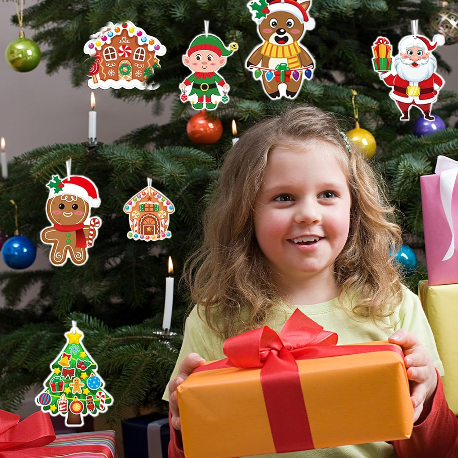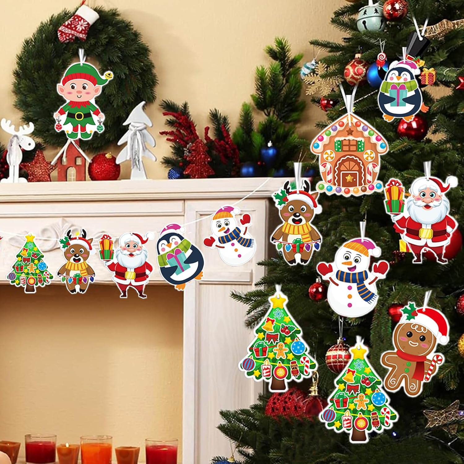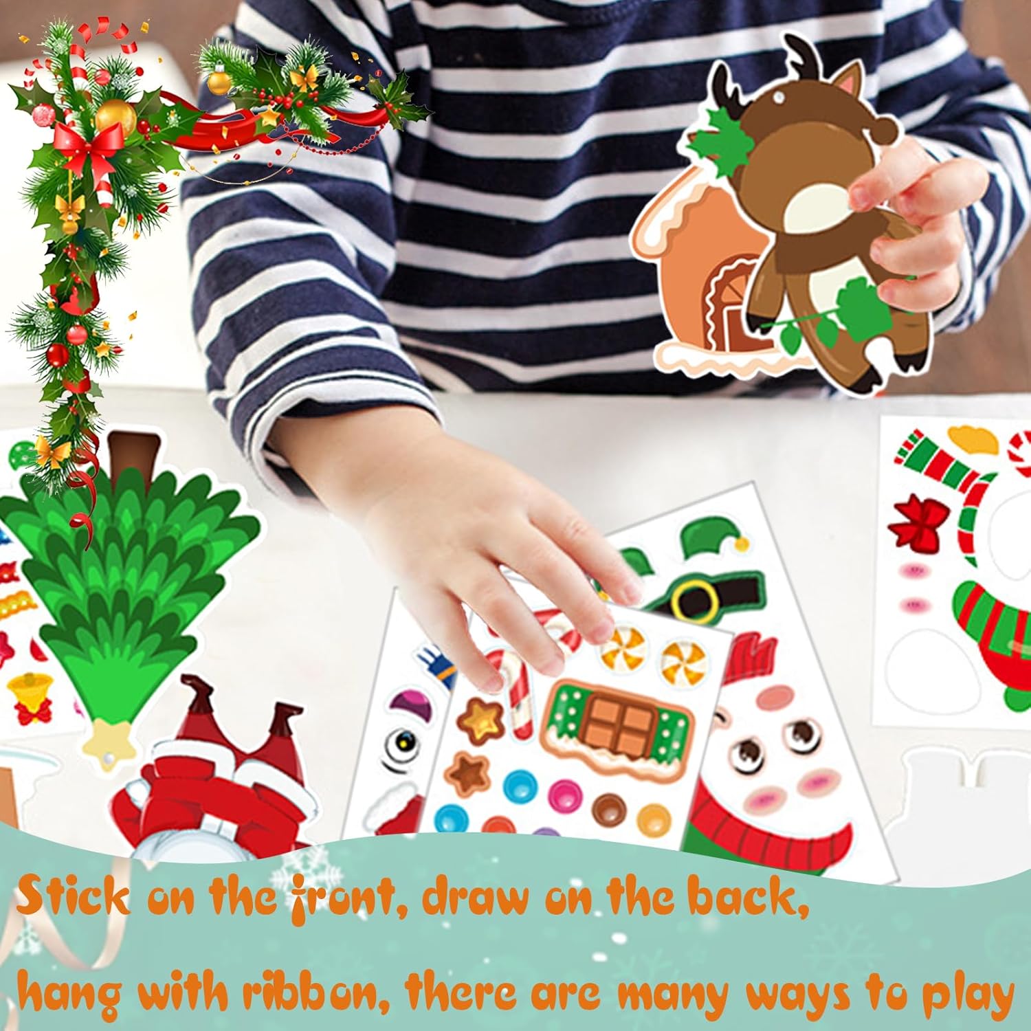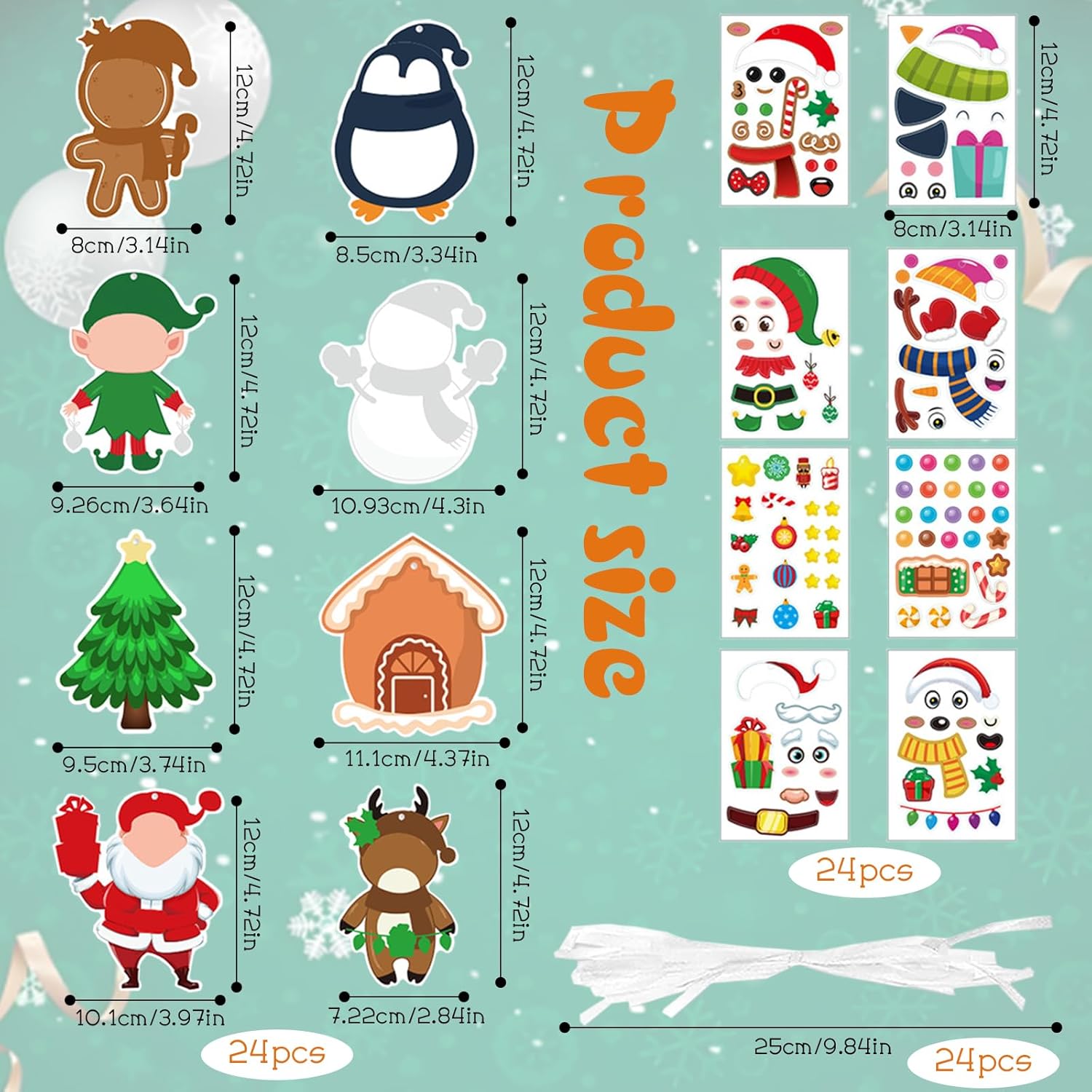 Tema Distintivo: Il design del motivo di lavoretti creativi per bambini segue da vicino il tema natalizio, con forme vivaci e carine, dettagli infantili e abbinamenti di colori vivaci e pieni. kit lavoretti è ricco di atmosfera festosa, aiutando i bambini a comprendere meglio le connotazioni culturali alla base della festa e a migliorare l'esperienza immersiva e la risonanza emotiva dell'atmosfera festiva Contenuto Della Confezione: Lavoretti natale kit fai da te bambini contiene 24 carte + 24 adesivi + 24 nastri bianchi, inclusi 8 stili classici a tema natalizio come pupazzo di neve, Babbo Natale, pinguino, omino di pan di zenzero, elfo e renna, con un ricco contenuto e una configurazione completa Pratico da Appendere: Lavoretti creativi per bambini natale adotta un design da appendere e piccoli fori sono riservati sulla parte superiore del biglietto per facilitare l'inserimento del nastro. Addobbi natalizi è realizzato in carta da pacchi e può essere appeso all'albero di Natale, al bordo della finestra, sopra lo stipite della porta, ecc., creando rapidamente un'atmosfera festosa Utilizzo Semplice: Gli adesivi decorazioni natalizie sono progettati con un supporto adesivo, che può essere facilmente incollato e assemblato senza l'utilizzo di strumenti complessi. lavoretti creativi per bambini natale è intuitivo e semplice da usare, e anche i bambini più piccoli possono completarne la produzione, stimolando efficacemente l'interesse e l'iniziativa dei bambini e permettendo loro di sperimentare il divertimento della creazione Ampia Applicazione: Kit lavoretti di natale per bambini ha una vasta gamma di utilizzi ed è molto adatto a diverse occasioni, come feste di compleanno per bambini, feste a tema natalizio, attività scolastiche, corsi di artigianato e interazioni familiari genitore-figlio, rendendo ogni angolo pieno di gioia e calore