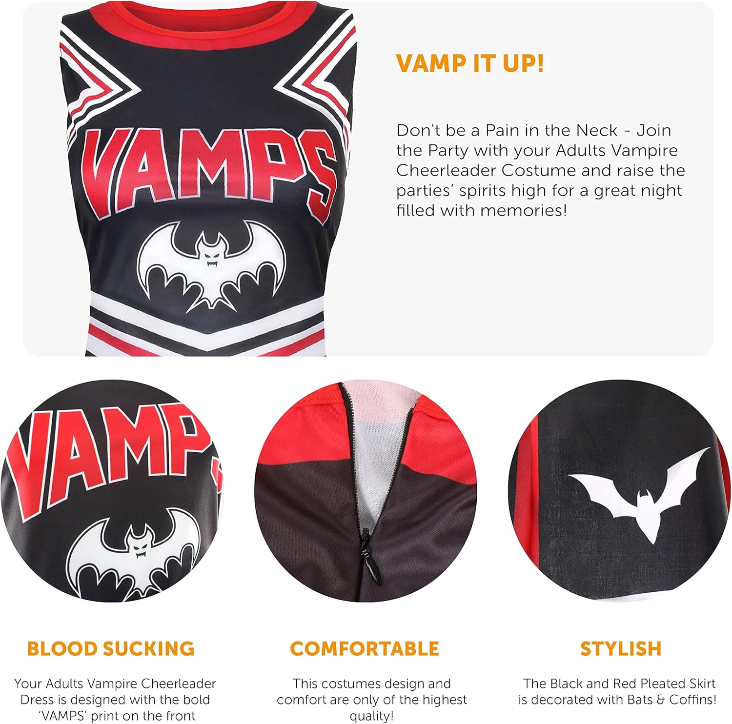 Cheerleader da donna di Halloween Vampire – Small – Abito da cheerleader nero e rosso, pompon neri e calzini sportivi in bianco e nero – Costume da trucco o scherzo per adulti