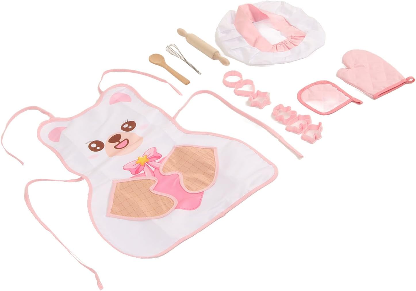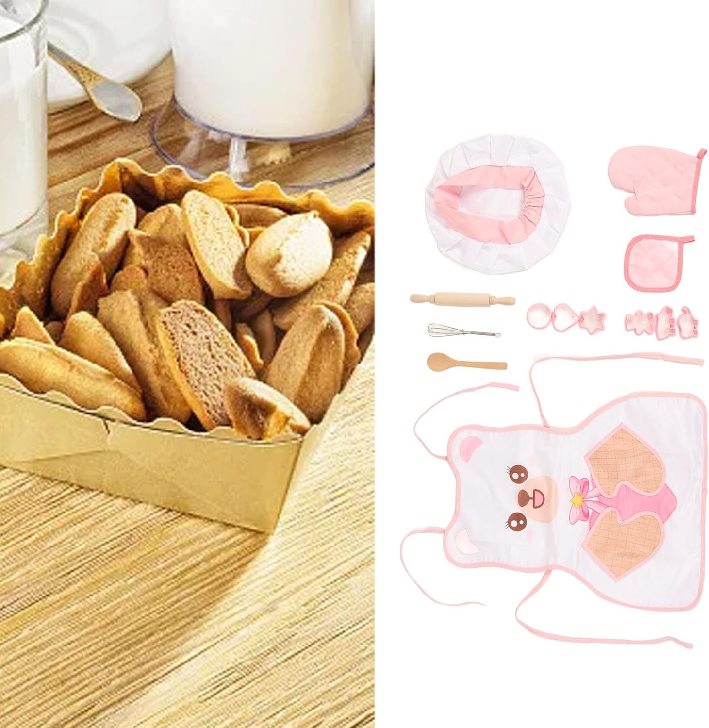 [Educational]: Ispira l'interesse dei bambini a cucinare e insegnare loro le capacità di cibo e cucina, promuovendo una parte importante dello sviluppo infantile. [Gruppo di cotone]: include un grembiule di cotone confortevole e adatto alla pelle, che soddisfa gli standard di certificazione della sicurezza dei bambini per la tranquillità. [Cappello da Chef]: il cappello da Chef leggero ed elegante offre un'esperienza divertente e nuova per i bambini a sentirsi come un vero chef. [Pensino e cucchiaio in legno]: realizzati in legno, questi strumenti durevoli sono sicuri e puliti, incoraggiando l'apprendimento pratico e la creatività. [Guanti per la sicurezza]: include guanti per prevenire le ustioni durante il tempo di gioco, garantendo un'esperienza di cottura e divertente per i bambini.
