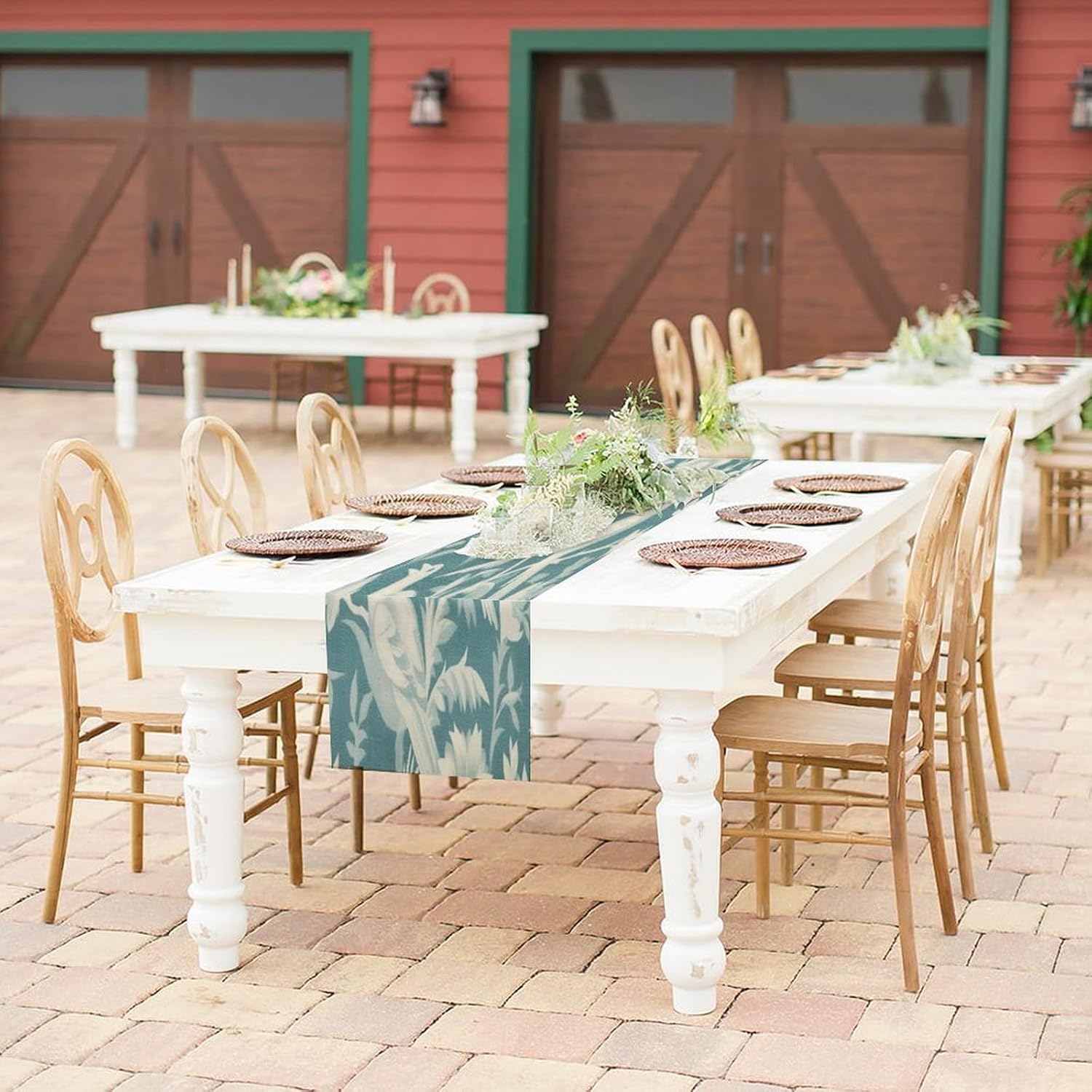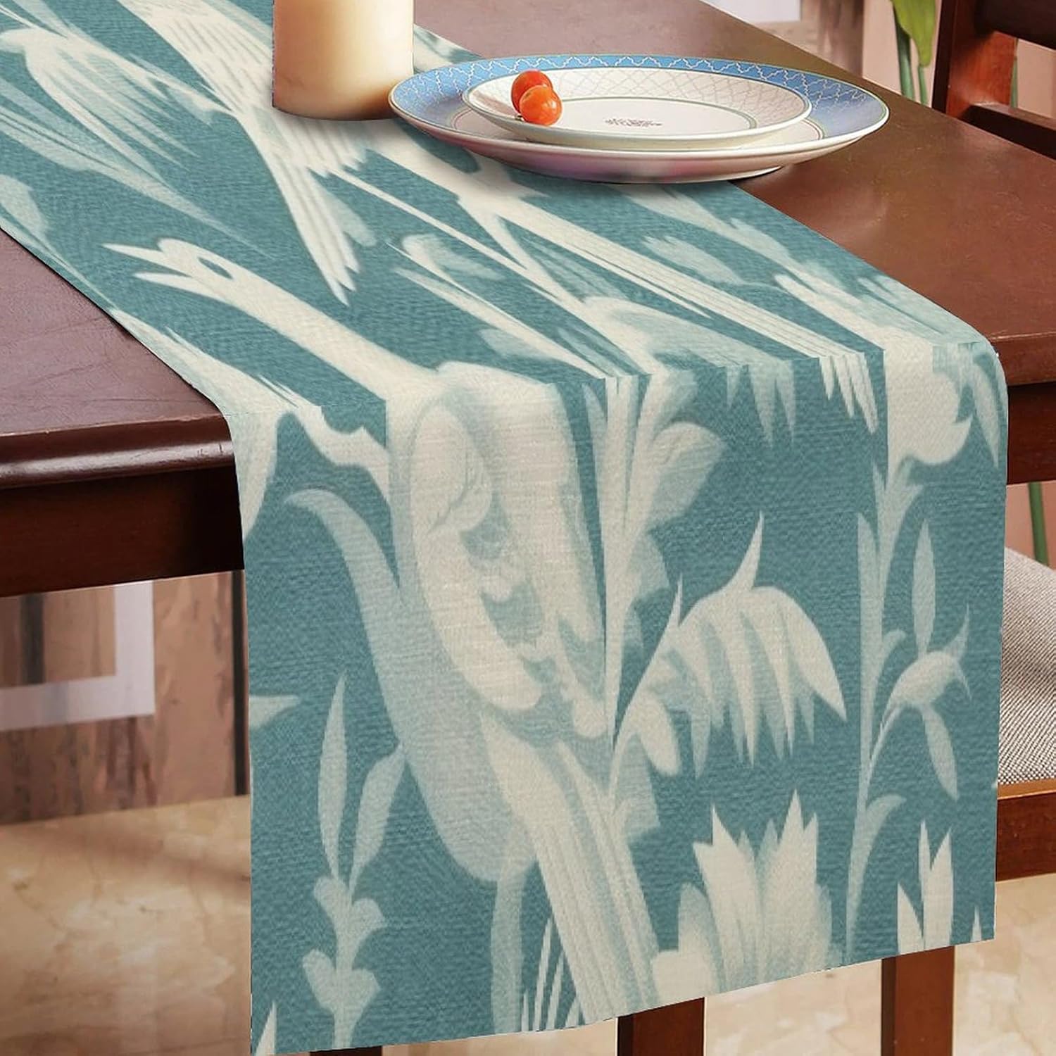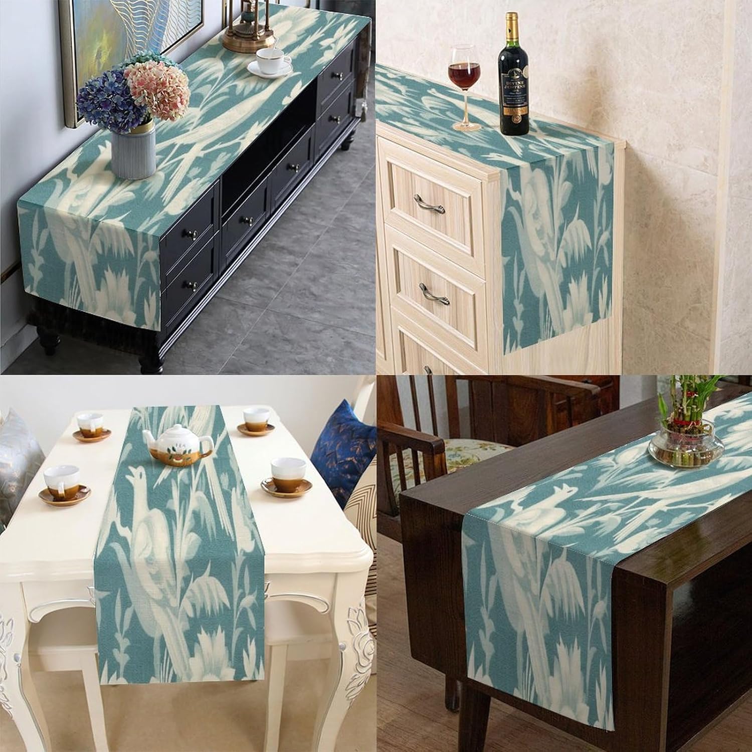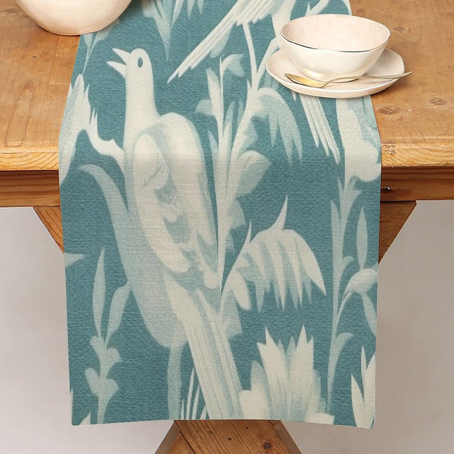 Chenonceau - Runner da tavola in iuta con uccelli e botanici, color acquamarina, blu e avorio, 40,6 x 182,9 cm, rustico, facile da pulire, per soggiorno, cena, decorazione per la casa, regalo per la
