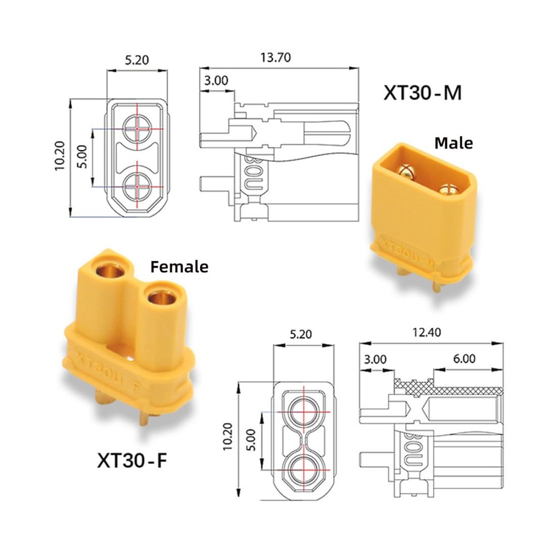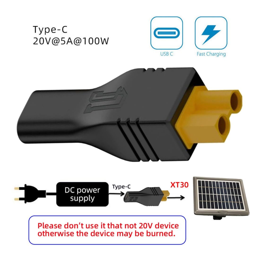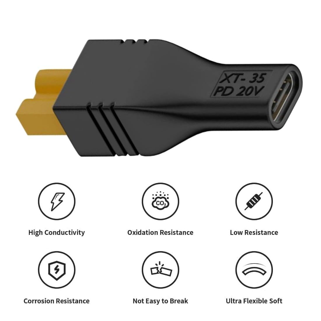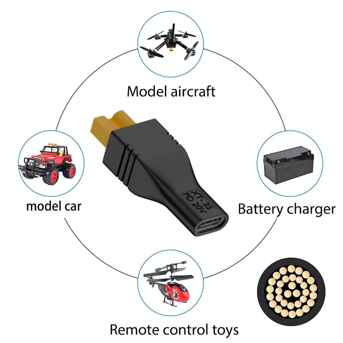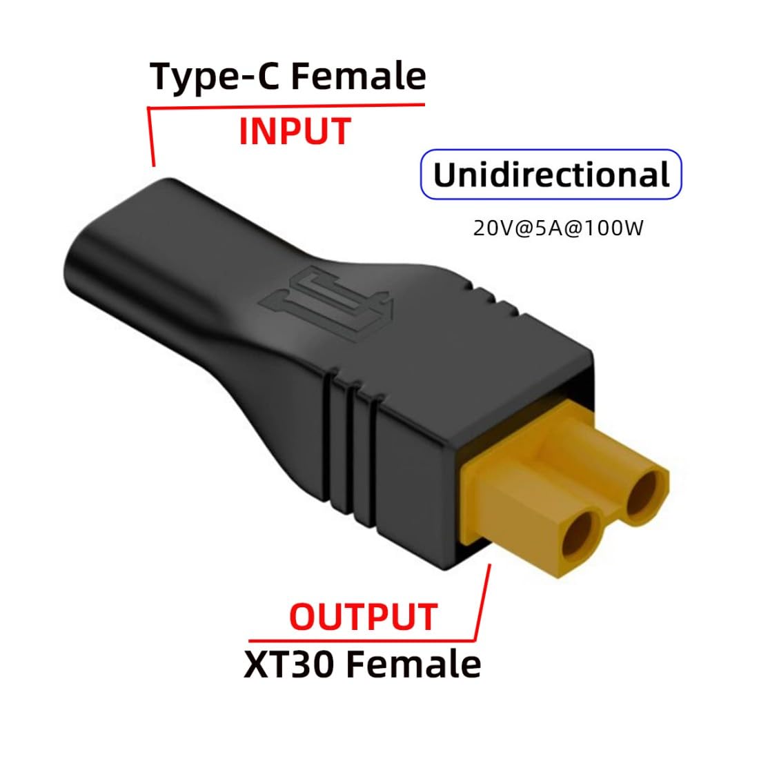 1) Supporta solo la trasmissione monouso, adatto per quadricotteri LiPo 100 W RCA. 2) Ingresso USB-C: 100 W, 20 V @ PD2.0, PD3.0, QC2.0, max. 5A 3) Uscita XT30: 5,0-20,0 V, max. 5,0 A. 4) Adatto per quadricotteri LiPo da 100 W. Si prega di verificare la tensione nominale e l'amperaggio del dispositivo, altrimenti potrebbe danneggiarsi. 5) Compatibile con connettore XT30 per batterie, veicoli, giocattoli telecomandati, quadricotteri, multicopter e volo modello.