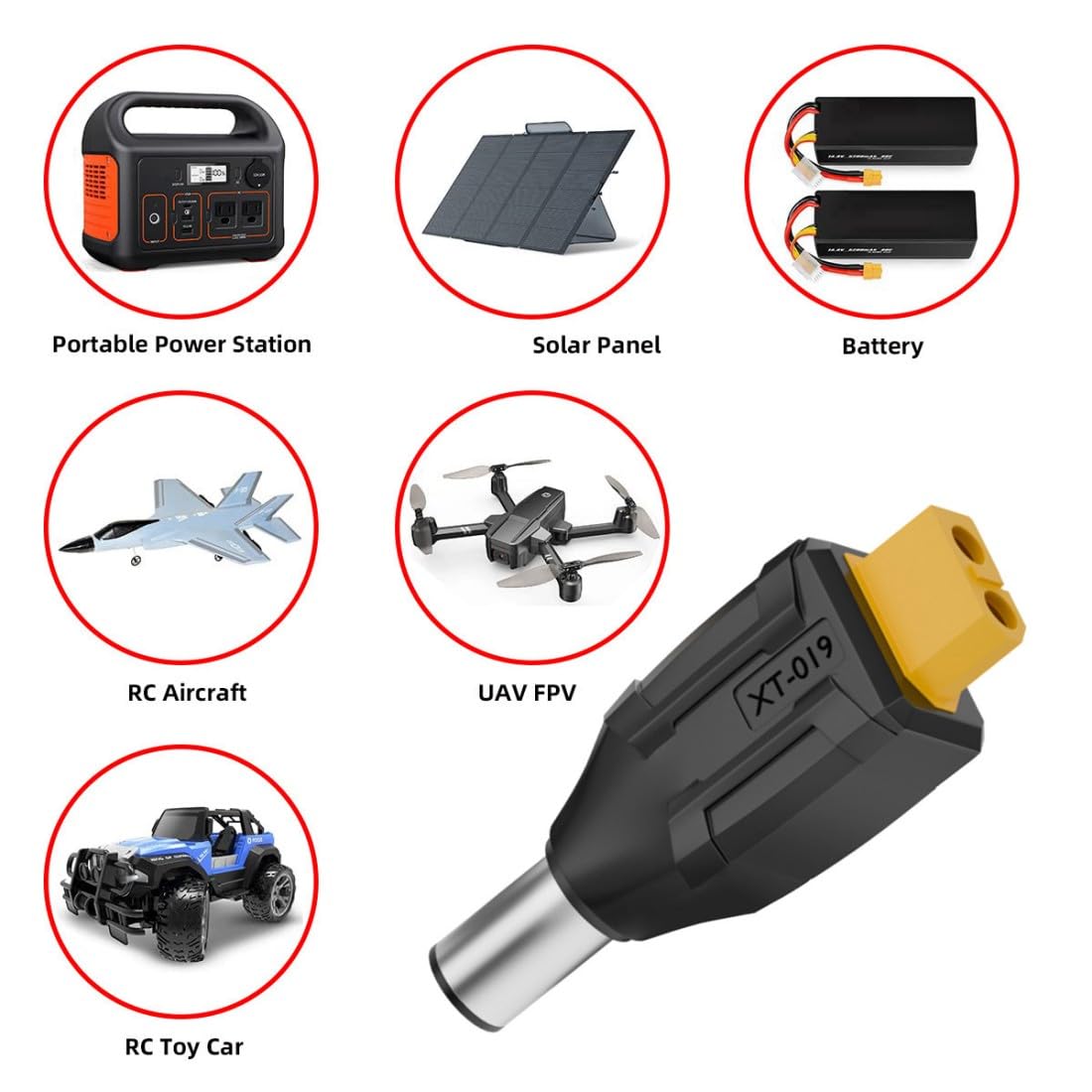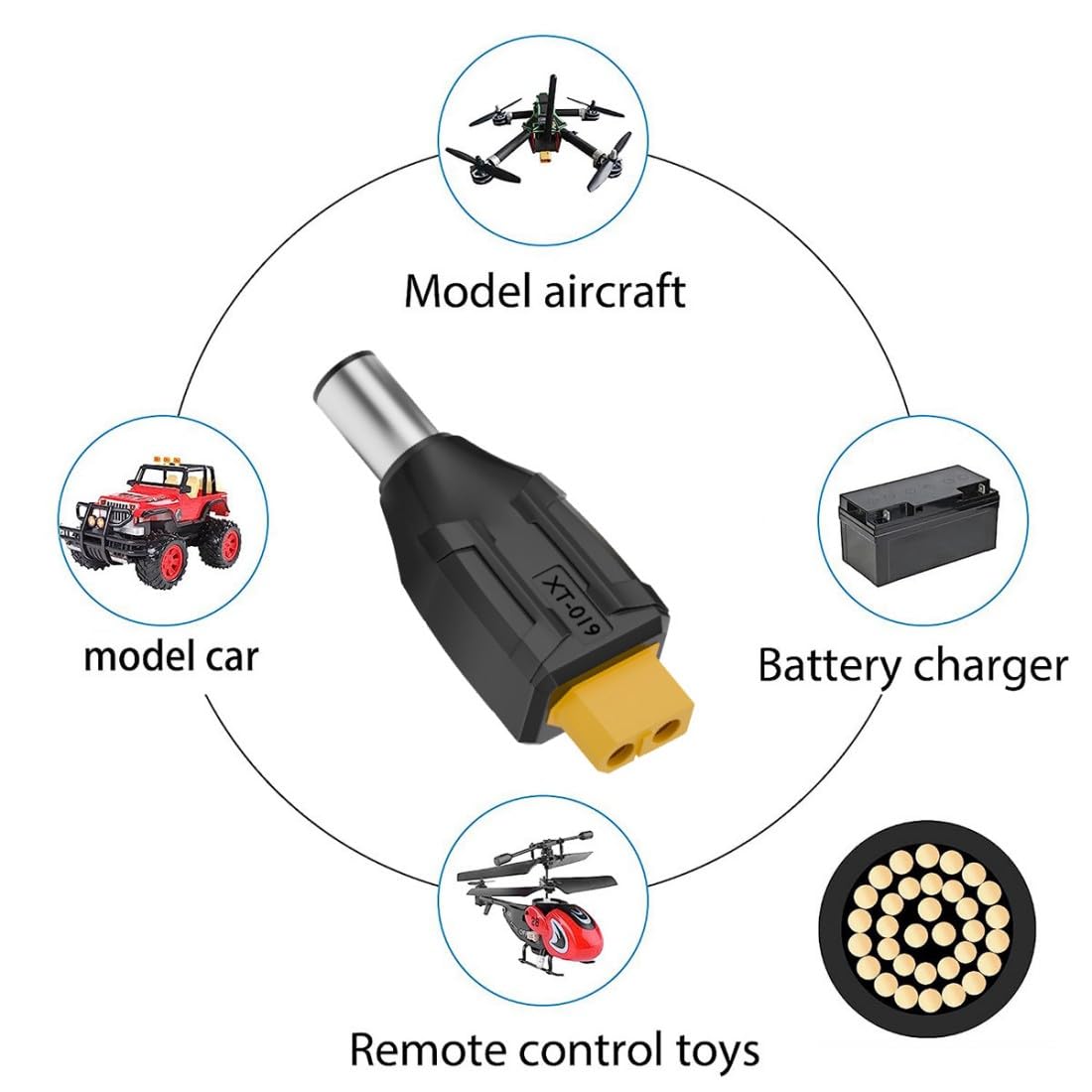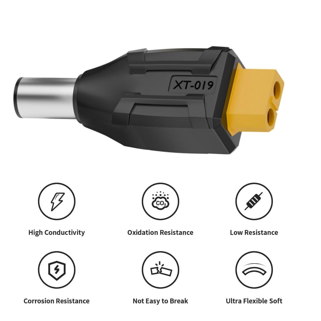 1) Connettore 1: Connettore XT60; Connettore 2: Jack DC-ingresso. 2) Adattatore di alimentazione da XT60 a DC, progettato per collegare un saldatore TS100 a una porta di uscita XT60 per accendere la batteria. 3) Adattatore XT60 adatto per video FPV, droni, pannelli solari, veicoli e giocattoli telecomandati, ecc. 4) È molto conveniente per coloro che volano multirotori FPV e un must per le riparazioni in loco. 5) Materiale di alta qualità, resistenza alle alte temperature e buon isolamento, plug and play, facile da usare.