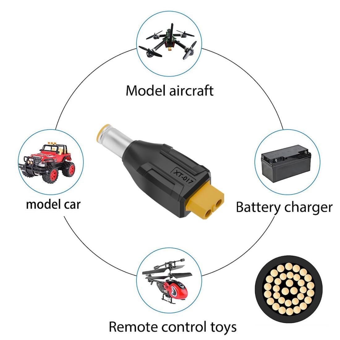 1) NOTA: nella confezione è incluso un solo adattatore. 2) Adattatore di alimentazione da XT60 a DC, progettato per collegare un saldatore TS100 a una porta di uscita XT60 per accendere la batteria. 3) Adattatore XT60 adatto per video FPV, droni, pannelli solari, veicoli e giocattoli telecomandati, ecc. 4) È molto conveniente per coloro che volano multirotori FPV e un must per le riparazioni in loco. 5) Materiale di alta qualità, resistenza alle alte temperature e buon isolamento, plug and play, facile da usare.