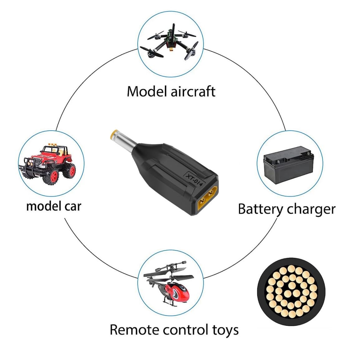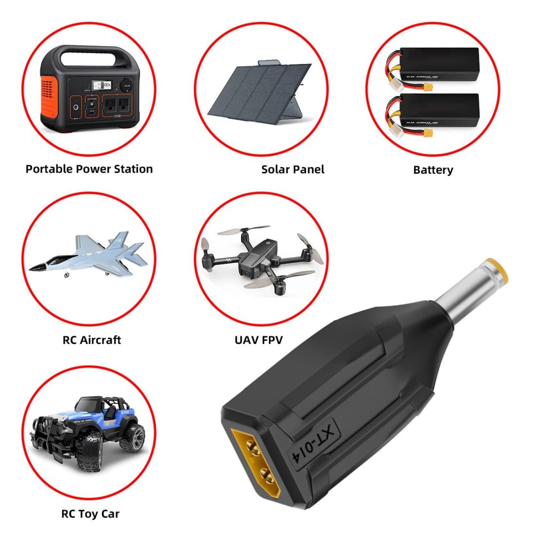 1) NOTA: nella confezione è incluso un solo adattatore. 2) Adattatore di alimentazione da XT60 a DC, progettato per collegare un saldatore TS100 a una porta di uscita XT60 per accendere la batteria. 3) Adattatore XT60 adatto per video FPV, droni, pannelli solari, veicoli e giocattoli telecomandati, ecc. 4) È molto conveniente per coloro che volano multirotori FPV e un must per le riparazioni in loco. 5) Materiale di alta qualità, resistenza alle alte temperature e buon isolamento, plug and play, facile da usare.